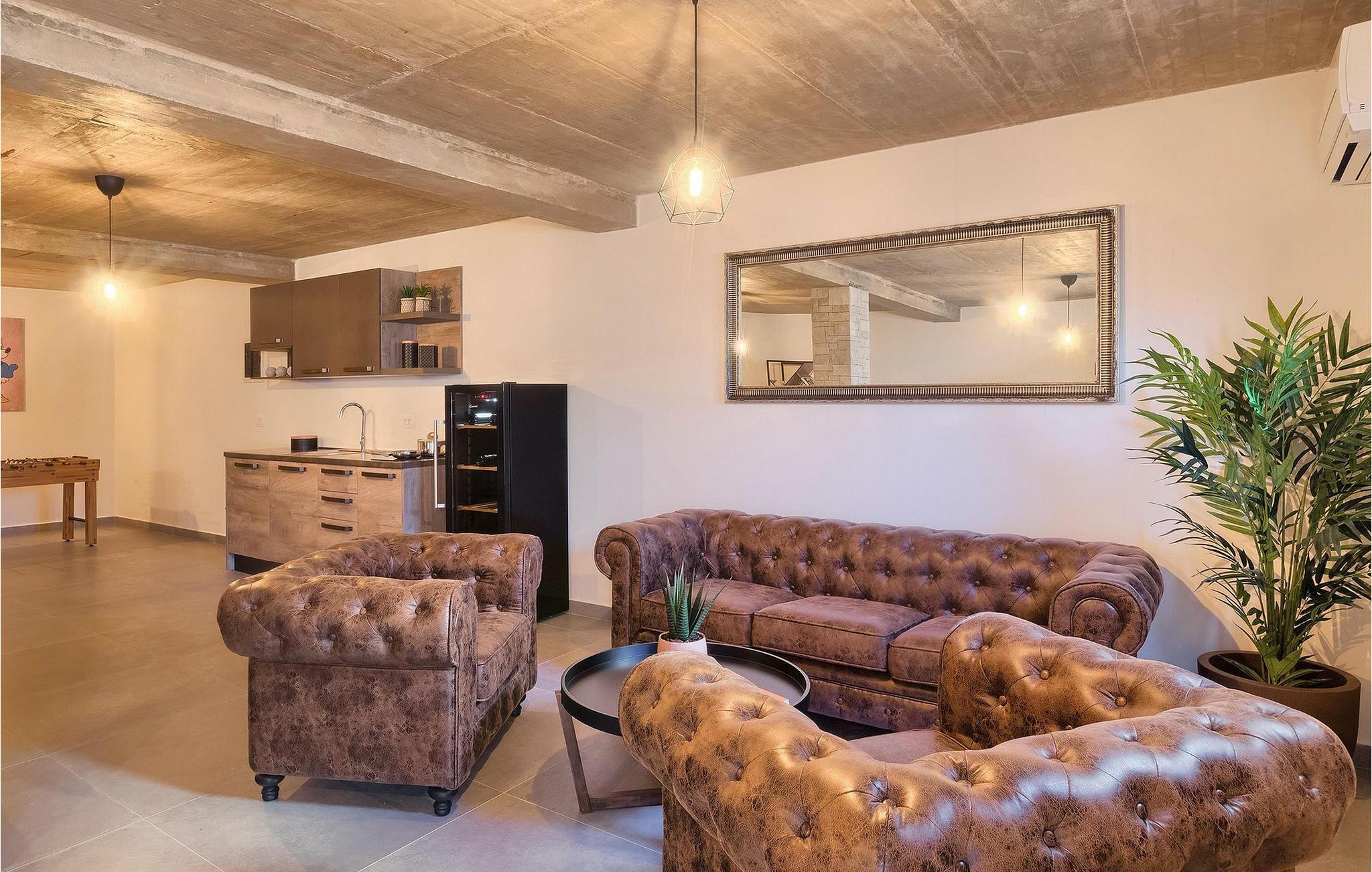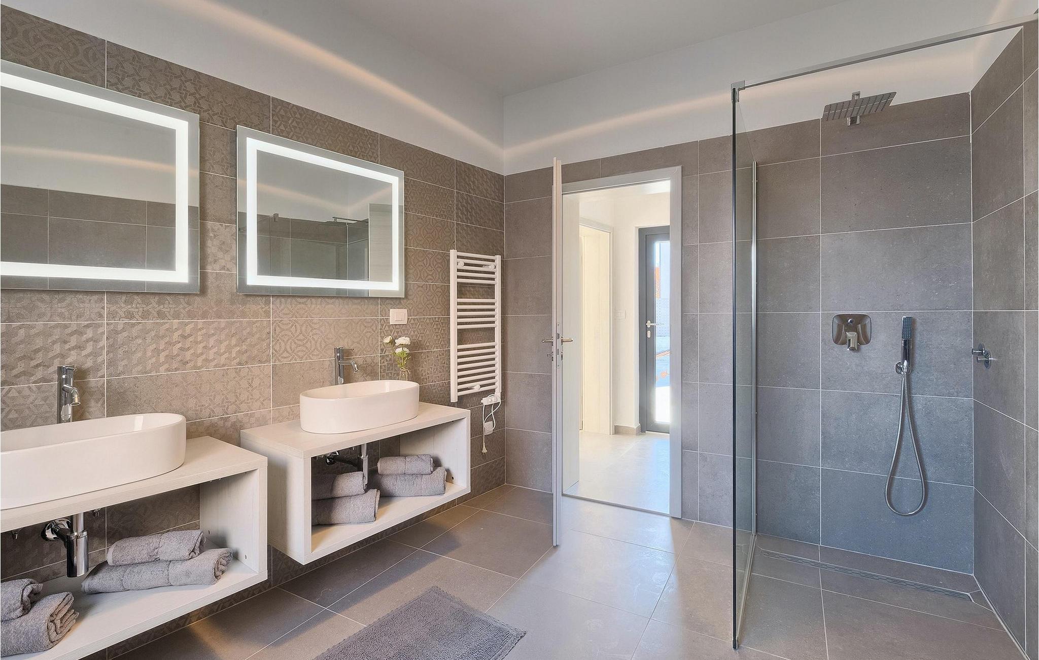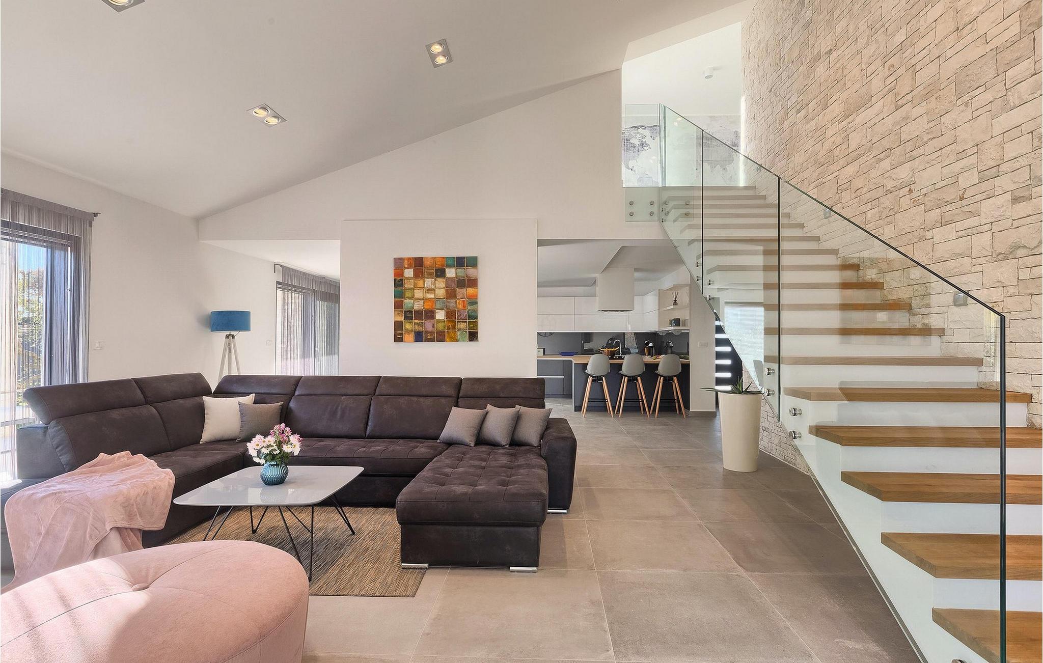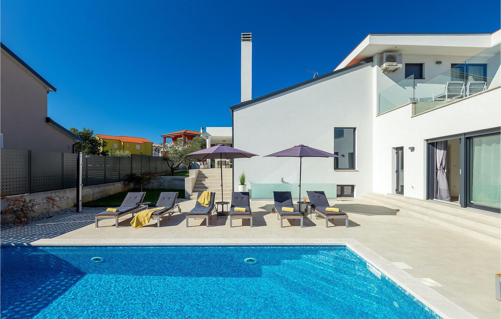 Den stilfulde villa Dolcea er en fire-værelses villa beliggende i den charmerende landsby Kastel cirka 8 km fra havet. Villaen er perfekt for alle, der ønsker at nyde en fredelig atmosfære og idyllisk natur. Kan du bare forestille dig at slappe af på de komfortable liggestole ved den private pool? Stueetagen består af en moderne indrettet stue, to hyggelige dobbeltværelser og et fuldt udstyret, rummeligt køkken og spisestue, begge fuld af lys. På første sal finder du de to andre soveværelser. Bortset fra ved poolen kan du nyde den istriske sol på den dejlige terrasse på første sal. Et ekstra køkken, hvor du kan tilberede lækre måltider til din familie og venner, er placeret under stueetagen, samt et underholdningsrum. De konkurrencedygtige, der ikke ønsker at slappe af ved poolen hele dagen, kan nyde at spille dart, pool på det professionelle billardbord eller bordfodbold. Villaen har aircondition, der er tv i hvert værelse, og hvert soveværelse har eget badeværelse. Som hendes navn siger, vil du tilbringe den sødeste ferie i Villa Dolcea. Vila Dolcea ligger i Kastel, en istrisk landsby tæt på kystbyen Umag. Umag tilbyder et stort udvalg af fritidsaktiviteter, turistfaciliteter samt en lille havn. Fremragende restauranter, barer og caféer kan findes i dens brostensbelagte gader. Gå ikke glip af din chance og prøv nogle trøfler, istrisk prosciutto, fisk og skaldyrsspecialiteter og lokal ost. I dag er Umag især kendt for sport: hver juli finder Croatia Open (en del af ATP World Tour 250-serien) sted der, med mange store navne fra mændenes tennisverden. Ikke langt væk fra Umag ligger også det prisvindende vandland Istralandia, ideelt til en sjov dag for hele familien. Kanegra-stranden, som er tættest på vilaen, er en lang stenstrand og en af de mest attraktive i Istrien.