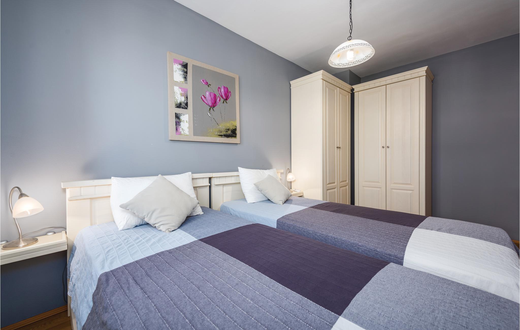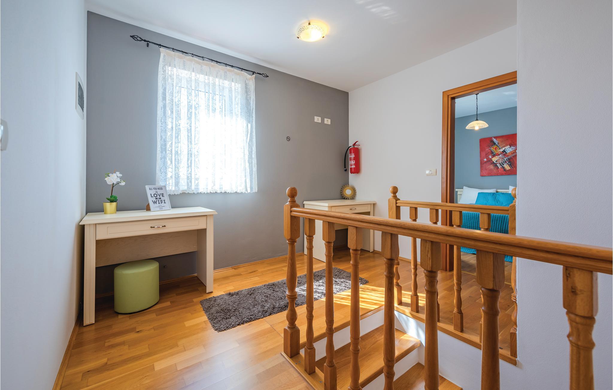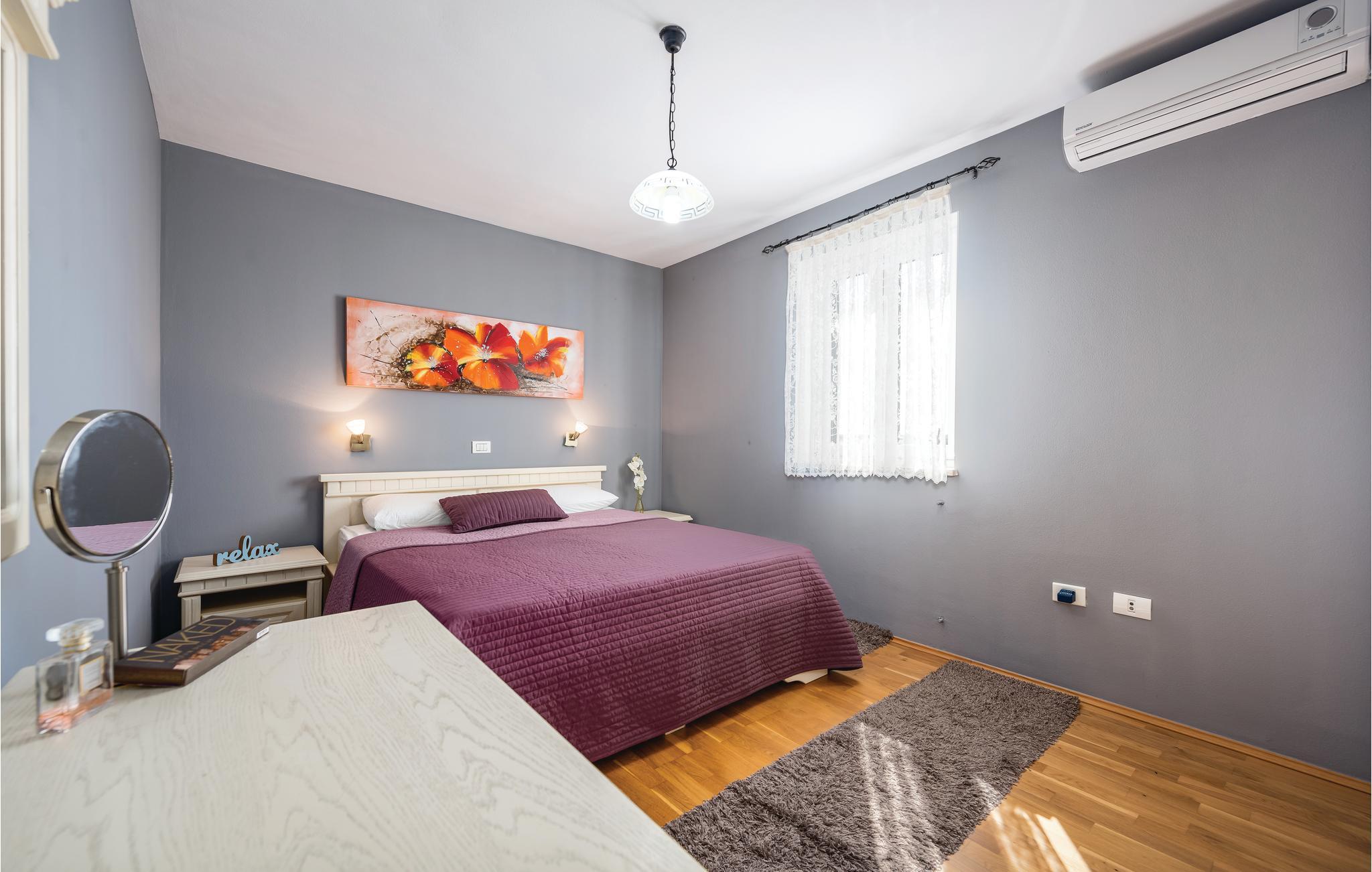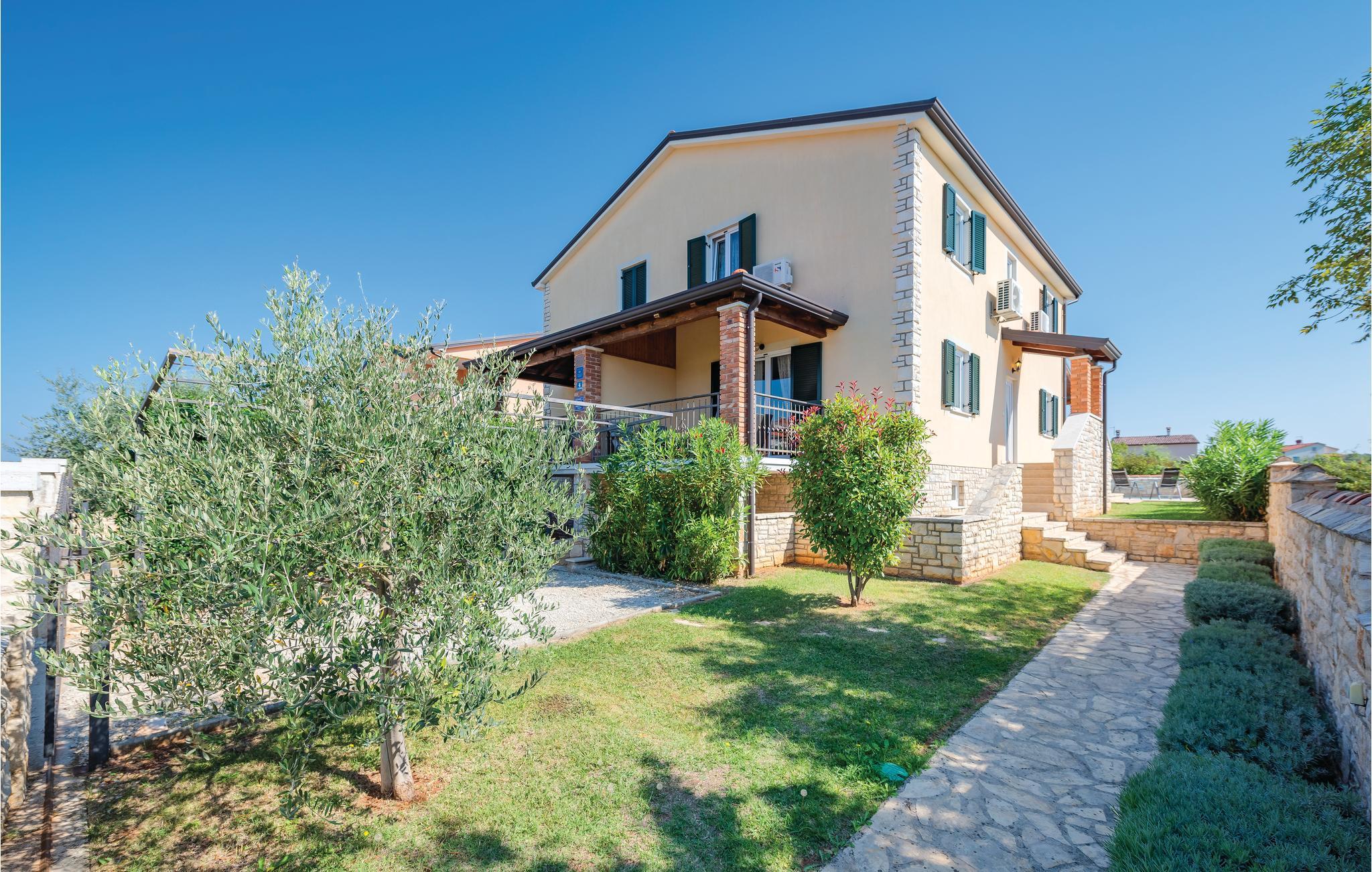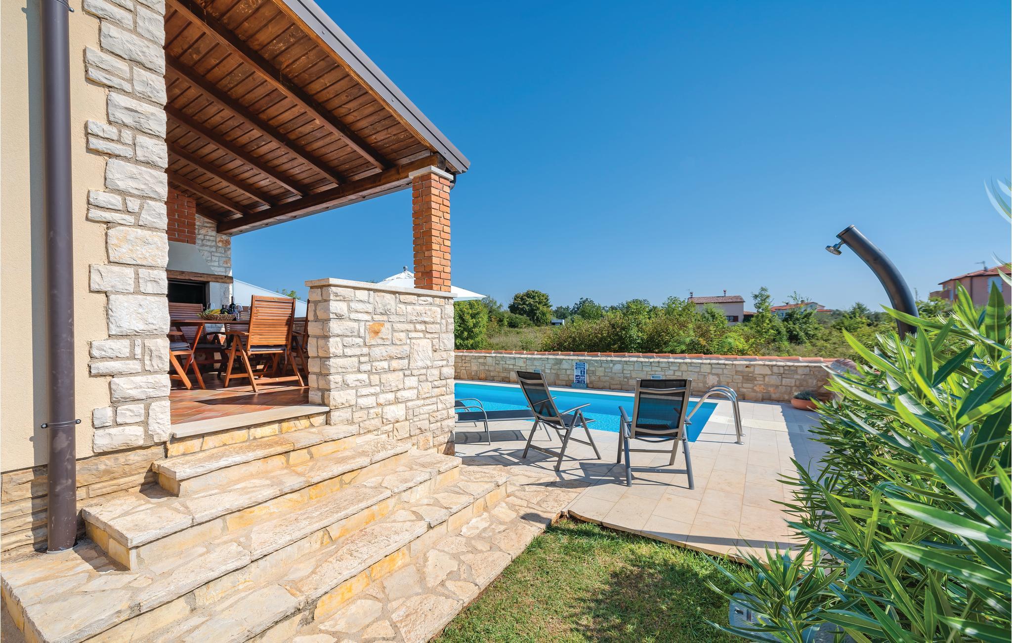 I den lille ferieby, kun nogle minutters gang fra stranden, ligger dette dobbelthus. Rummene er komfortabelt indrettede. I byen er der nogle restauranter og et indkøbsmarked. Foran huset er poolen, hvor I kan køle jer af i sommerens hede, og yderligere forfriskning giver huset i de klimatiserede rum. Kør til byen Umag med forskellige sommerarrangementer, den er også kendt for et interessant natteliv. Eller kør til den romantiske gamle bydel i Novigrad, også der venter der jer en rig historisk arv.