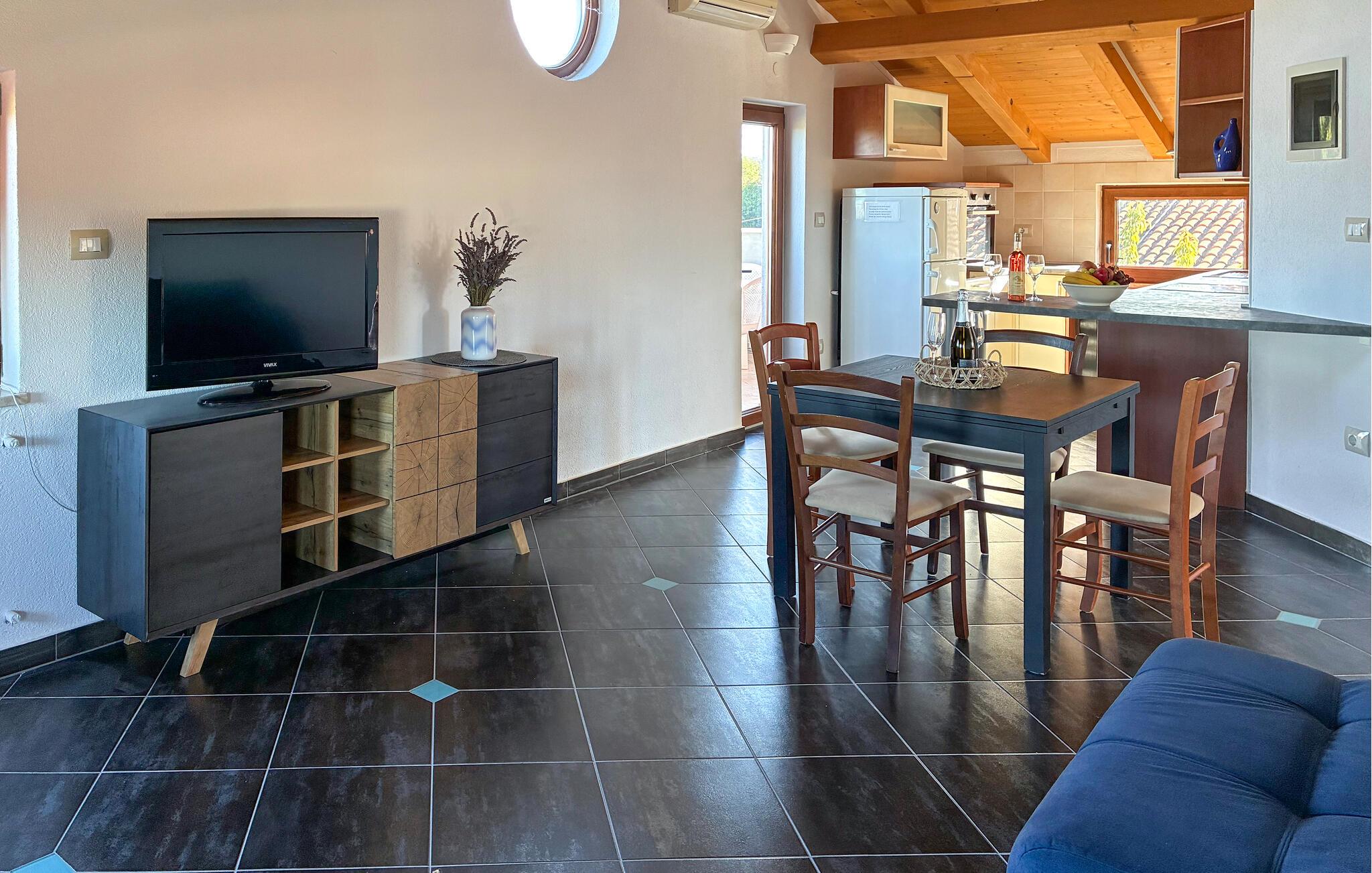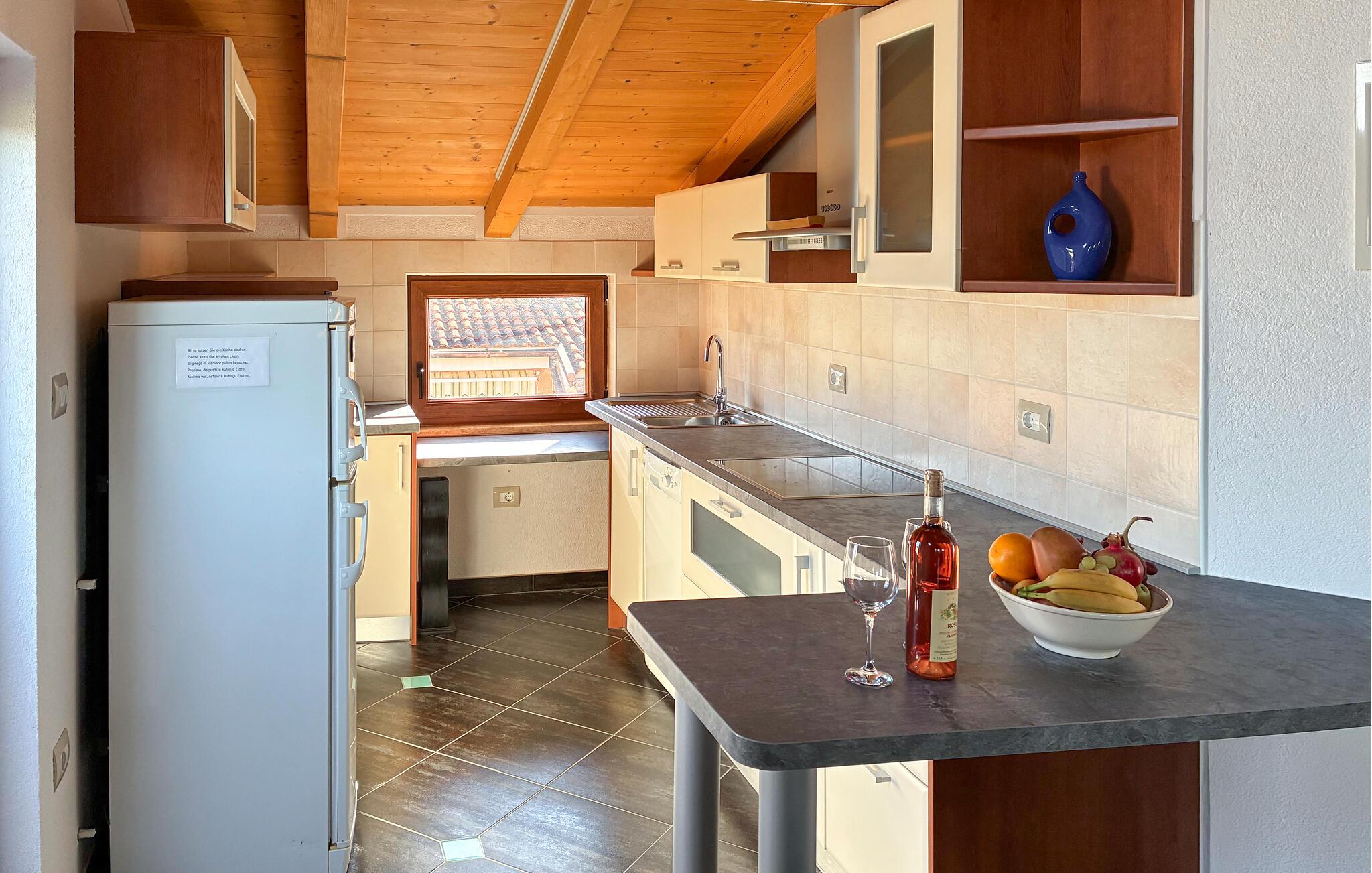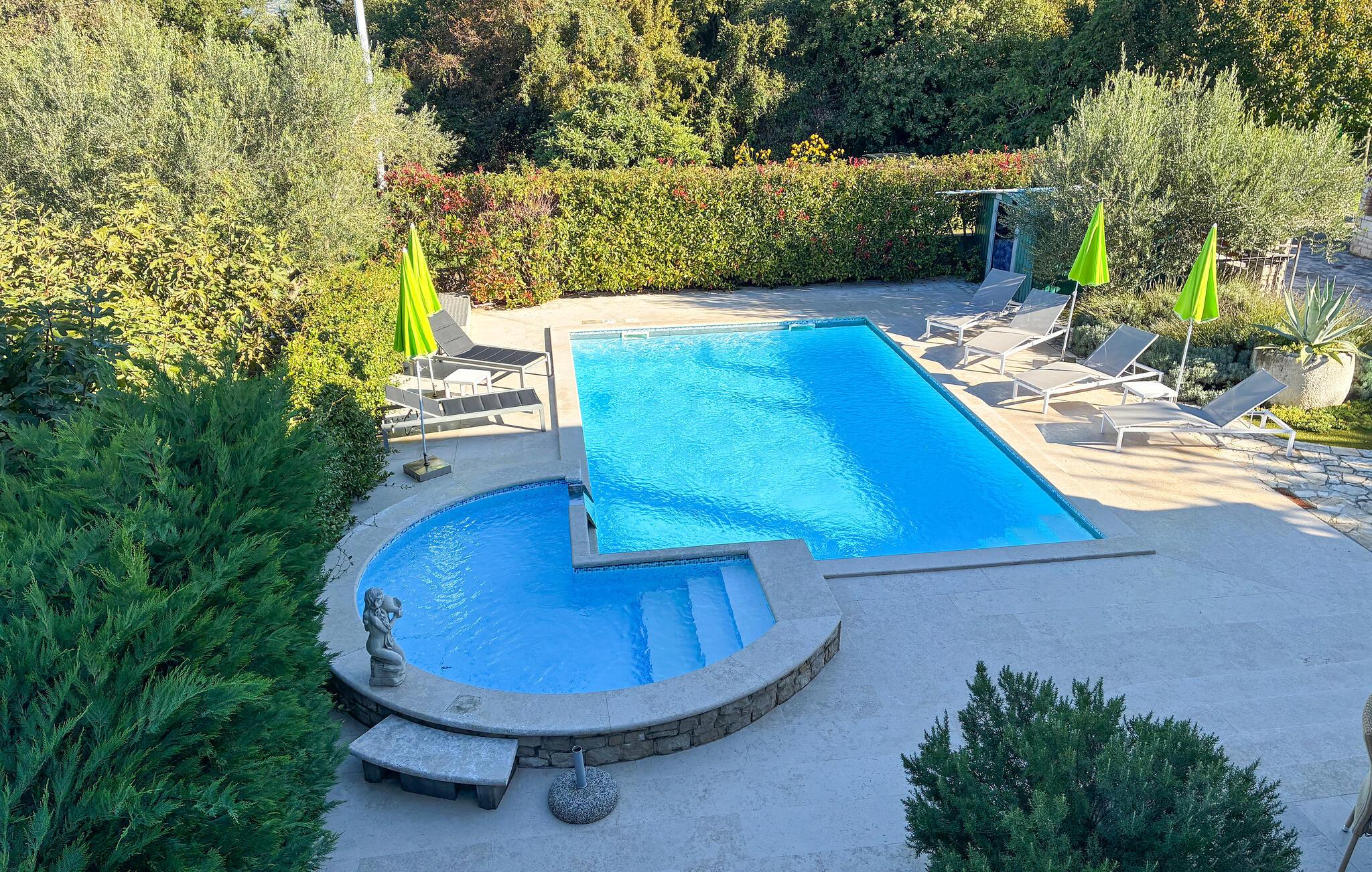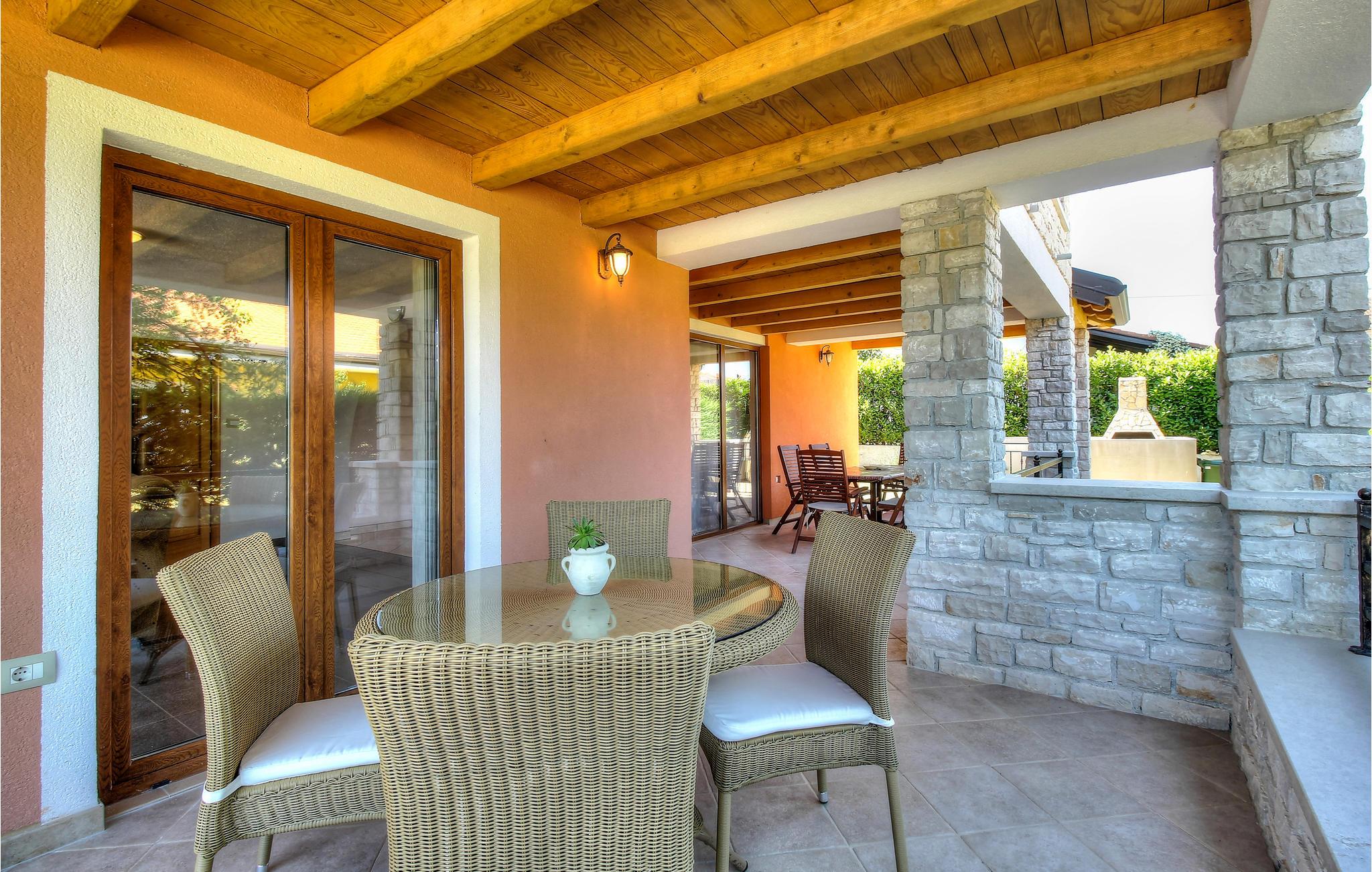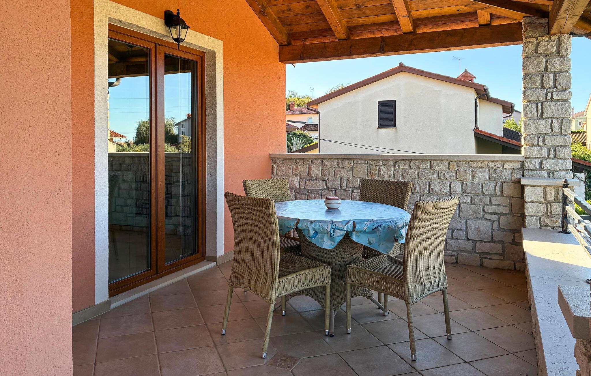 I den lille, rolige landsby Plovanija, tæt på grænsen mellem Slovenien og Kroatien, ligger dette smukke feriehus med swimmingpool, der består af tre lejligheder med separate indgange. Hver lejlighed har et køkken og en stue, soveværelser samt et badeværelse. De åbne, lyse og rummelige værelser skaber en hyggelig atmosfære. Fra stuen på første sal er der adgang til den indbydende terrasse og poolen. Her kan I tilbringe mange solrige timer med ferielæsning og tage en forfriskende dukkert i det kølige vand. I Plovanija findes et kasino. I den nærliggende by Umag, kun 10 minutters kørsel fra huset, afholdes hvert år ATP-tennisturneringen – et sandt højdepunkt for sportsentusiaster. Uanset om I planlægger en aktiv ferie eller blot ønsker at koble fra og slappe af, finder I her perfekte rammer for jeres ophold.