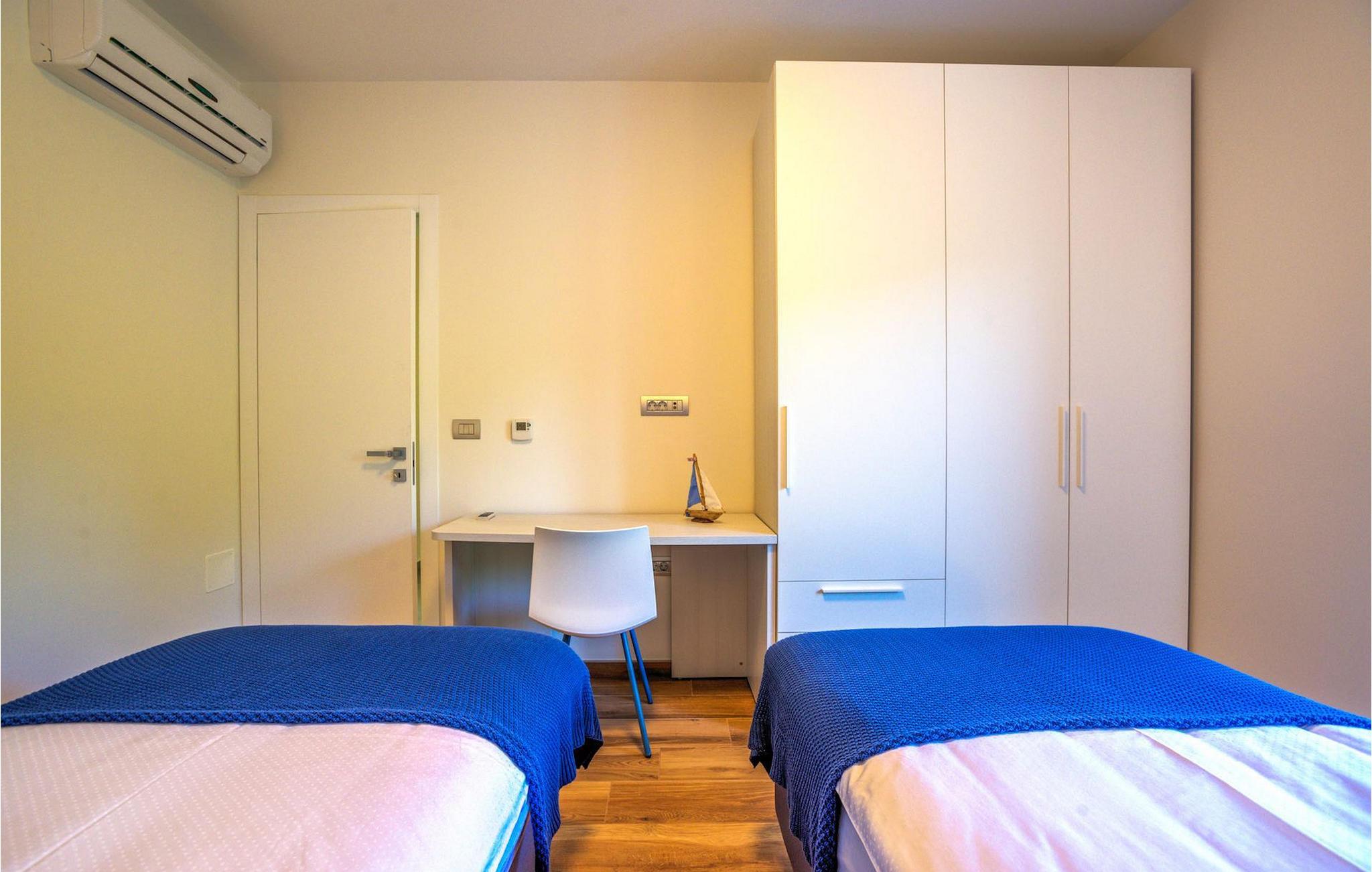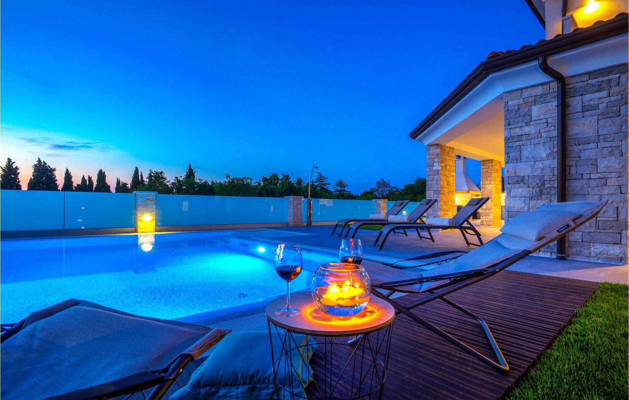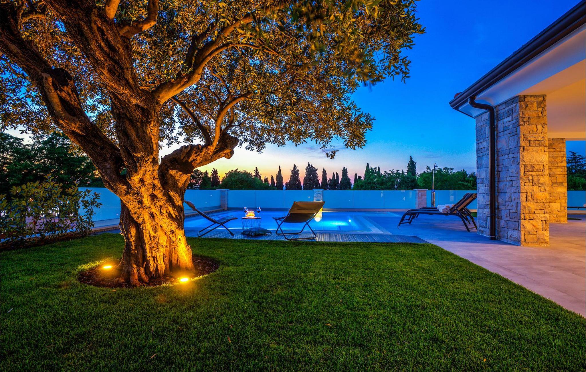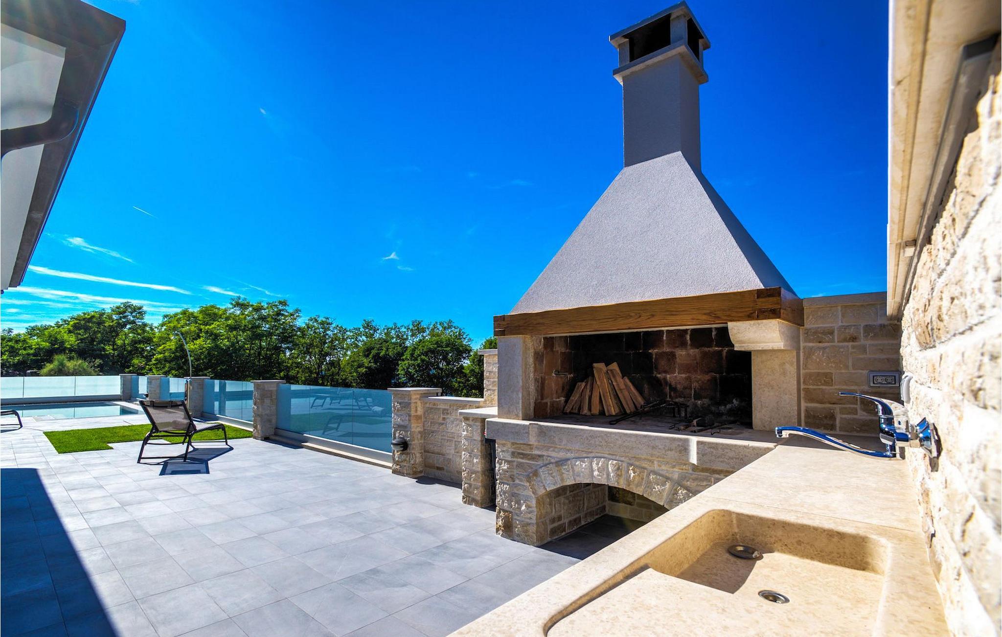 Fantastiske Villa Vista Savudrija er uden tvivl et fremragende valg til en afslappende ferie for familie og venner. Denne rummelige og moderne designet villa kan rumme i alt 8 gæster fordelt på 2 etager og 4 soveværelser. Det udendørs område vil helt sikkert opfylde alle dine ferieforventninger. En 33m2 privat pool med hydromassage vil ikke kun holde børnene beskæftiget i temmelig lang tid, men den vil tilbyde dig en tiltrængt forfriskning på de varme middelhavssommerdage. Slap af ved poolen på liggestolene, læs din yndlingsbog, eller nyd blot en forfriskende drink. Udendørsområdet har også et forbløffende gammelt oliventræ, hvorunder naturlig skygge kan du helt slippe hverdagens stress. Et dejligt overdækket loungeområde er også perfekt til f.eks. at nippe til din morgenkaffe. Herfra kan du komme ind i den rummelige indendørs opholdsstue bestående af stue, spiseplads og fuldt udstyret køkken. Dette rum er fuldt airconditioneret, fyldt med naturligt lys takket være gallerivinduerne og moderne designet med træ og blå detaljer. På denne etage vil gæsterne finde et soveværelse med en dobbeltseng og et badeværelse med bruser. På anden sal er 3 ekstra soveværelser, 2 med 2 enkeltsenge og 1 med en dobbeltseng, og 2 badeværelser hver med bruser. Så hvis du ønsker at udforske Istrien og blive indkvarteret i en pæn og moderne villa, er Vista Savudrija måske den perfekte pasform. Begynd at planlægge dit kroatiske eventyr i dag, og kom for at finde ud af, hvorfor gæsterne elsker det her!Villa Vista Savudrija er beliggende i hjertet af Savudrija, den nordvestlige top af Istriens kyst. Dette område er kendt for windsurfing og golf. Villaen er beliggende tæt på stranden, barer, restauranter. Savudrija, engang fiskerlandsby, ligger kun en kort køretur fra kystbyen Umag. Umag tilbyder et stort udvalg af fritidsaktiviteter, turistfaciliteter samt en lille havn. Fremragende restauranter, barer og caféer kan findes i dens brostensbelagte gader. Hver juli finder ATP Croatian Open sted på Stella Maris tenniscenter, hvor mange af de største navne deltager i mændene. Det magiske istriske landskab, der er berømt for sine fortryllende middelalderbyer på en bakketop samt gastronomiske fornøjelser, nås hurtigt ad fremragende veje.