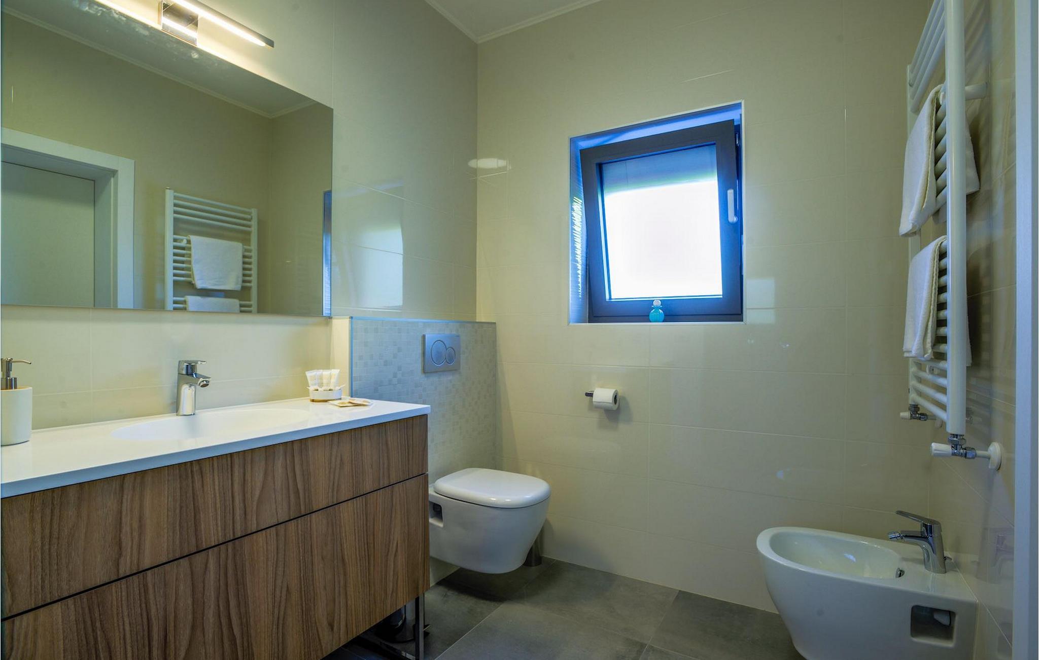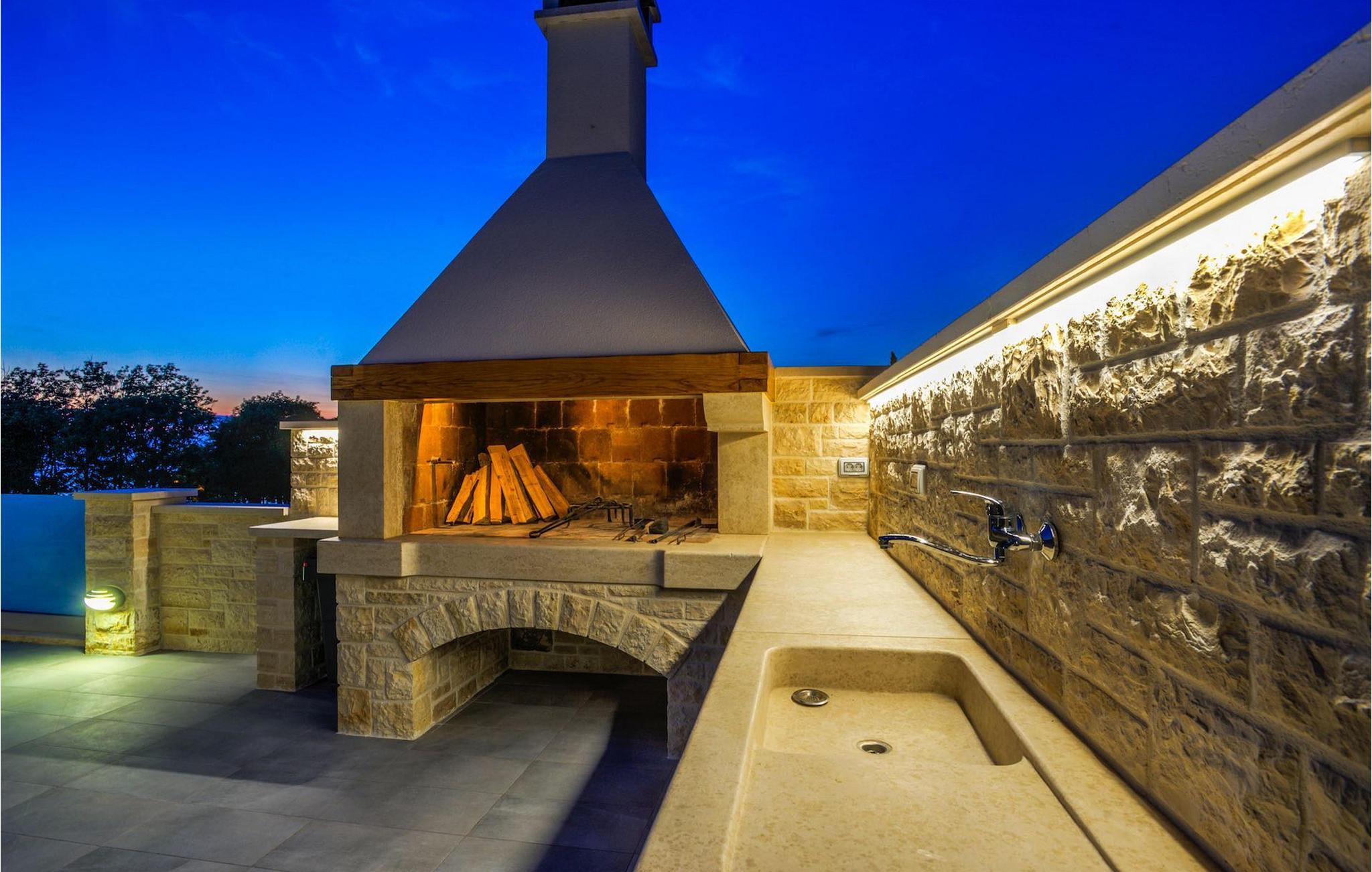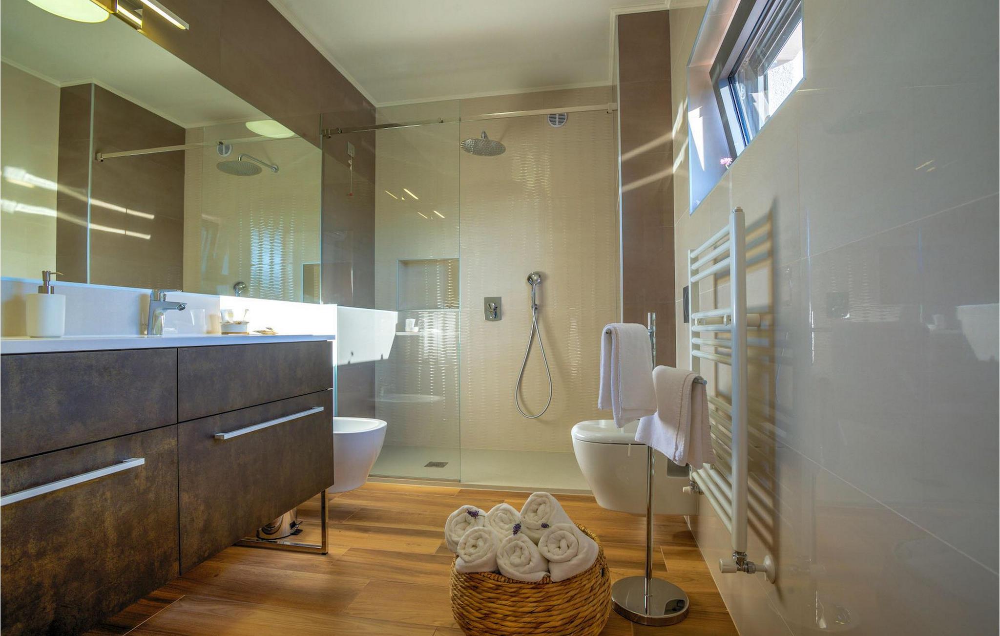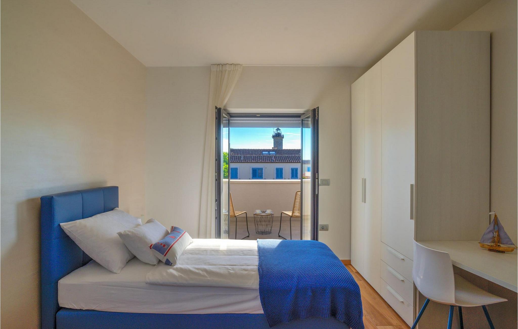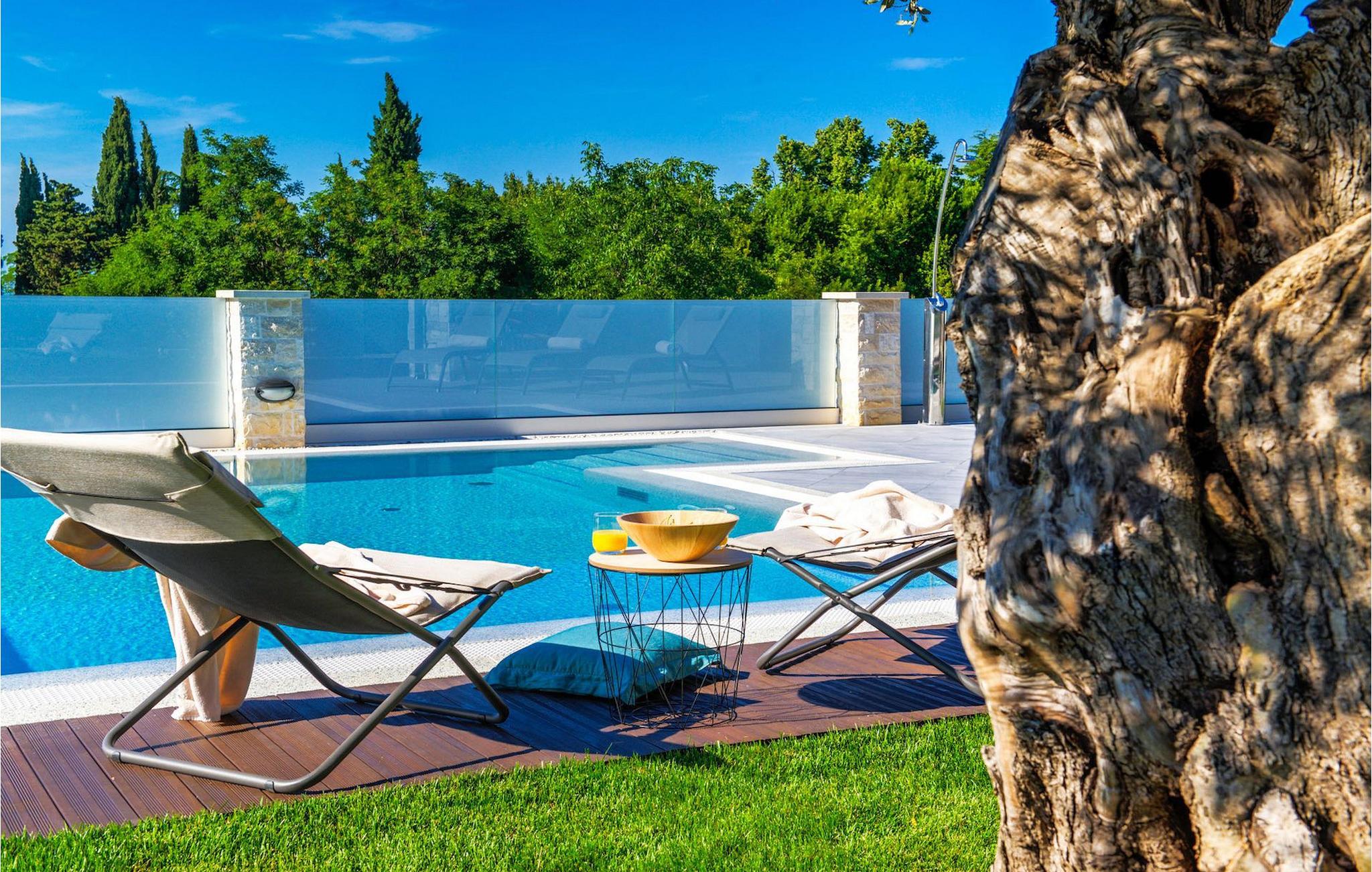 Fantastiske Villa Vista Savudrija er uden tvivl et fremragende valg til en afslappende ferie for familie og venner. Denne rummelige og moderne designet villa kan rumme i alt 8 gæster fordelt på 2 etager og 4 soveværelser. Det udendørs område vil helt sikkert opfylde alle dine ferieforventninger. En 33m2 privat pool med hydromassage vil ikke kun holde børnene beskæftiget i temmelig lang tid, men den vil tilbyde dig en tiltrængt forfriskning på de varme middelhavssommerdage. Slap af ved poolen på liggestolene, læs din yndlingsbog, eller nyd blot en forfriskende drink. Udendørsområdet har også et forbløffende gammelt oliventræ, hvorunder naturlig skygge kan du helt slippe hverdagens stress. Et dejligt overdækket loungeområde er også perfekt til f.eks. at nippe til din morgenkaffe. Herfra kan du komme ind i den rummelige indendørs opholdsstue bestående af stue, spiseplads og fuldt udstyret køkken. Dette rum er fuldt airconditioneret, fyldt med naturligt lys takket være gallerivinduerne og moderne designet med træ og blå detaljer. På denne etage vil gæsterne finde et soveværelse med en dobbeltseng og et badeværelse med bruser. På anden sal er 3 ekstra soveværelser, 2 med 2 enkeltsenge og 1 med en dobbeltseng, og 2 badeværelser hver med bruser. Så hvis du ønsker at udforske Istrien og blive indkvarteret i en pæn og moderne villa, er Vista Savudrija måske den perfekte pasform. Begynd at planlægge dit kroatiske eventyr i dag, og kom for at finde ud af, hvorfor gæsterne elsker det her!Villa Vista Savudrija er beliggende i hjertet af Savudrija, den nordvestlige top af Istriens kyst. Dette område er kendt for windsurfing og golf. Villaen er beliggende tæt på stranden, barer, restauranter. Savudrija, engang fiskerlandsby, ligger kun en kort køretur fra kystbyen Umag. Umag tilbyder et stort udvalg af fritidsaktiviteter, turistfaciliteter samt en lille havn. Fremragende restauranter, barer og caféer kan findes i dens brostensbelagte gader. Hver juli finder ATP Croatian Open sted på Stella Maris tenniscenter, hvor mange af de største navne deltager i mændene. Det magiske istriske landskab, der er berømt for sine fortryllende middelalderbyer på en bakketop samt gastronomiske fornøjelser, nås hurtigt ad fremragende veje.