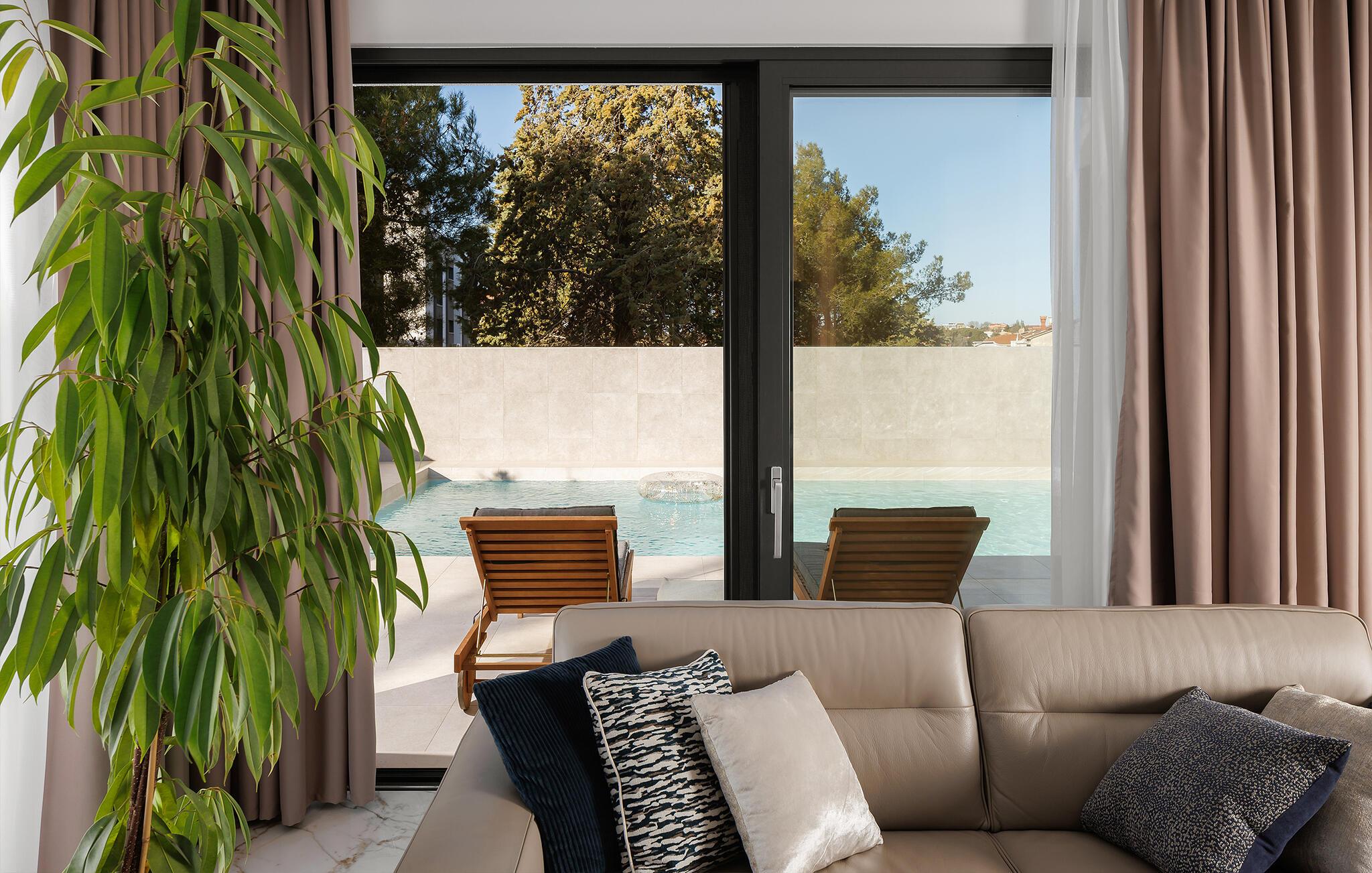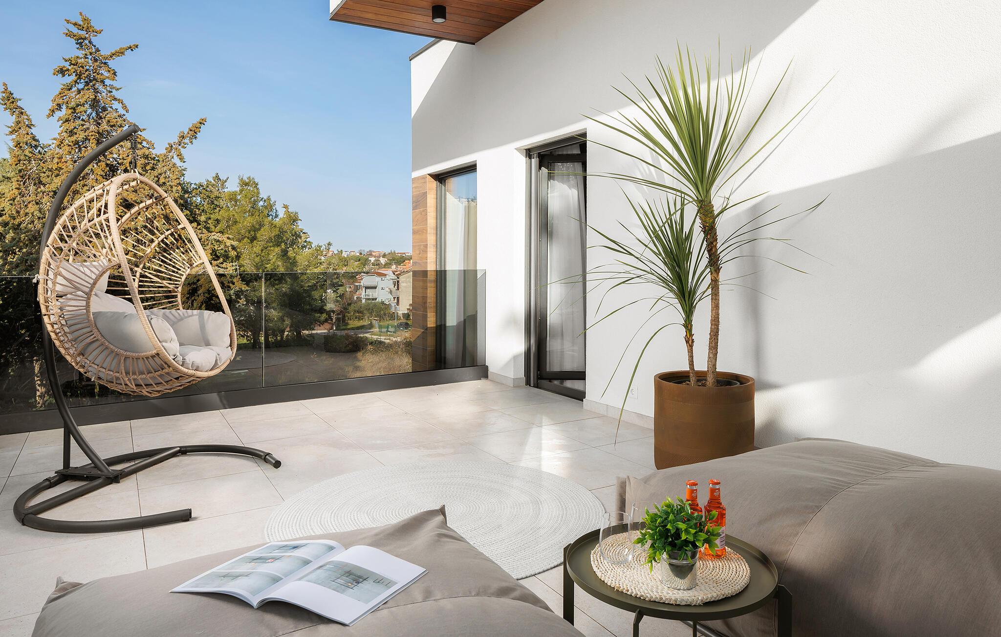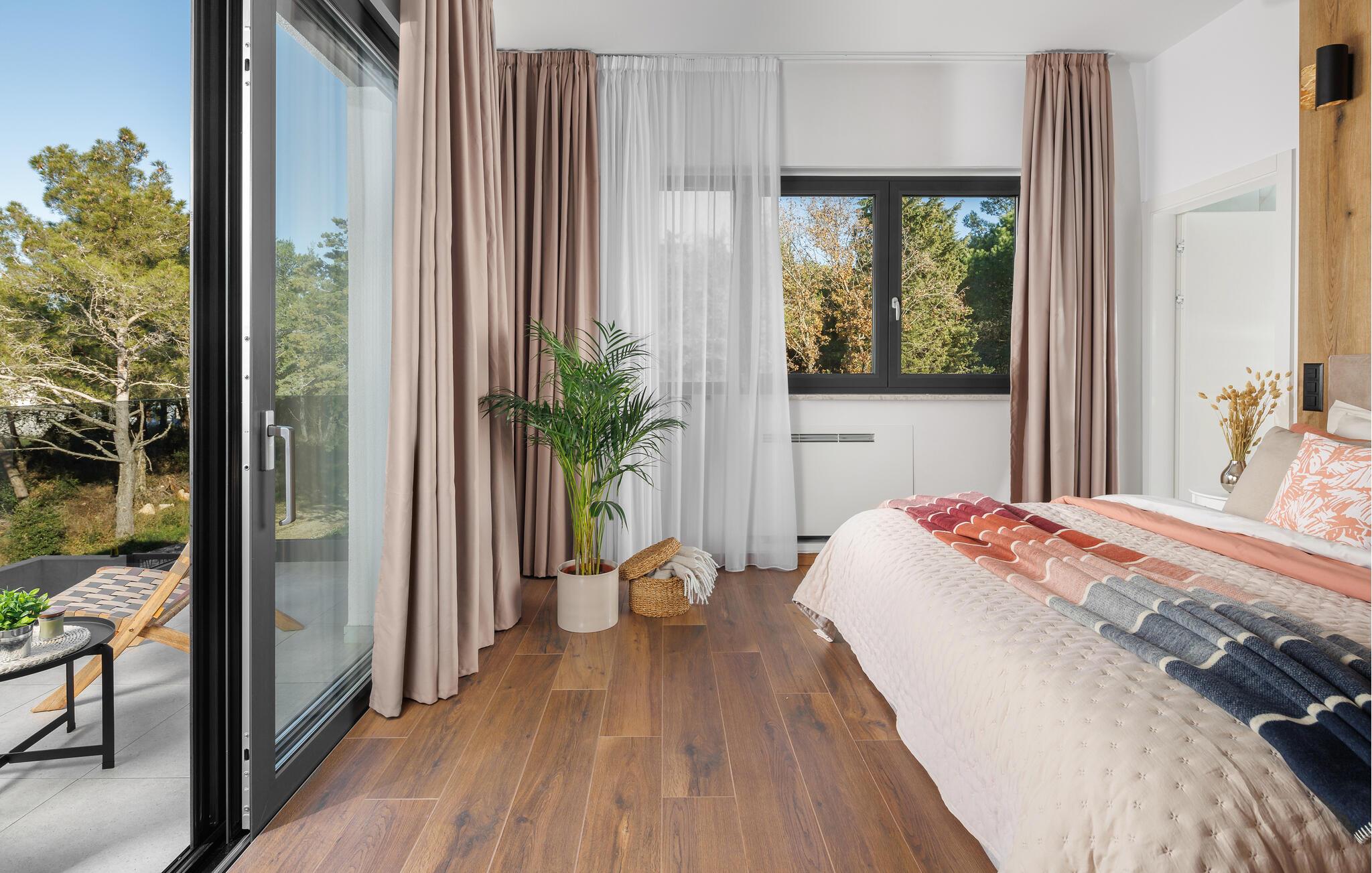 Et feriehus taget lige ud af et indretningsmagasin? Ja, det er, hvad der venter jer i denne luksuriøse bolig i Zambratija. Her kan I se frem til et spekakulært syn, når I første gang beskuer den moderne indretning, der kombinerer lyse farver med sten og træ. Indgangen med den store vinduesvæg er imponerende nok i sig selv, og de store soveværelser giver jer masser af komfort og mulighed for ro og afslapning. I kan også glæde jer til fitnessudstyret og den store sauna, hvor I kan svede hverdagens stress og jag ud af kroppen. I haven kan I slappe af i spabadet eller tage en dukkert i poolen. På altanerne kan I trække jer tilbage med en god bog eller blot nyde solen og roen.