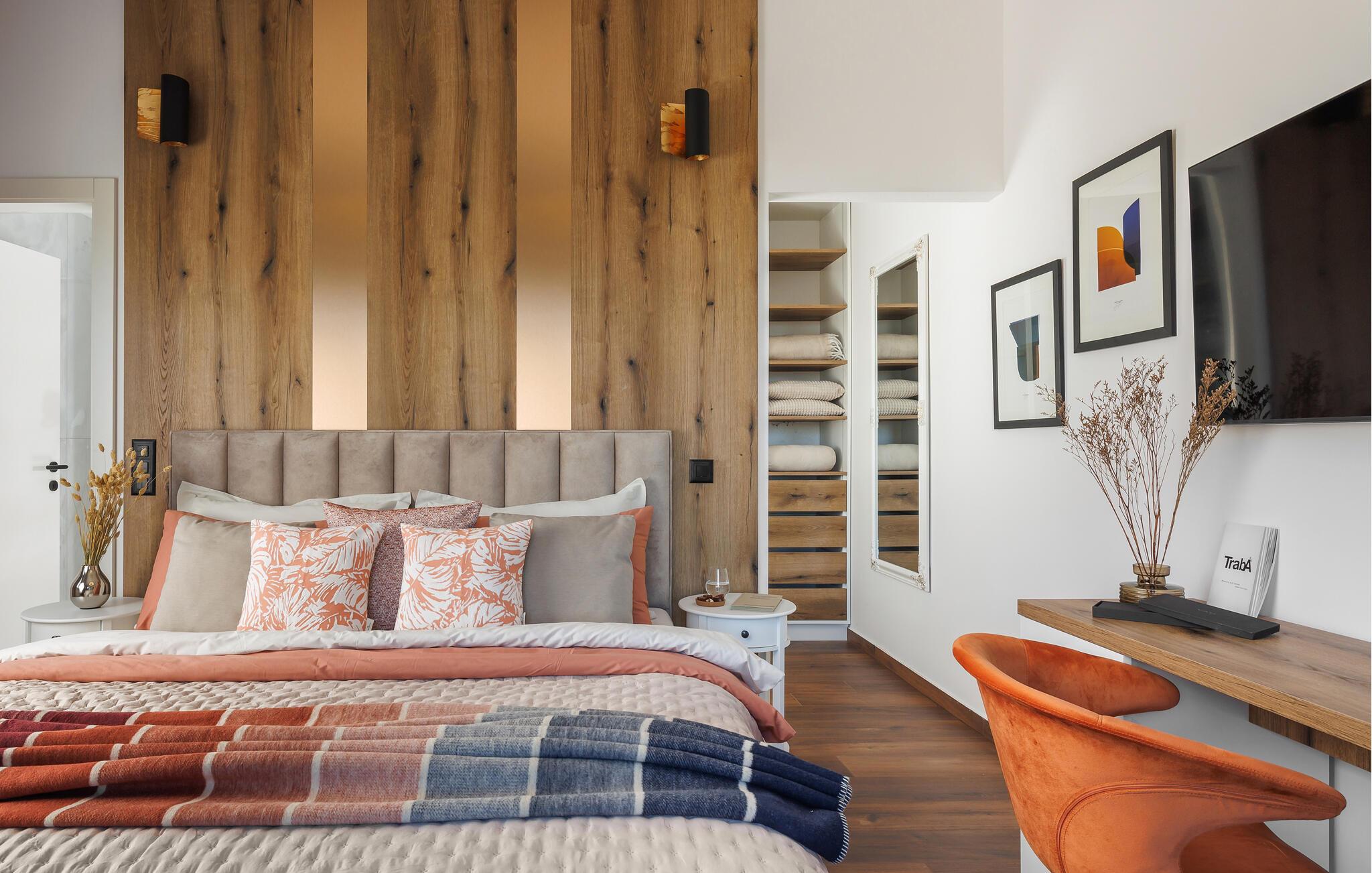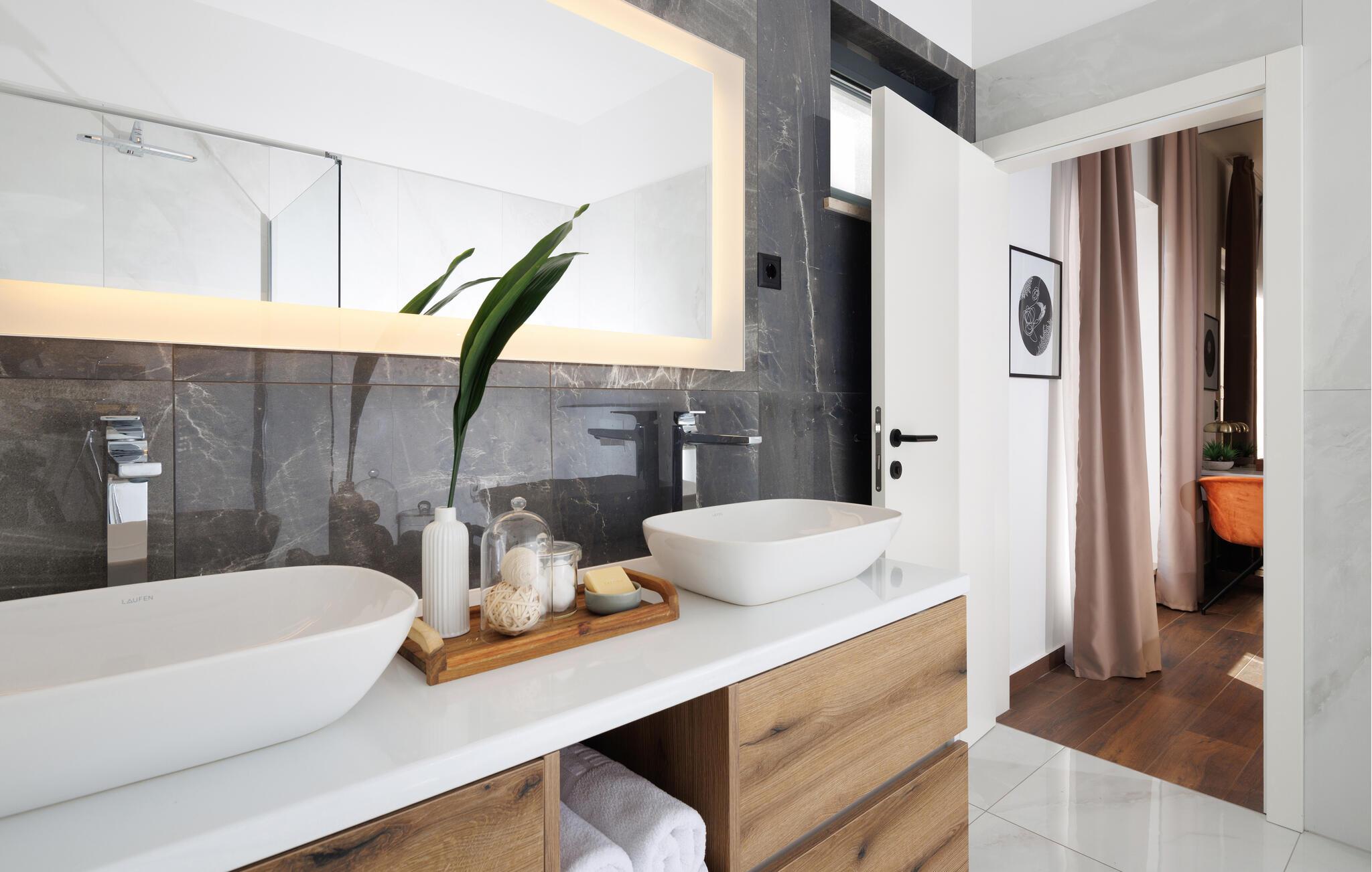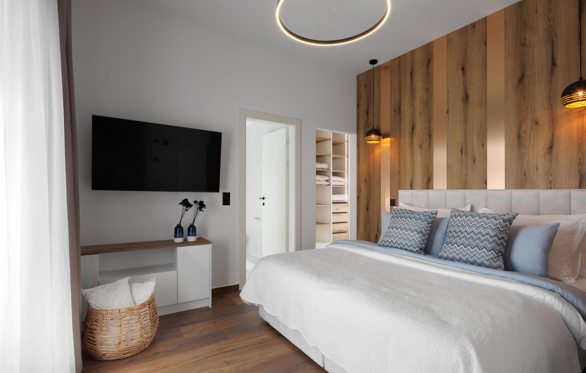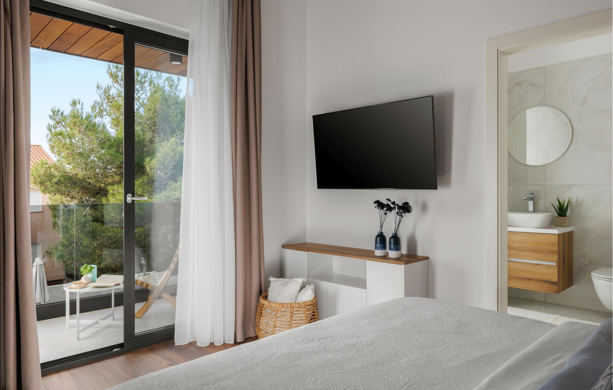 Et feriehus taget lige ud af et indretningsmagasin? Ja, det er, hvad der venter jer i denne luksuriøse bolig i Zambratija. Her kan I se frem til et spekakulært syn, når I første gang beskuer den moderne indretning, der kombinerer lyse farver med sten og træ. Indgangen med den store vinduesvæg er imponerende nok i sig selv, og de store soveværelser giver jer masser af komfort og mulighed for ro og afslapning. I kan også glæde jer til fitnessudstyret og den store sauna, hvor I kan svede hverdagens stress og jag ud af kroppen. I haven kan I slappe af i spabadet eller tage en dukkert i poolen. På altanerne kan I trække jer tilbage med en god bog eller blot nyde solen og roen.