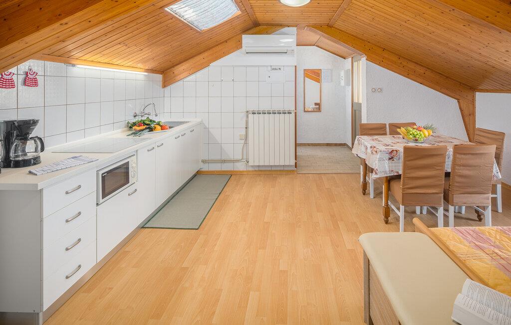 Denne lyse og indbydende lejlighed ligger lige ved stranden og tilbyder komfortabel indkvartering til en solrig ferie ved den smukke Adriaterhavskyst. Tilbered middelhavsretter, nyd afslappede måltider og afslut en lang dag under den blå himmel med en spændende tv-serie.