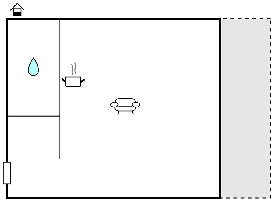 Opholdsstue/køkken - 2 Sovepladser. (Dobbeltseng(e)).