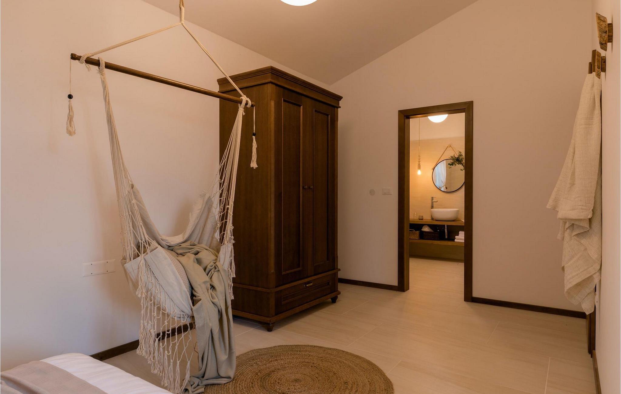 Dejlig Villa Toscana med i alt 2 soveværelser kan rumme op til 4+2 gæster. Dets moderne minimalistiske interiør skaber en hyggelig og afslappende atmosfære. Store glasflader giver naturligt lys i alle villaens rum og går hånd i hånd med pastelfarver og charmerende trædetaljer. I stueetagen finder du en smagfuldt indrettet og rummelig opholdsstue, der er forbundet med et fuldt udstyret køkken med integreret spisestue. Der er også et soveværelse med to enkeltsenge og eget badeværelse i stueetagen. Et soveværelse med dobbeltseng med eget badeværelse og balkon er på øverste etage.
