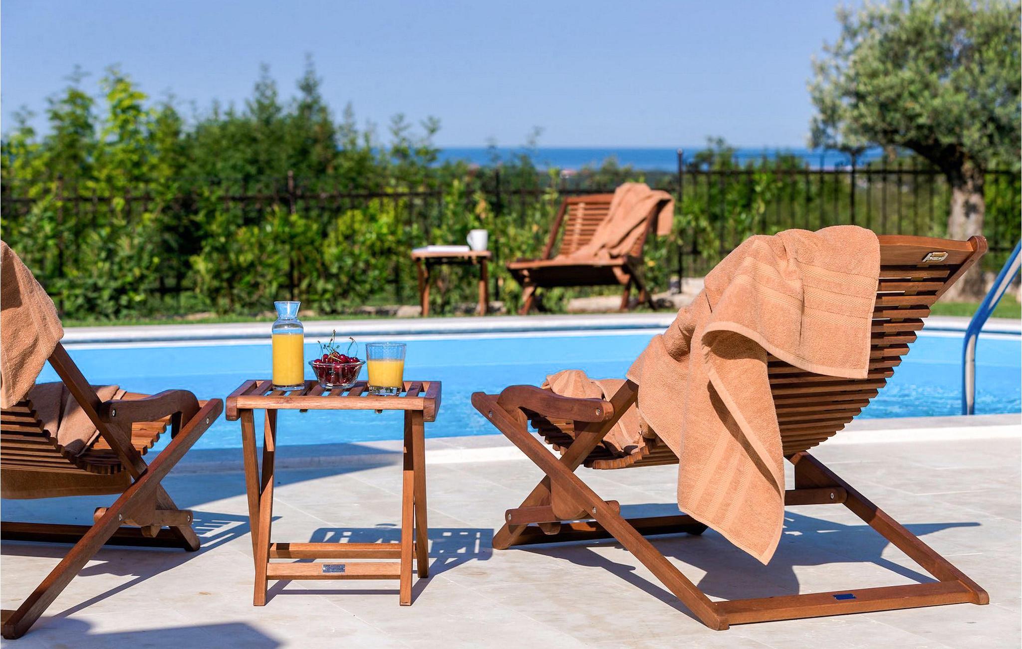 Stueetagen åbner ud i det rummelige og dejlige udendørsområde i denne villa. Højdepunktet på terrassen er en attraktiv pool med flot havudsigt. Den omhyggeligt plejede have er blot endnu en grund til at tilbringe tid på terrassen i Villa Toscana. Nyd solskinnet på en af de komfortable liggestole omkring poolen, slap af på den overdækkede del af terrassen eller nyd et lækkert måltid tilberedt på den udendørs grill under den romantiske sommerhimmel. Villaen tilbyder sine gæster privat parkering til 2 bilerDen stilfulde og moderne Villa Toscana tilbyder dig en lidt anderledes udsigt over Middelhavet. Efter at have tilbragt din ferie her, kan det nemt blive din foretrukne feriedestination. Villaen ligger på en lille bakke med en himmelsk panoramaudsigt over havet. Det er meget tæt på byen Umag, som du ikke bør gå glip af. Den gamle bydel i Umag er rig på smukke venetianske huse, brostensbelagte gader, fantastiske udsigtspunkter og kombinerer livligt byliv med natur. Butikker, restauranter og barer ligger kun 5 km og kan derfor nås på få minutter i bil, hvilket gør planlægningen af din ferie meget nemmere.