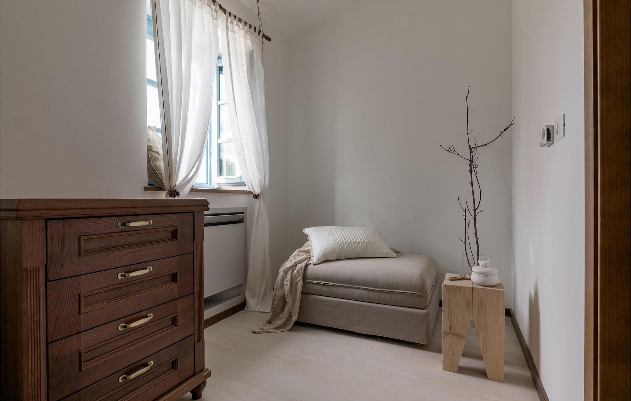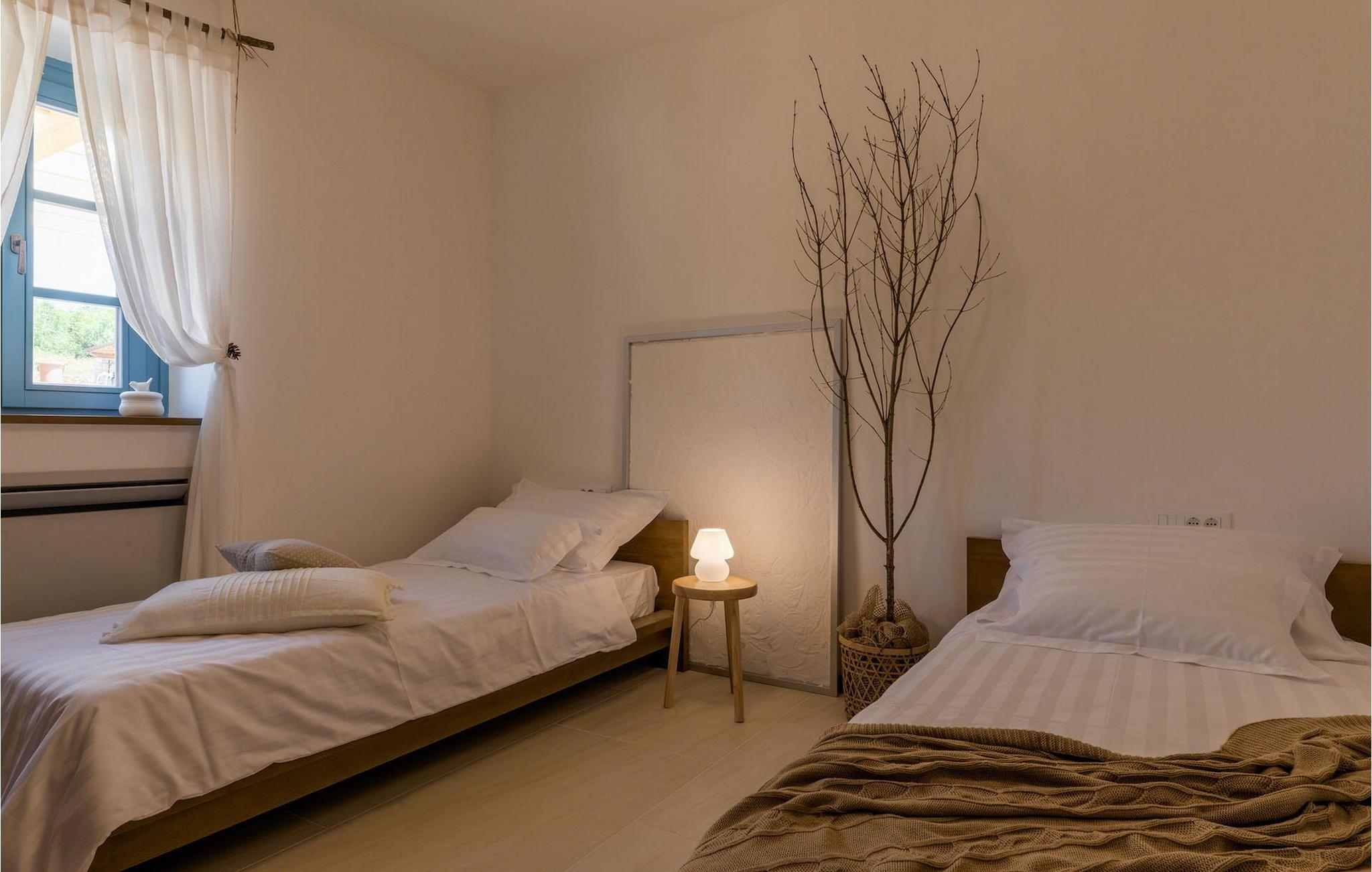 Det fantastiske interiør i denne stenvilla er formet af træmøbler af høj kvalitet og nøje udvalgte detaljer. Stueetagen består af en lys og luftig opholdsstue forbundet med et fuldt udstyret køkken med integreret spisestue. Den charmerende atmosfære i stuen gør den til et perfekt sted at nyde en god bog eller selskabet med dine kære. Der er også et soveværelse med to enkeltsenge og eget badeværelse i stueetagen. Et soveværelse med dobbeltseng med eget badeværelse og privat balkon er på øverste etage.