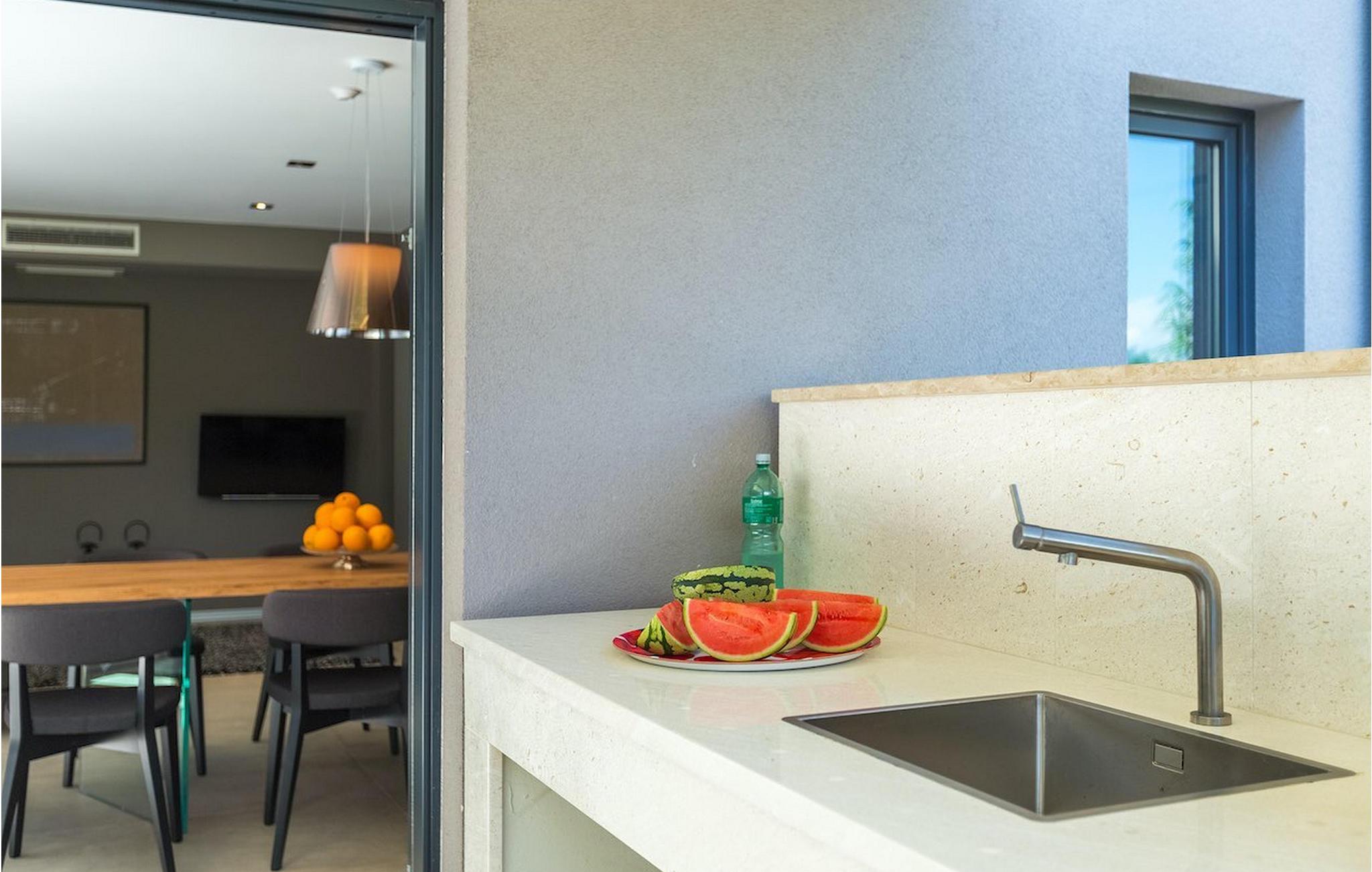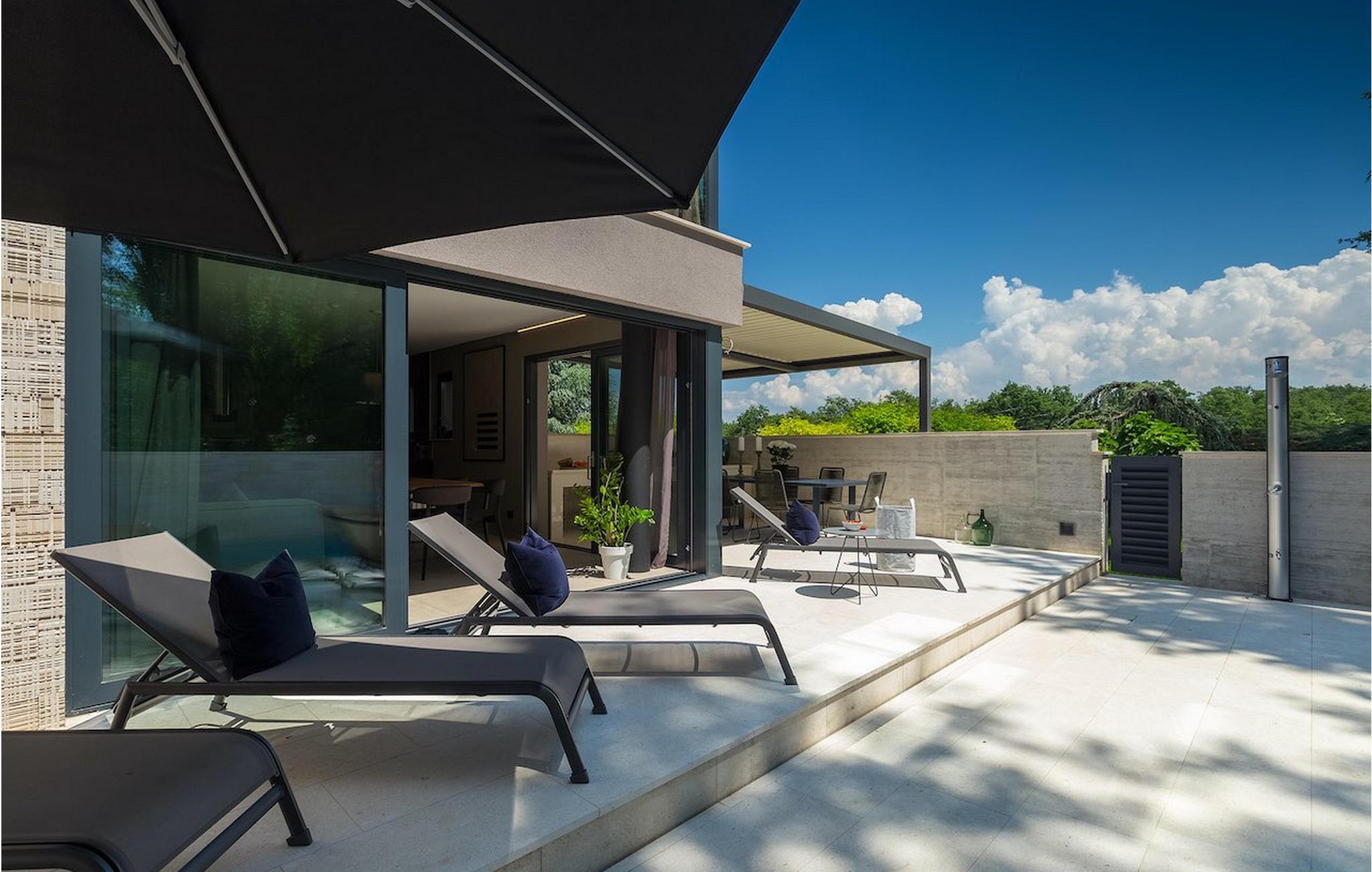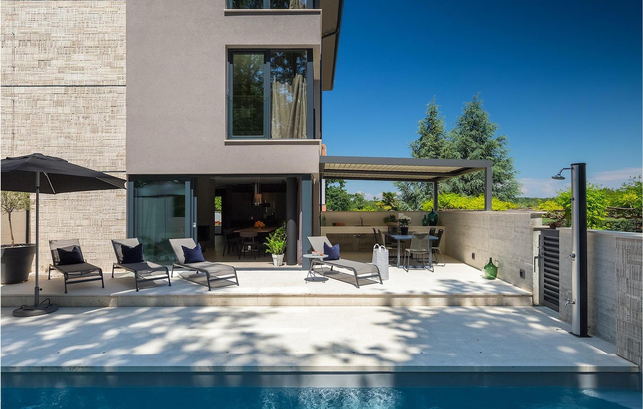 Villa Oliva 2 er beliggende i byen Umag, på den vestlige del af halvøen Istrien. Det moderne design og beliggenheden af denne smukke ferievilla lader ikke meget tilbage at ønske. Havet med smukke strande ligger kun 150 m væk. Villaen kan maksimalt rumme 8+2 gæster og har fire soveværelser. Den luftige og rummelige stueetage byder på en moderne luksuriøs opholdsstue samt et fuldt udstyret køkken og spiseplads, hvorfra store altanskydedøre fører til den private pool, som kan opvarmes på forespørgsel og mod et tillæg, og til udendørs spisepladsen. På de to øverste etager finder du de 4 soveværelser, hver med eget badeværelse, jævnt fordelt. For underholdning, tag til den nederste etage, hvor et poolbord samt en bordfodbold og dart venter på dig. Villaen er et dobbelthus, men tilbyder fuldstændig privatliv takket være det høje hegn. De to villaer kan også lejes sammen. Ved siden af villaen ligger en eng med legeplads og stor parkeringsplads, som begge deles med Villa Oliva 1.
