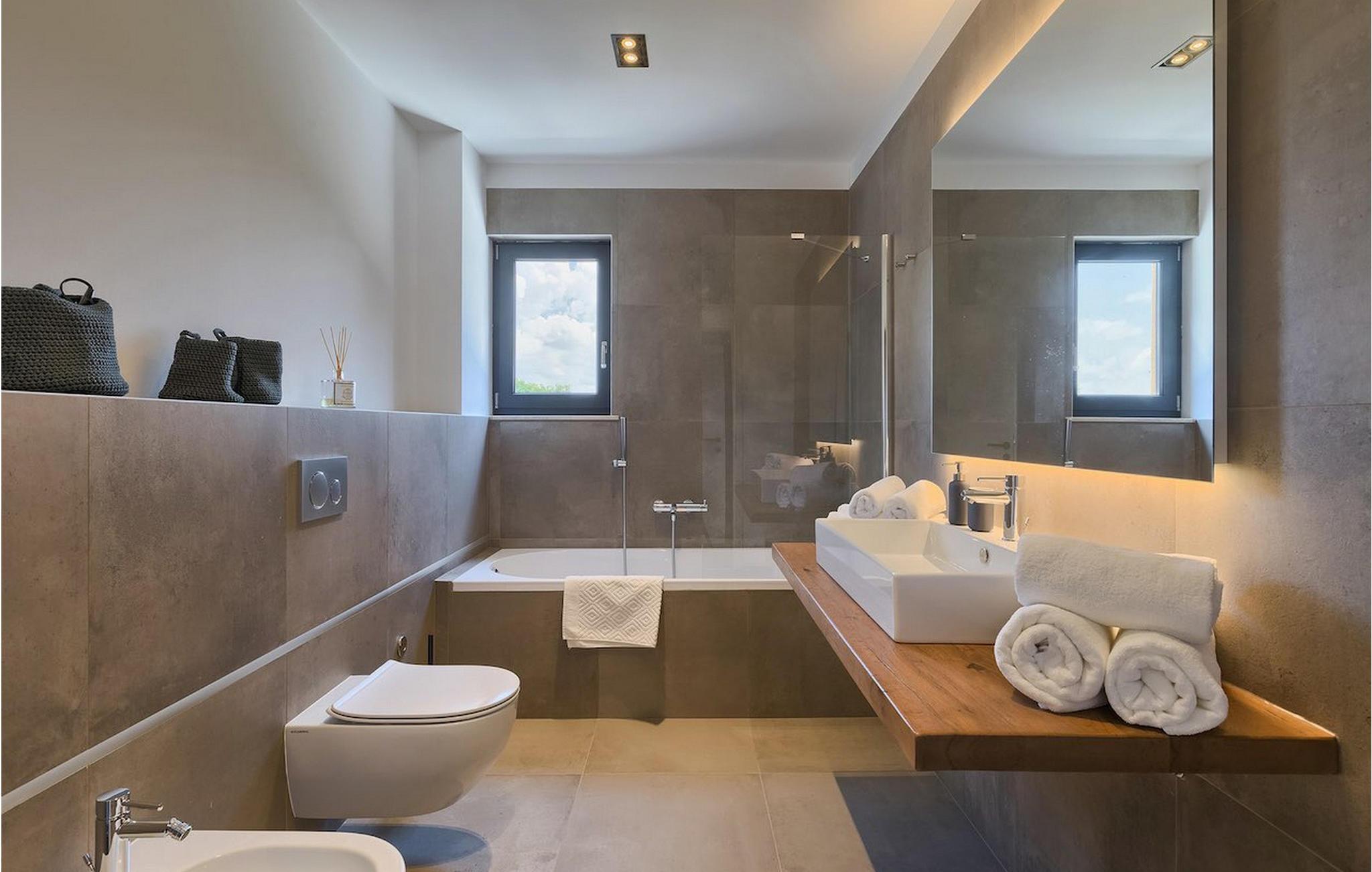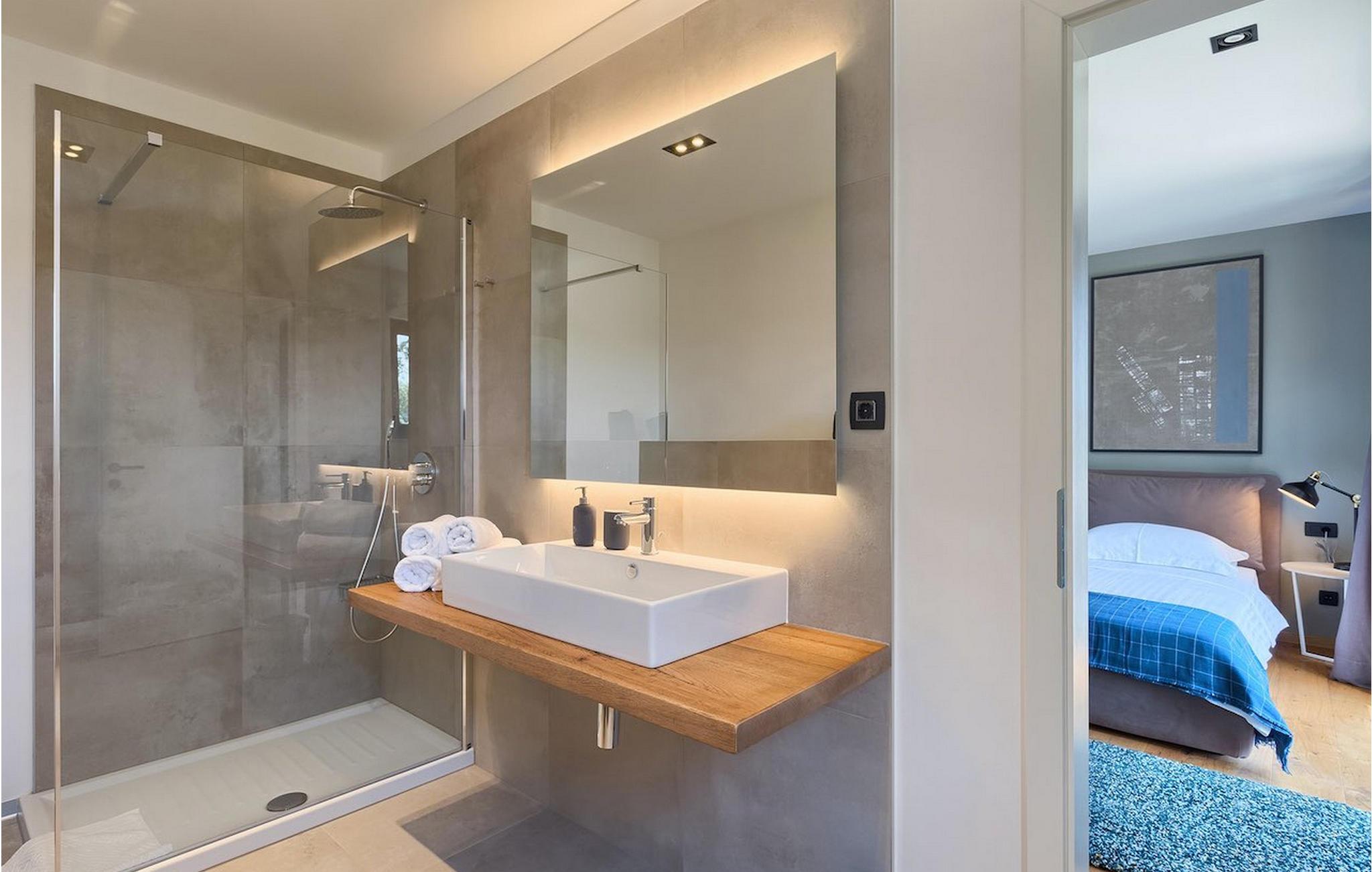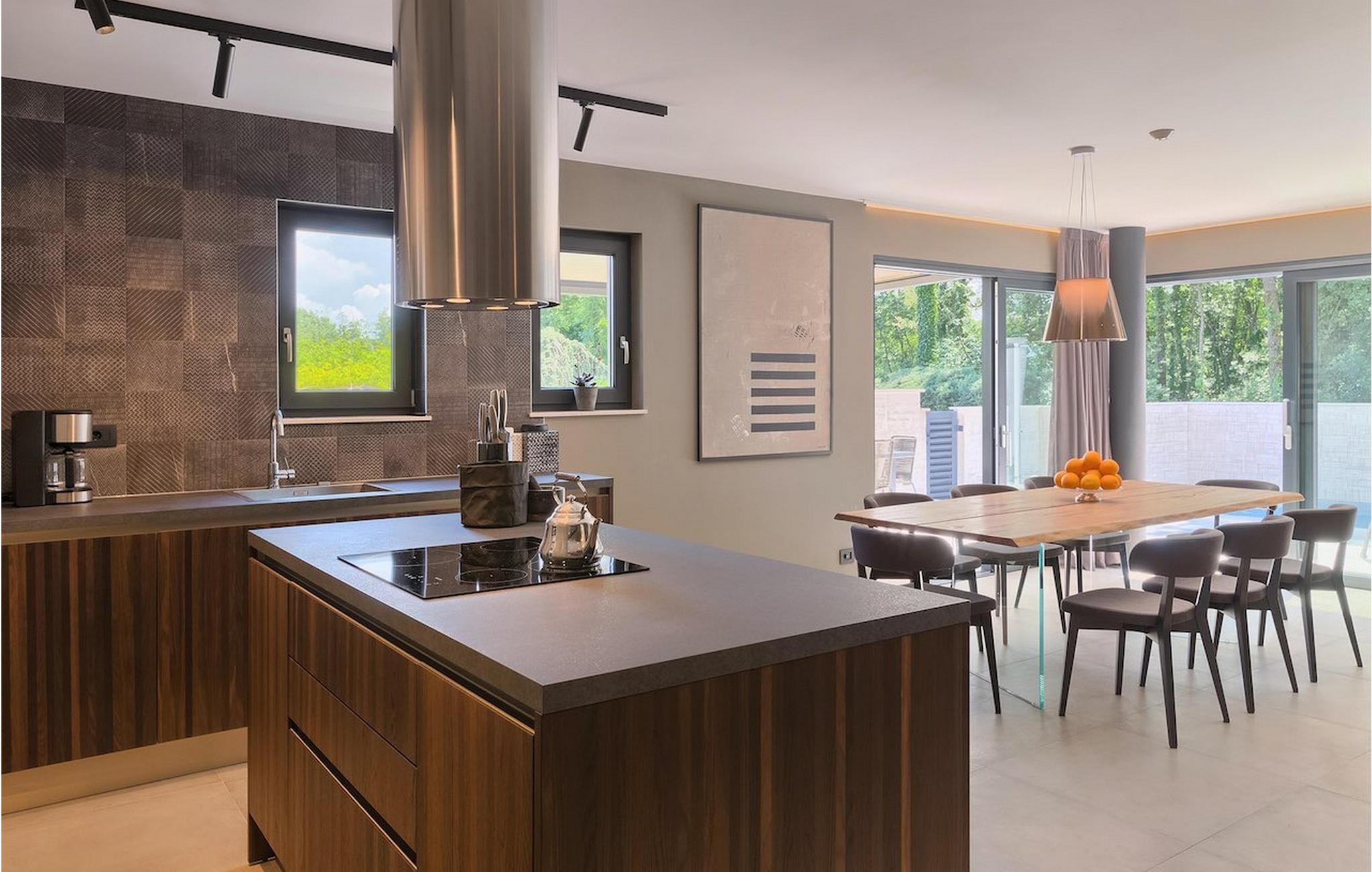 Villa Oliva 2 er beliggende i byen Umag, på den vestlige del af halvøen Istrien. Det moderne design og beliggenheden af denne smukke ferievilla lader ikke meget tilbage at ønske. Havet med smukke strande ligger kun 150 m væk. Villaen kan maksimalt rumme 8+2 gæster og har fire soveværelser. Den luftige og rummelige stueetage byder på en moderne luksuriøs opholdsstue samt et fuldt udstyret køkken og spiseplads, hvorfra store altanskydedøre fører til den private pool, som kan opvarmes på forespørgsel og mod et tillæg, og til udendørs spisepladsen. På de to øverste etager finder du de 4 soveværelser, hver med eget badeværelse, jævnt fordelt. For underholdning, tag til den nederste etage, hvor et poolbord samt en bordfodbold og dart venter på dig. Villaen er et dobbelthus, men tilbyder fuldstændig privatliv takket være det høje hegn. De to villaer kan også lejes sammen. Ved siden af villaen ligger en eng med legeplads og stor parkeringsplads, som begge deles med Villa Oliva 1.