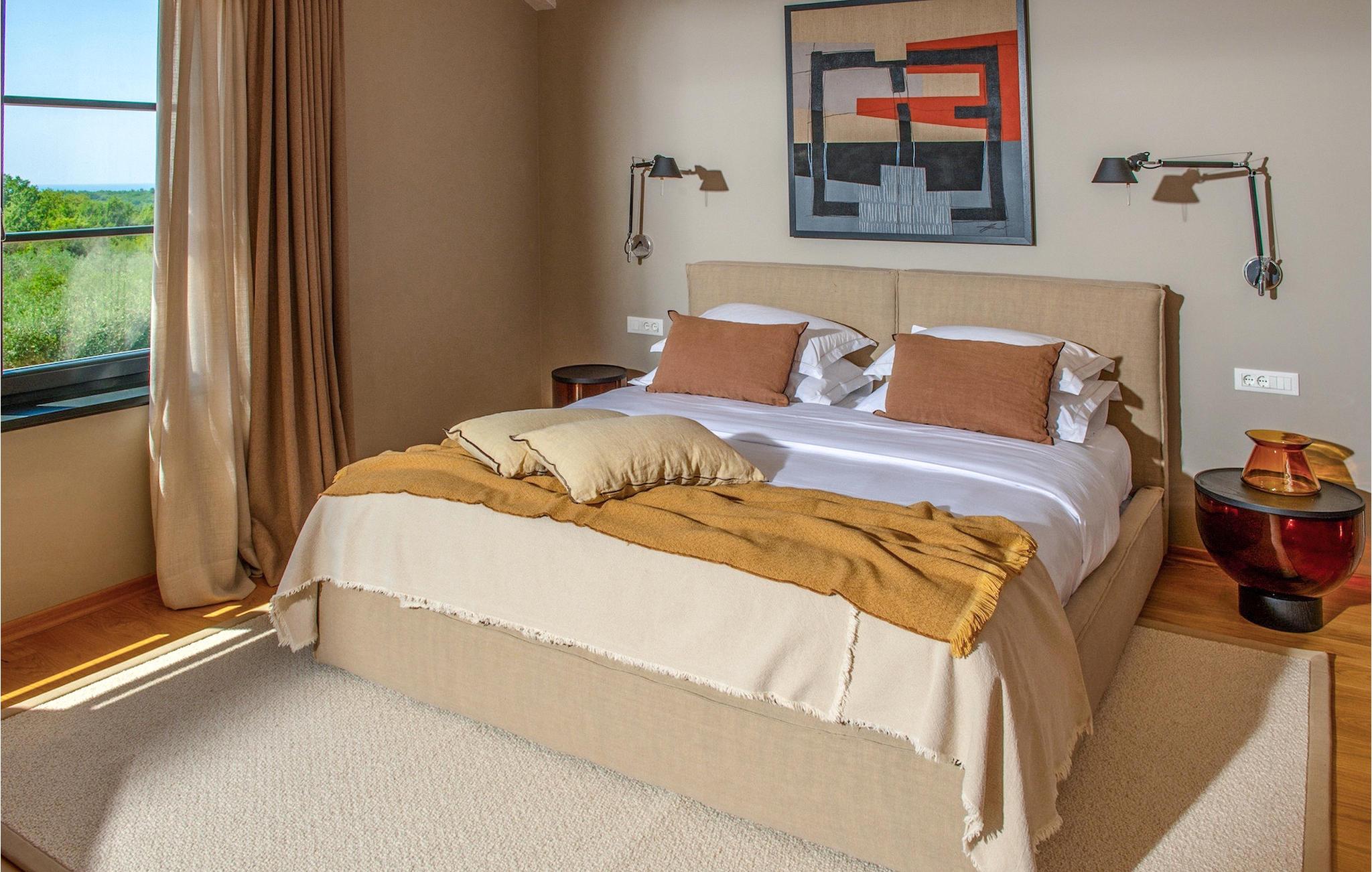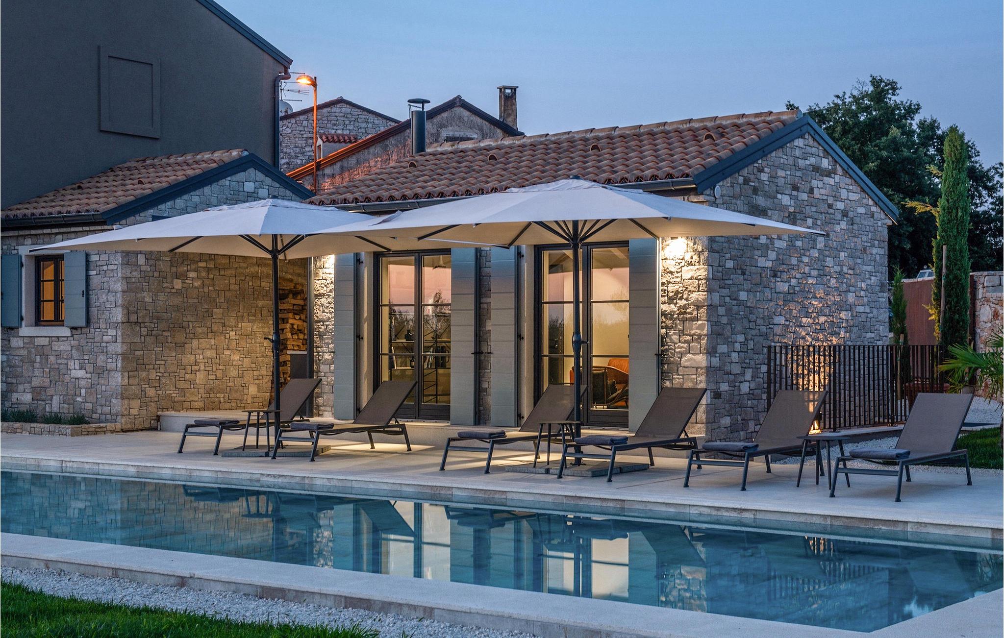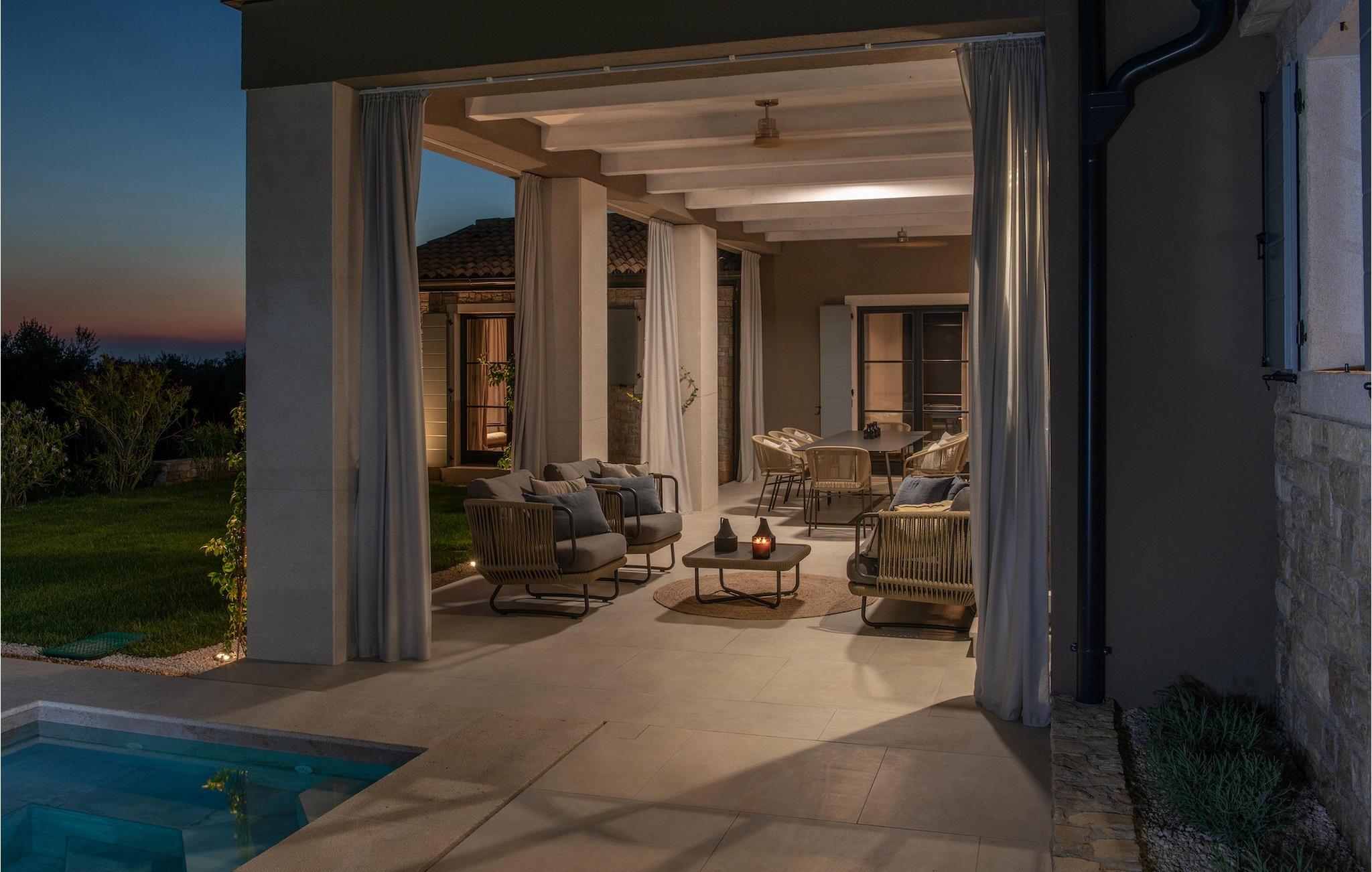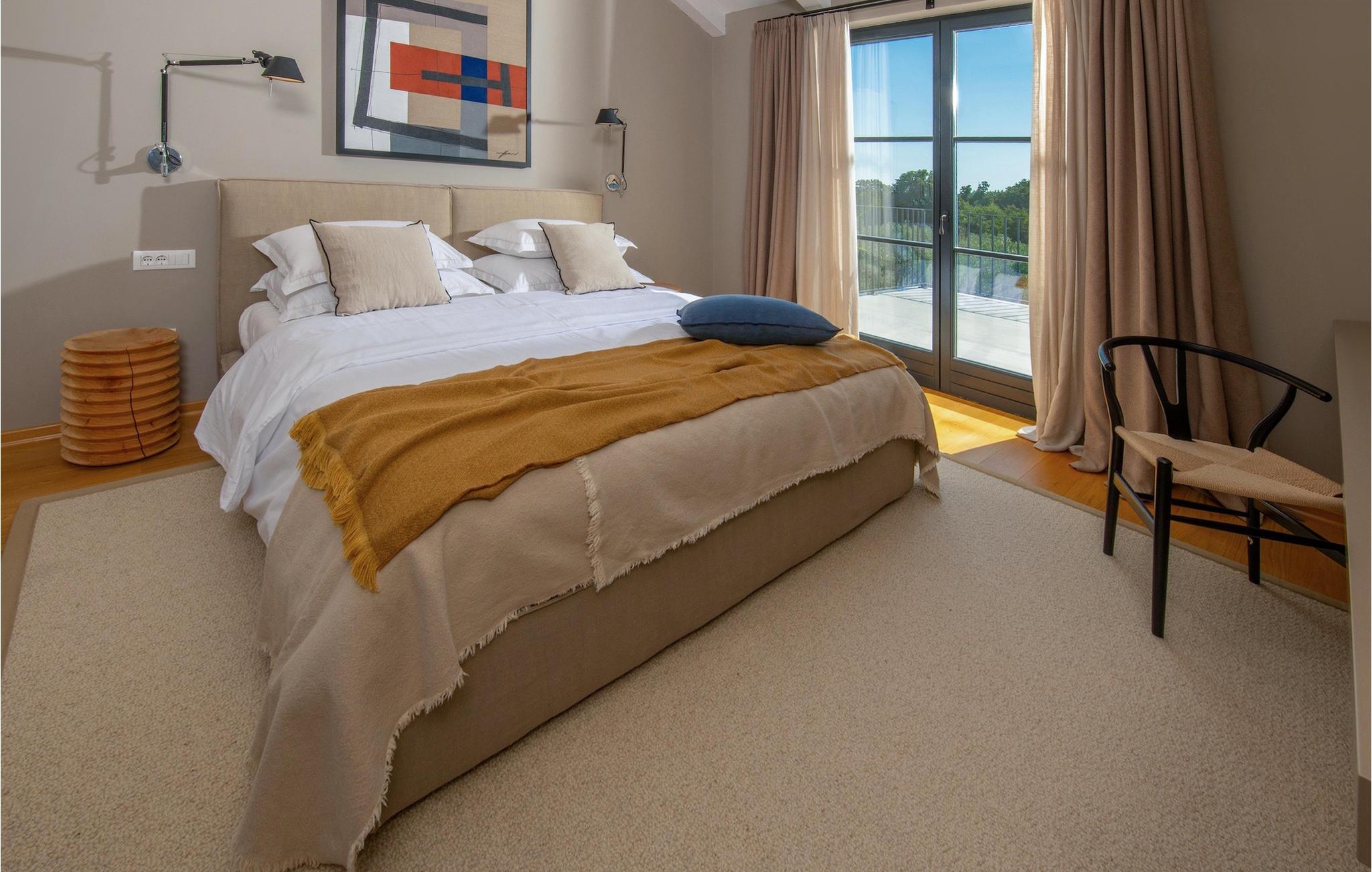 Villa Casa Cupra er en fantastisk familievilla, kun 3 km fra havet, nær Umag, i den nordlige del af Istriens vestkyst. Villaen er omgivet af gamle olivenlunde. En 80m2 pool er i hjertet af villaen, hvor du sandsynligvis vil tilbringe det meste af din ferie. Tag en dukkert i det turkisblå vand eller slap af på en af liggestolene, mens du læser en god bog. Den overdækkede terrasse byder på en hyggelig lounge og et spisebord med plads til 10 gæster og nyd lækre måltider, som du selv har tilberedt på kulgrillen. Hvis du kommer ind i villaens indre fra terrassen, vil du finde dig selv i den åbne opholdsstue med pejs, komfortable siddepladser, et spisebord og et fuldt udstyret moderne køkken samt et separat toilet. De 2 komfortable soveværelser på dette niveau har hver deres eget badeværelse. I det tilstødende hus er der sauna med bruser og desuden en hyggelig lounge, hvor du kan tilbringe hyggelige aftener med familie og venner. Første sal i hovedhuset har 3 skønne soveværelser med hver sit badeværelse. Det store soveværelse har endda et fritstående badekar på værelset. Det ideelle sted at tage en lille pause og stille og roligt nyde udsigten over landskabet med en kop te er den vidunderlige terrasse. Alt er smagfuldt indrettet med moderne og luksuriøse møbler og indrettet med stor sans for detaljer. Forkæl dig selv med noget helt særligt med et strejf af luksus og book den smukke Villa Casa Cupra!Villa Casa Cupra ligger i en stille landsby nord for Umag, kun 3 km væk fra den nærmeste strand og alle de faciliteter, som sådan en by byder på. Butikker, restauranter og caféer er alle inden for nem køreafstand. For alle sportselskere ligger en golfbane kun 2 km fra villaen. Kystbyen Umag, der ligger i det nordvestlige Istrien, er bedst kendt for sit Stella Maris Stadion, hvor den berømte ATP-tennisturnering finder sted. Denne smukke by har dog også meget at byde på i forhold til kultur, gastronomi og aktiviteter. Besøg Maria Himmelfartskirken eller bymuseet, nyd lokale specialiteter såsom fisk, vildt og trøfler, prøv den lækre olivenolie, besøg en af de smukke strande og skjulte bugter eller hav det sjovt med de sportsaktiviteter, du kan nyde her tilbydes. Nyd din ferie i Villa Casa Cupra og oplev regionens mangfoldighed.