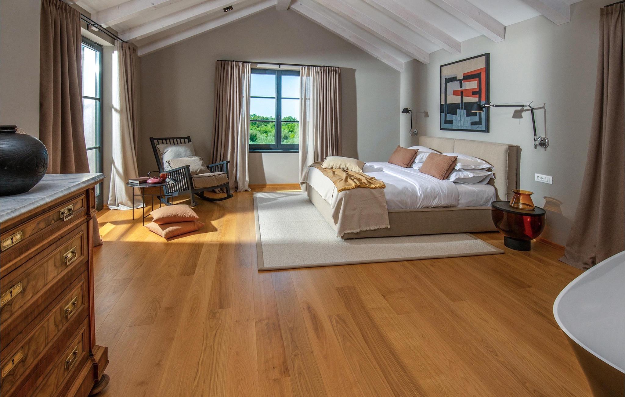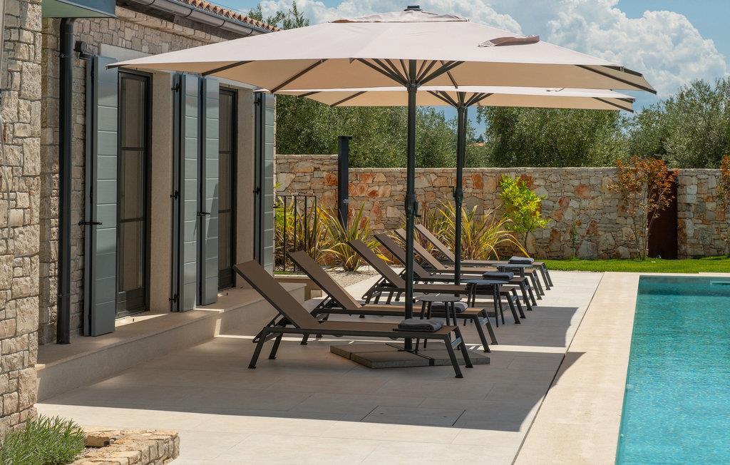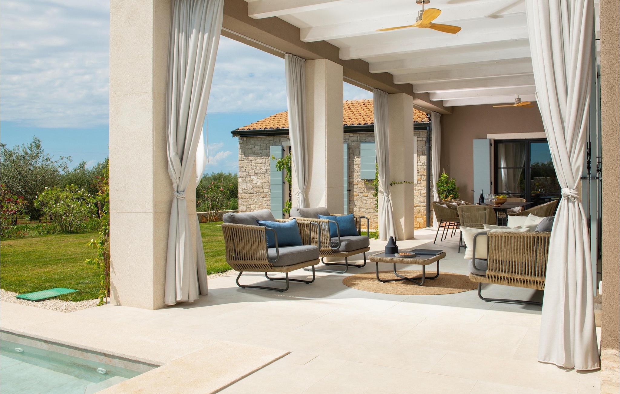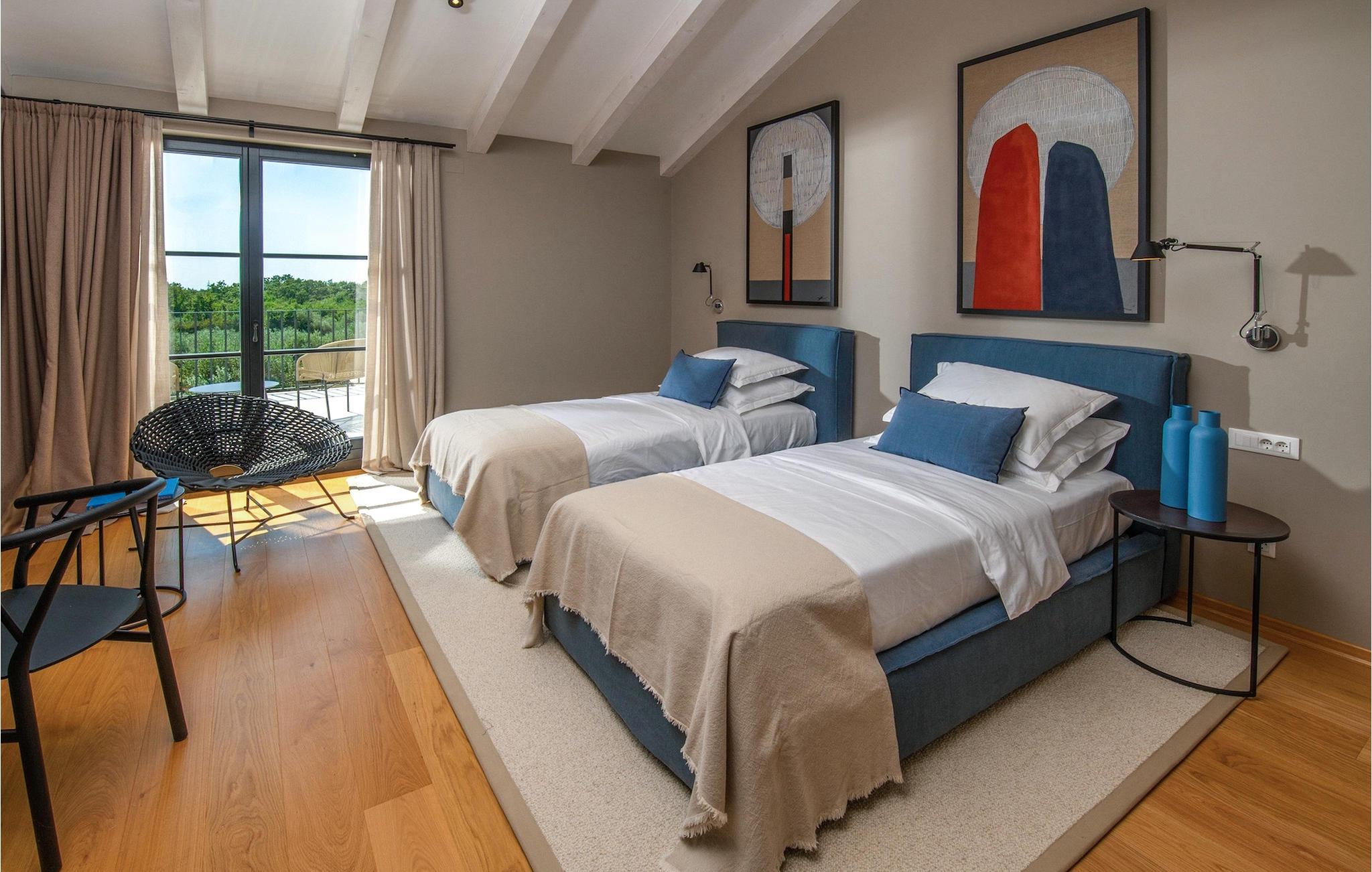 Villa Casa Cupra er en fantastisk familievilla, kun 3 km fra havet, nær Umag, i den nordlige del af Istriens vestkyst. Villaen er omgivet af gamle olivenlunde. En 80m2 pool er i hjertet af villaen, hvor du sandsynligvis vil tilbringe det meste af din ferie. Tag en dukkert i det turkisblå vand eller slap af på en af liggestolene, mens du læser en god bog. Den overdækkede terrasse byder på en hyggelig lounge og et spisebord med plads til 10 gæster og nyd lækre måltider, som du selv har tilberedt på kulgrillen. Hvis du kommer ind i villaens indre fra terrassen, vil du finde dig selv i den åbne opholdsstue med pejs, komfortable siddepladser, et spisebord og et fuldt udstyret moderne køkken samt et separat toilet. De 2 komfortable soveværelser på dette niveau har hver deres eget badeværelse. I det tilstødende hus er der sauna med bruser og desuden en hyggelig lounge, hvor du kan tilbringe hyggelige aftener med familie og venner. Første sal i hovedhuset har 3 skønne soveværelser med hver sit badeværelse. Det store soveværelse har endda et fritstående badekar på værelset. Det ideelle sted at tage en lille pause og stille og roligt nyde udsigten over landskabet med en kop te er den vidunderlige terrasse. Alt er smagfuldt indrettet med moderne og luksuriøse møbler og indrettet med stor sans for detaljer. Forkæl dig selv med noget helt særligt med et strejf af luksus og book den smukke Villa Casa Cupra!Villa Casa Cupra ligger i en stille landsby nord for Umag, kun 3 km væk fra den nærmeste strand og alle de faciliteter, som sådan en by byder på. Butikker, restauranter og caféer er alle inden for nem køreafstand. For alle sportselskere ligger en golfbane kun 2 km fra villaen. Kystbyen Umag, der ligger i det nordvestlige Istrien, er bedst kendt for sit Stella Maris Stadion, hvor den berømte ATP-tennisturnering finder sted. Denne smukke by har dog også meget at byde på i forhold til kultur, gastronomi og aktiviteter. Besøg Maria Himmelfartskirken eller bymuseet, nyd lokale specialiteter såsom fisk, vildt og trøfler, prøv den lækre olivenolie, besøg en af de smukke strande og skjulte bugter eller hav det sjovt med de sportsaktiviteter, du kan nyde her tilbydes. Nyd din ferie i Villa Casa Cupra og oplev regionens mangfoldighed.