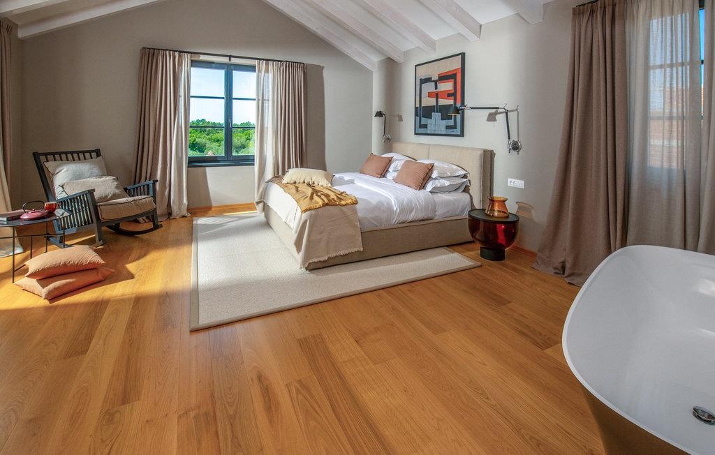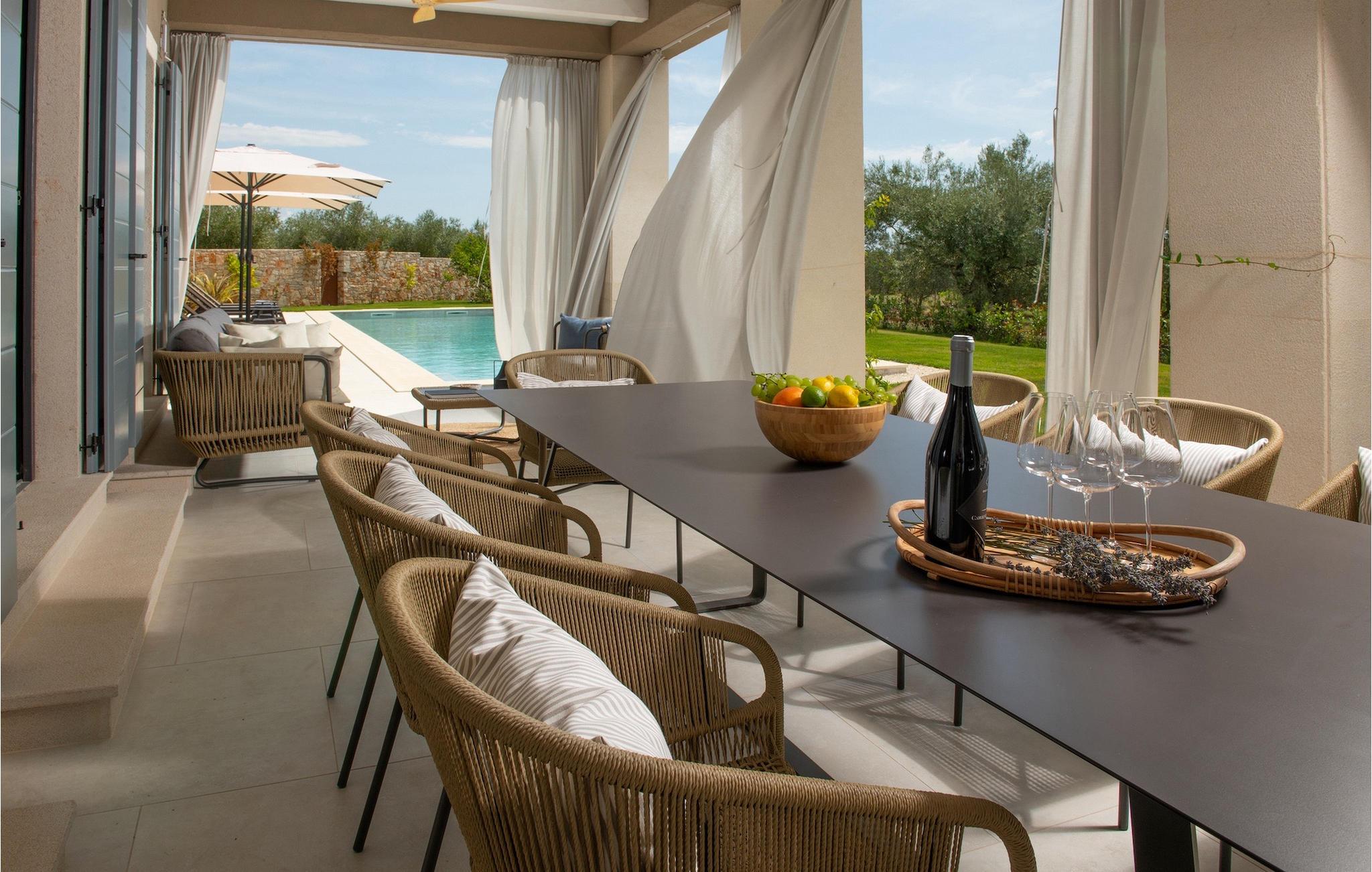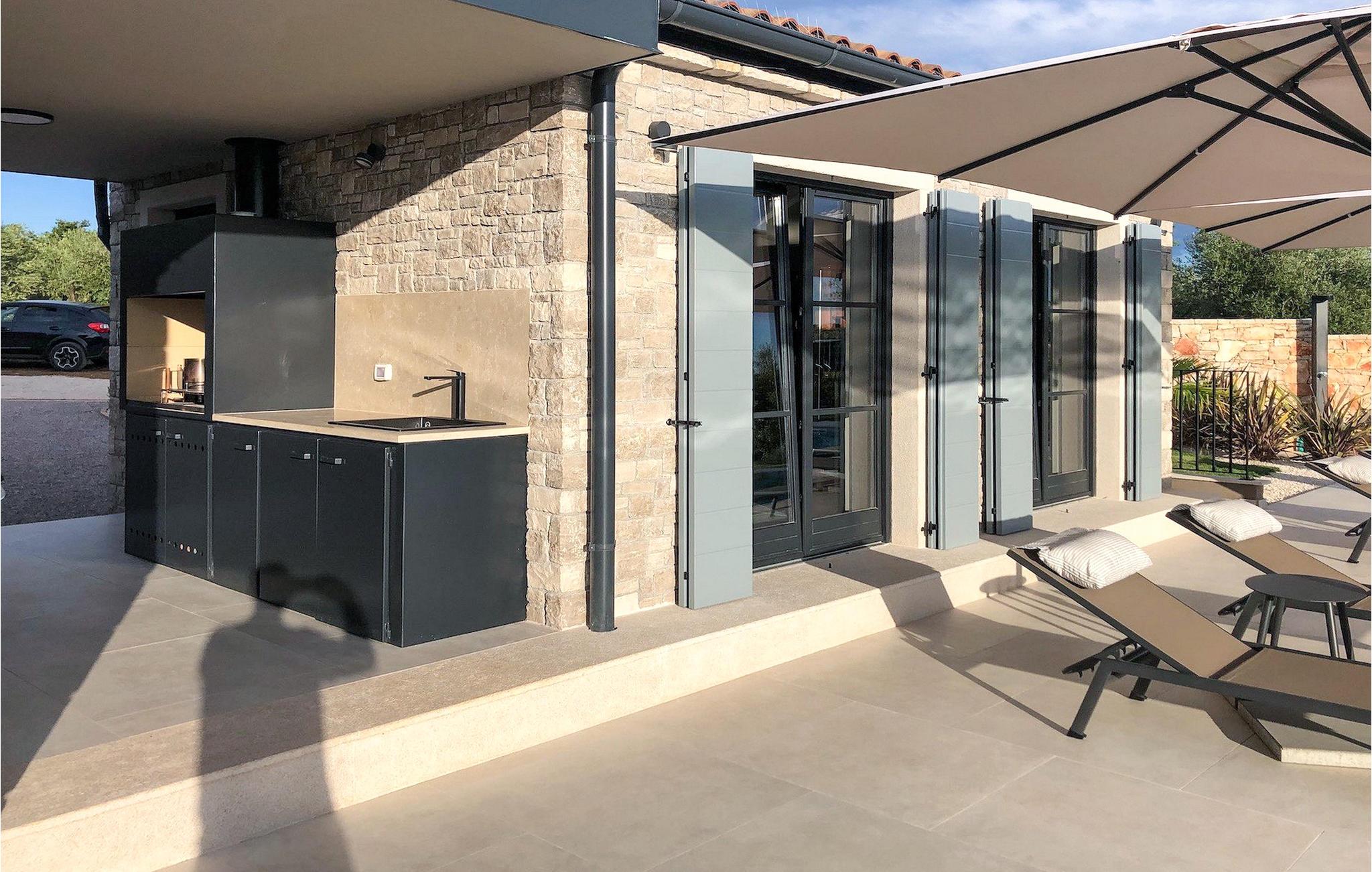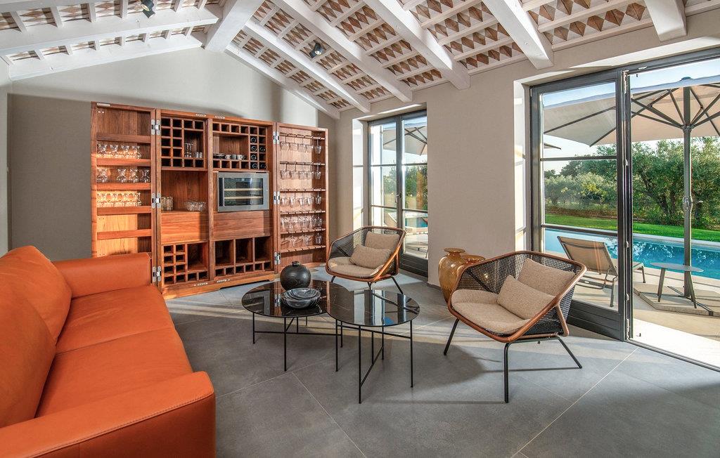 Villa Casa Cupra er en fantastisk familievilla, kun 3 km fra havet, nær Umag, i den nordlige del af Istriens vestkyst. Villaen er omgivet af gamle olivenlunde. En 80m2 pool er i hjertet af villaen, hvor du sandsynligvis vil tilbringe det meste af din ferie. Tag en dukkert i det turkisblå vand eller slap af på en af liggestolene, mens du læser en god bog. Den overdækkede terrasse byder på en hyggelig lounge og et spisebord med plads til 10 gæster og nyd lækre måltider, som du selv har tilberedt på kulgrillen. Hvis du kommer ind i villaens indre fra terrassen, vil du finde dig selv i den åbne opholdsstue med pejs, komfortable siddepladser, et spisebord og et fuldt udstyret moderne køkken samt et separat toilet. De 2 komfortable soveværelser på dette niveau har hver deres eget badeværelse. I det tilstødende hus er der sauna med bruser og desuden en hyggelig lounge, hvor du kan tilbringe hyggelige aftener med familie og venner. Første sal i hovedhuset har 3 skønne soveværelser med hver sit badeværelse. Det store soveværelse har endda et fritstående badekar på værelset. Det ideelle sted at tage en lille pause og stille og roligt nyde udsigten over landskabet med en kop te er den vidunderlige terrasse. Alt er smagfuldt indrettet med moderne og luksuriøse møbler og indrettet med stor sans for detaljer. Forkæl dig selv med noget helt særligt med et strejf af luksus og book den smukke Villa Casa Cupra!Villa Casa Cupra ligger i en stille landsby nord for Umag, kun 3 km væk fra den nærmeste strand og alle de faciliteter, som sådan en by byder på. Butikker, restauranter og caféer er alle inden for nem køreafstand. For alle sportselskere ligger en golfbane kun 2 km fra villaen. Kystbyen Umag, der ligger i det nordvestlige Istrien, er bedst kendt for sit Stella Maris Stadion, hvor den berømte ATP-tennisturnering finder sted. Denne smukke by har dog også meget at byde på i forhold til kultur, gastronomi og aktiviteter. Besøg Maria Himmelfartskirken eller bymuseet, nyd lokale specialiteter såsom fisk, vildt og trøfler, prøv den lækre olivenolie, besøg en af de smukke strande og skjulte bugter eller hav det sjovt med de sportsaktiviteter, du kan nyde her tilbydes. Nyd din ferie i Villa Casa Cupra og oplev regionens mangfoldighed.