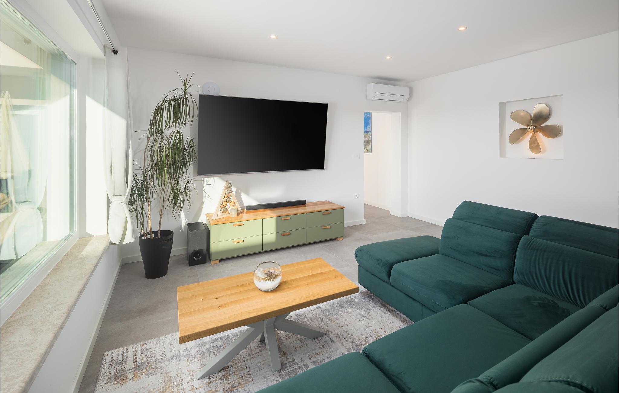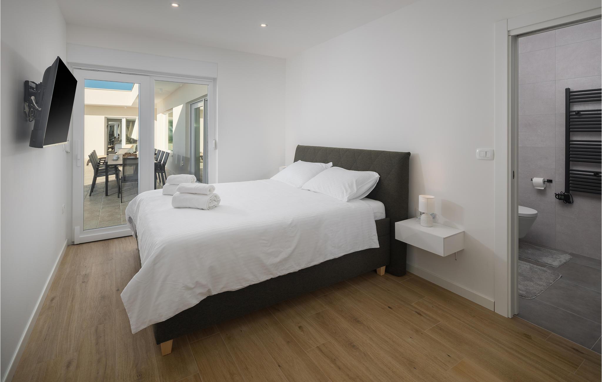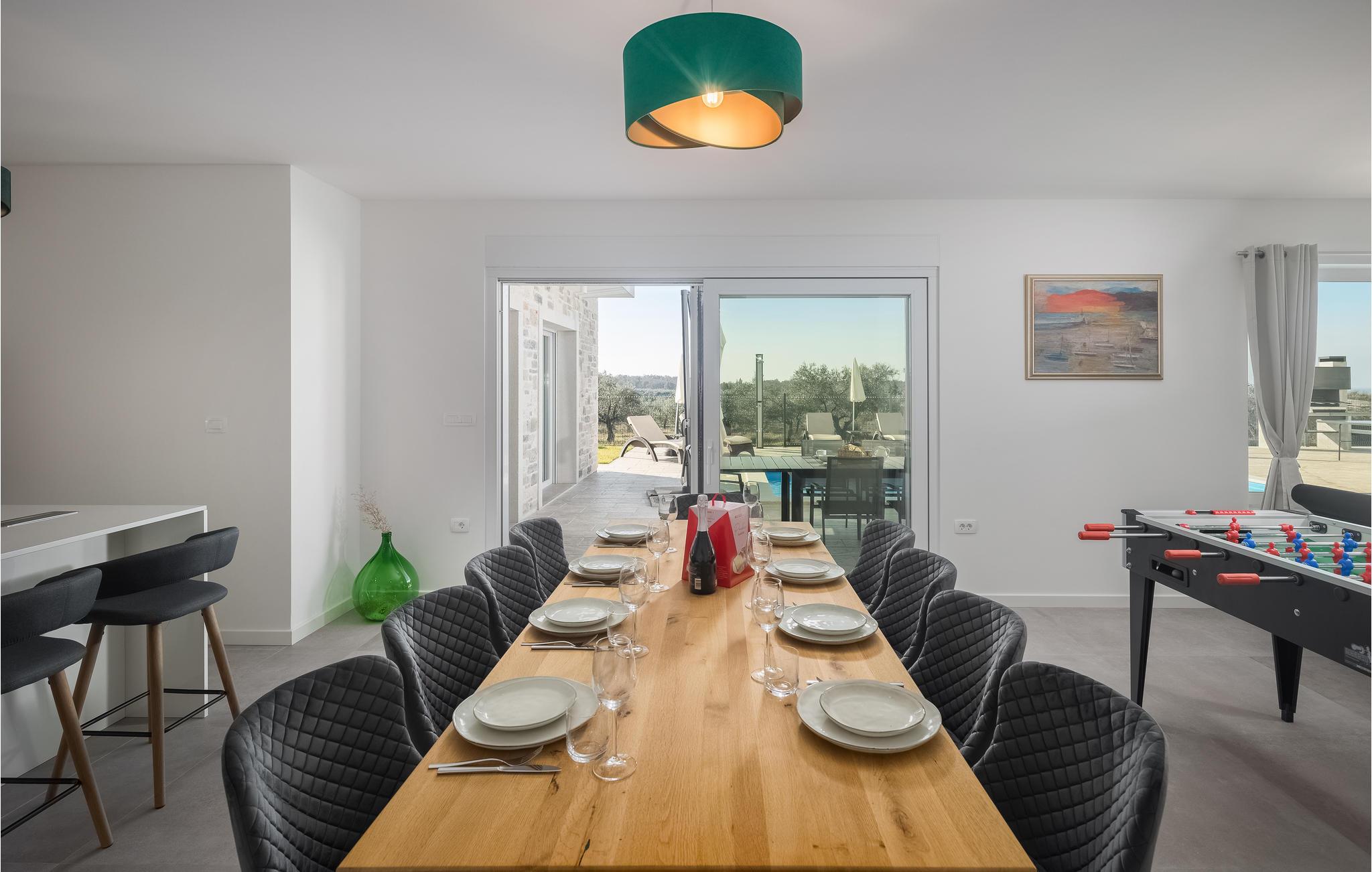 I en rolig del af landsbyen Babici venter jer dette store og lyse feriehus på en indhegnet grund, der gør den helt ideel for børnefamilier. I kan ikke undgå at blive inspireret af den indbydende atmosfære og den stilfulde indretning, der byder på pejs og plads til masser af sjov, leg og hygge. Den store og åbne stue bliver omdrejningspunktet for jeres feriehverdag, mens de private soveværelser med hver sit badeværelse giver jer privatlig og afslapning.