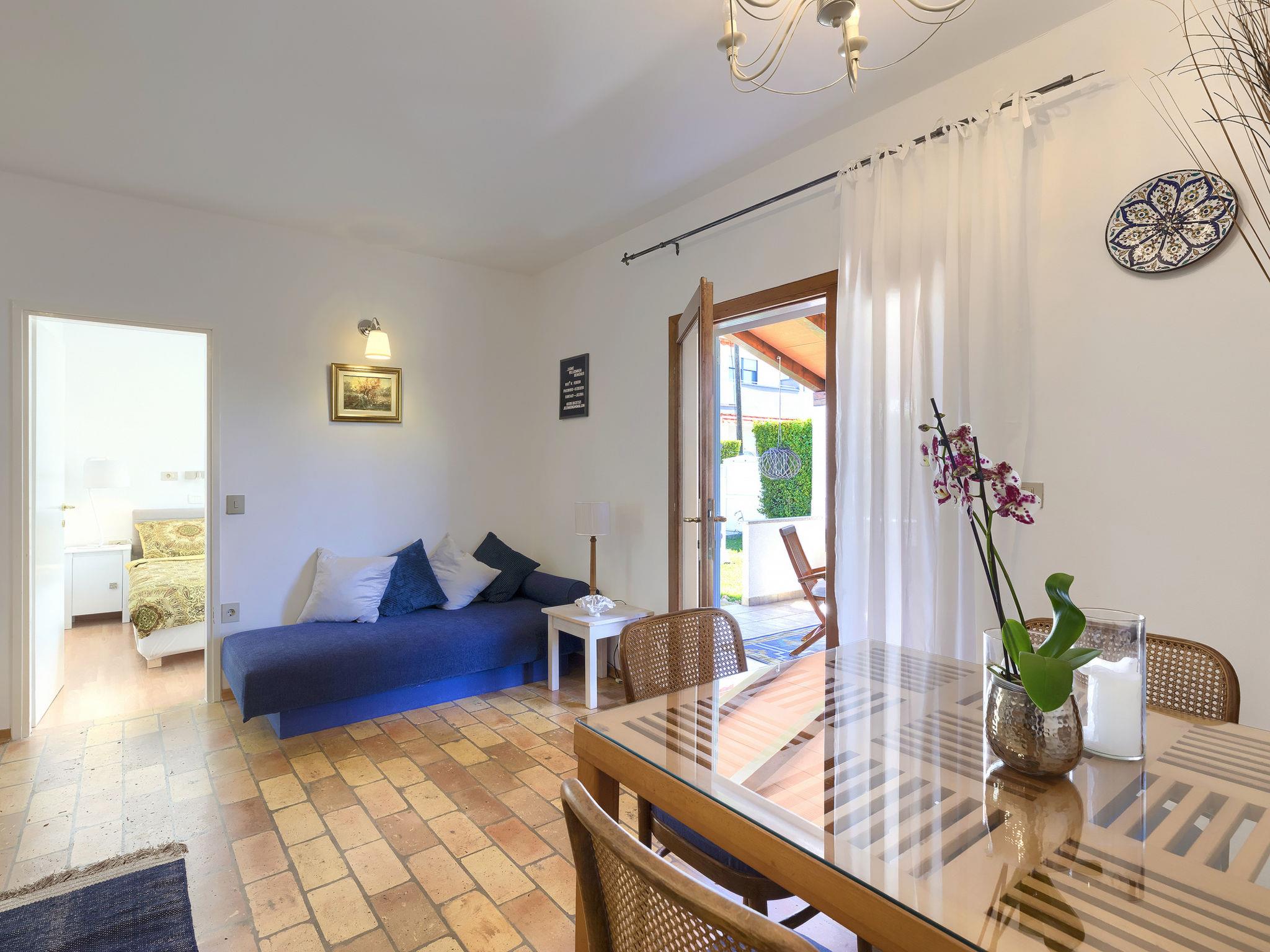 Beautiful semi-detached house "Punta". In the district of Punta 600 m from the centre of Umag, in a quiet, sunny position, 70 m from the sea, 300 m from the beach, in a cul-de-sac. Private: property 350 m2 (fenced), garden with lawn. Garden furniture, barbecue. In the house: internet access. Parking at the house on the premises. Shop 200 m, restaurant 50 m, bus stop 2 km, railway station 33 km, pebble beach, rocky beach, public bathing area 300 m. Golf course (18 hole) 9 km, tennis 500 m, sports centre 800 m. Groups of teenagers on request only.