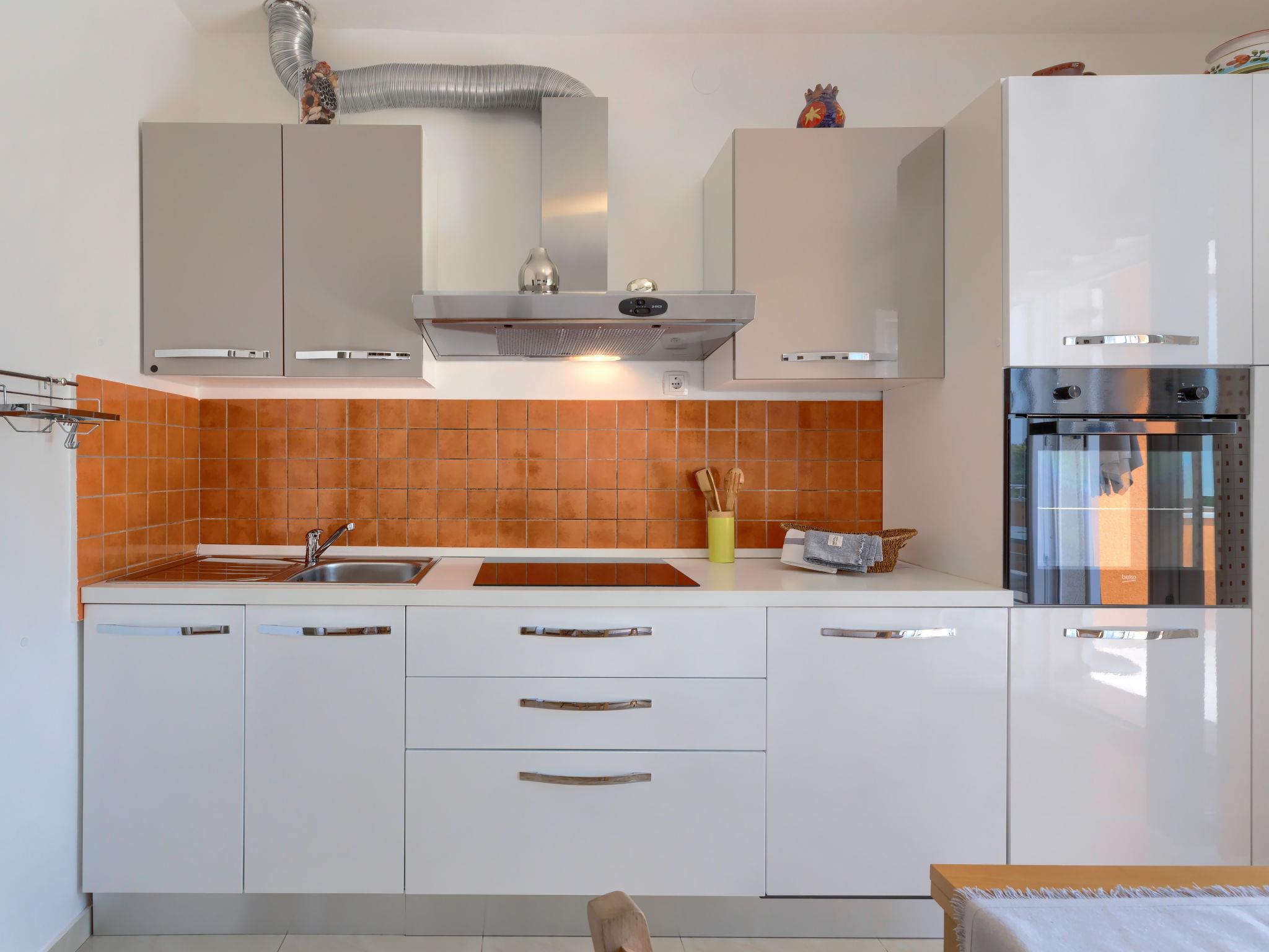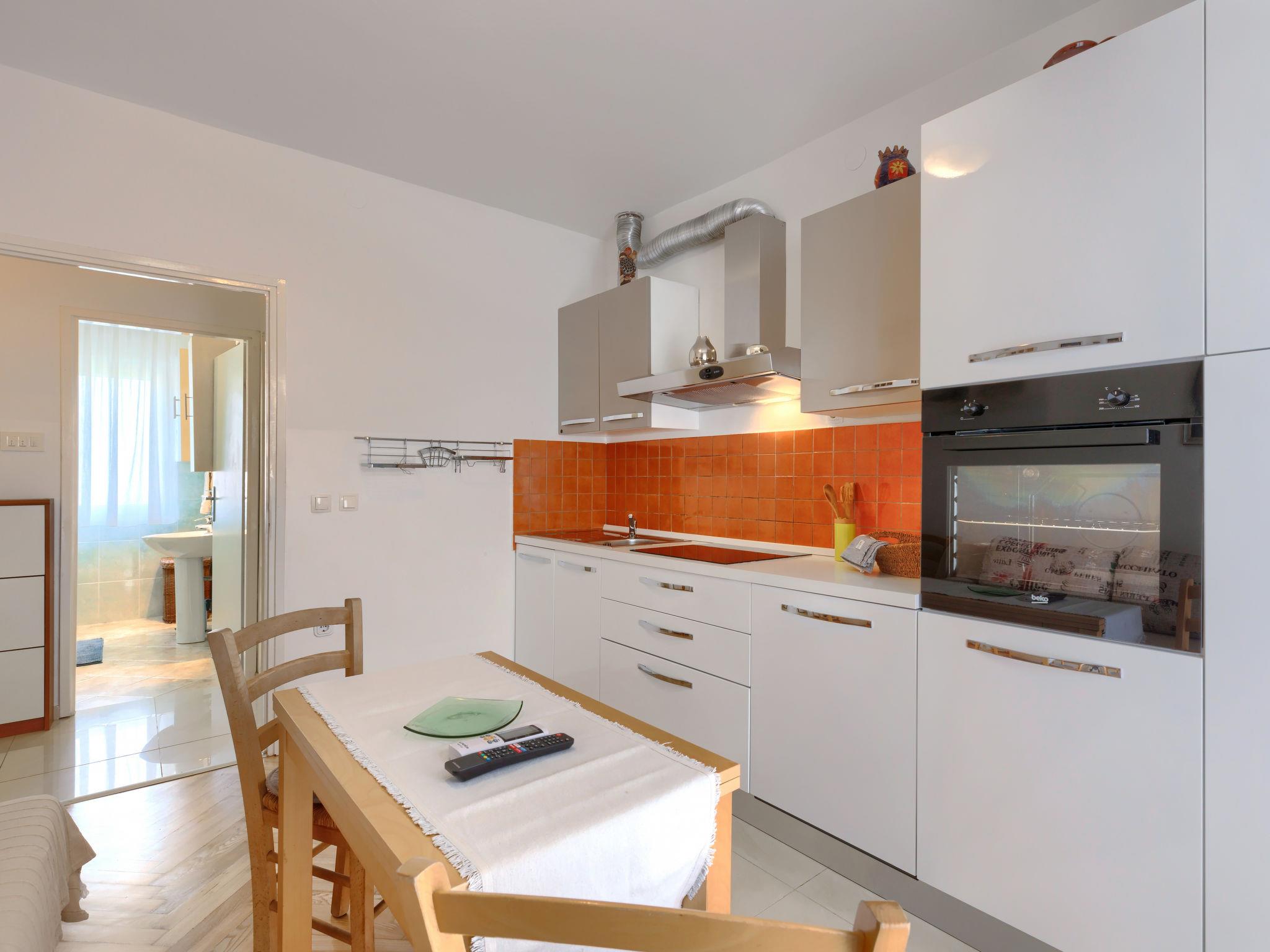 2-room apartment 32 m2 on 1st floor. Living/dining room 13 m2 with satellite TV (flat screen), air conditioning. Exit to the terrace. 1 room with 1 french bed (160 cm, length 200 cm). Exit to the terrace. Open kitchen (4 hot plates, oven, dishwasher, microwave, freezer, electric coffee machine). Shower/WC. Heating (extra). Terrace 20 m2. Terrace furniture. Facilities: Internet (WiFi, free). 1 small pet/ dog allowed.