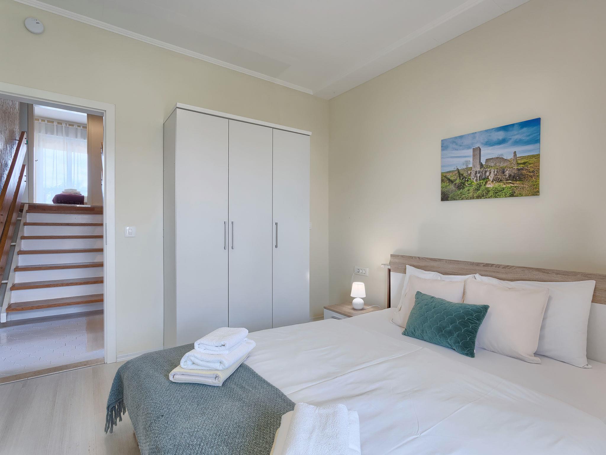 8-room house 390 m2 on 3 levels. Tasteful furnishings: living room 40 m2 with open-hearth fireplace (only for decoration), satellite TV (flat screen), air conditioning. Exit to the terrace. 1 room with 1 french bed (160 cm, length 200 cm). Exit to the terrace. Dining room with air conditioning. Exit to the terrace. Open kitchen (oven, dishwasher, 4 ceramic glass hob hotplates, microwave, freezer, electric coffee machine). Shower/WC. On the lower ground floor: 2 rooms, each room with 1 french bed (160 cm, length 200 cm). Exit to the balcony. 1 room with 1 x 2 bunk beds (90 cm, length 200 cm). Kitchen (oven, dishwasher, 4 ceramic glass hob hotplates, microwave, freezer, electric coffee machine). 2 showers/WC. Upper floor: entrance hall with air conditioning. 1 room with 1 french bed (160 cm, length 200 cm), satellite TV (flat screen). Exit to the balcony. 1 room with 1 french bed (160 cm, length 200 cm). Exit to the balcony. 1 room with 2 beds (100 cm, length 210 cm). Exit to the balcony. Bath/bidet/WC, bath/shower/WC. Heating (extra). 3 balconies 6 m2, terrace 15 m2, roofed, terrace 20 m2, roofed. Terrace furniture, deck chairs. View of the swimming pool and the garden. Facilities: Internet (WiFi, free). It is necessary to announce 7 days in advance if the heating (extra) is required.