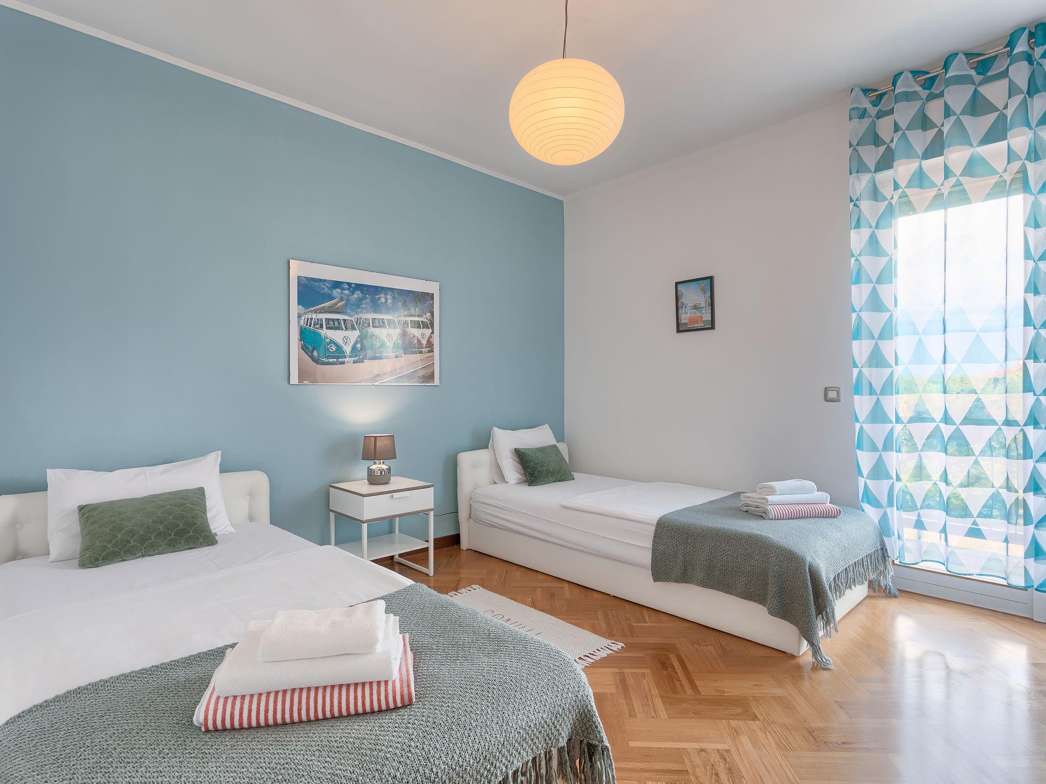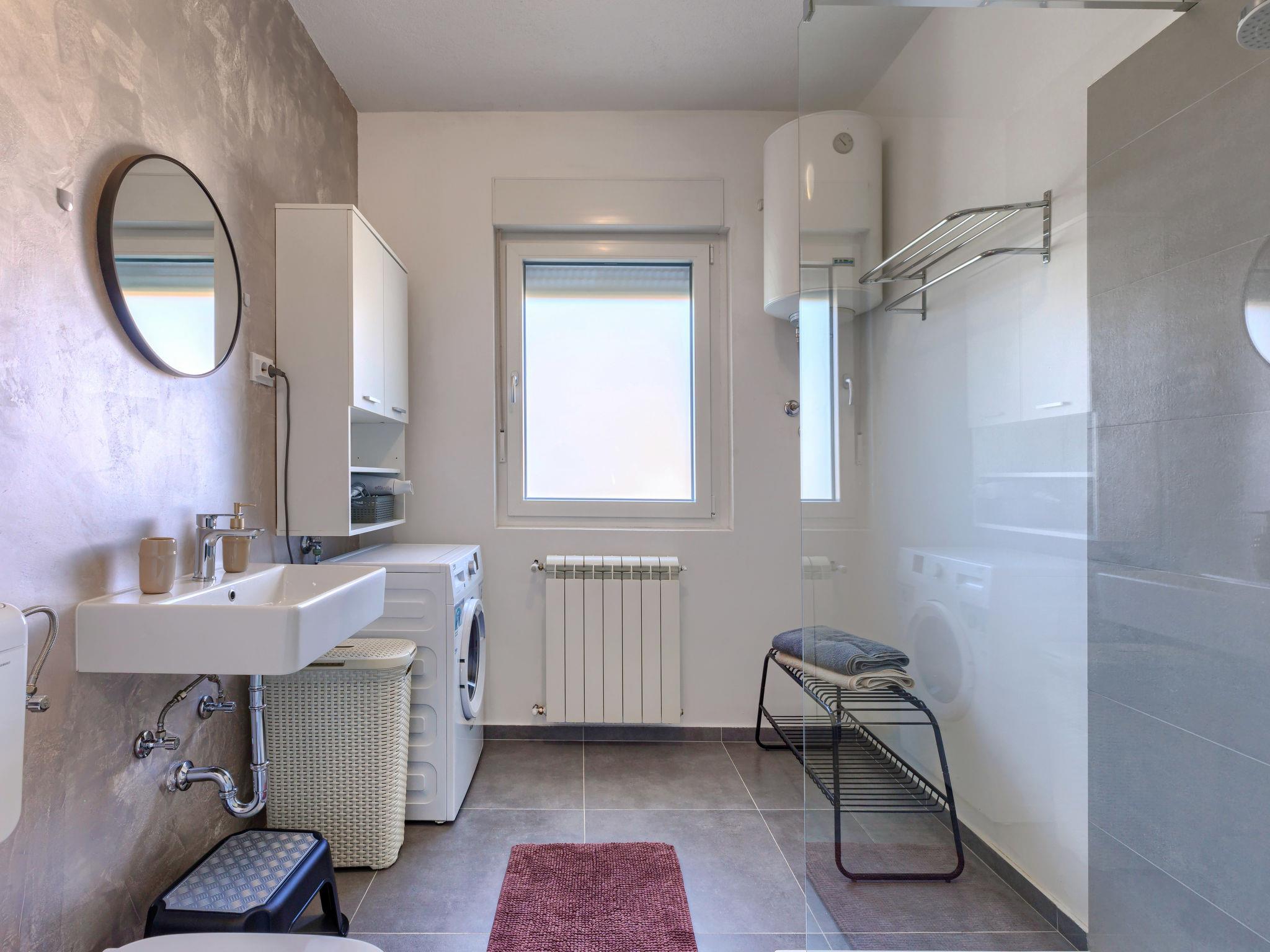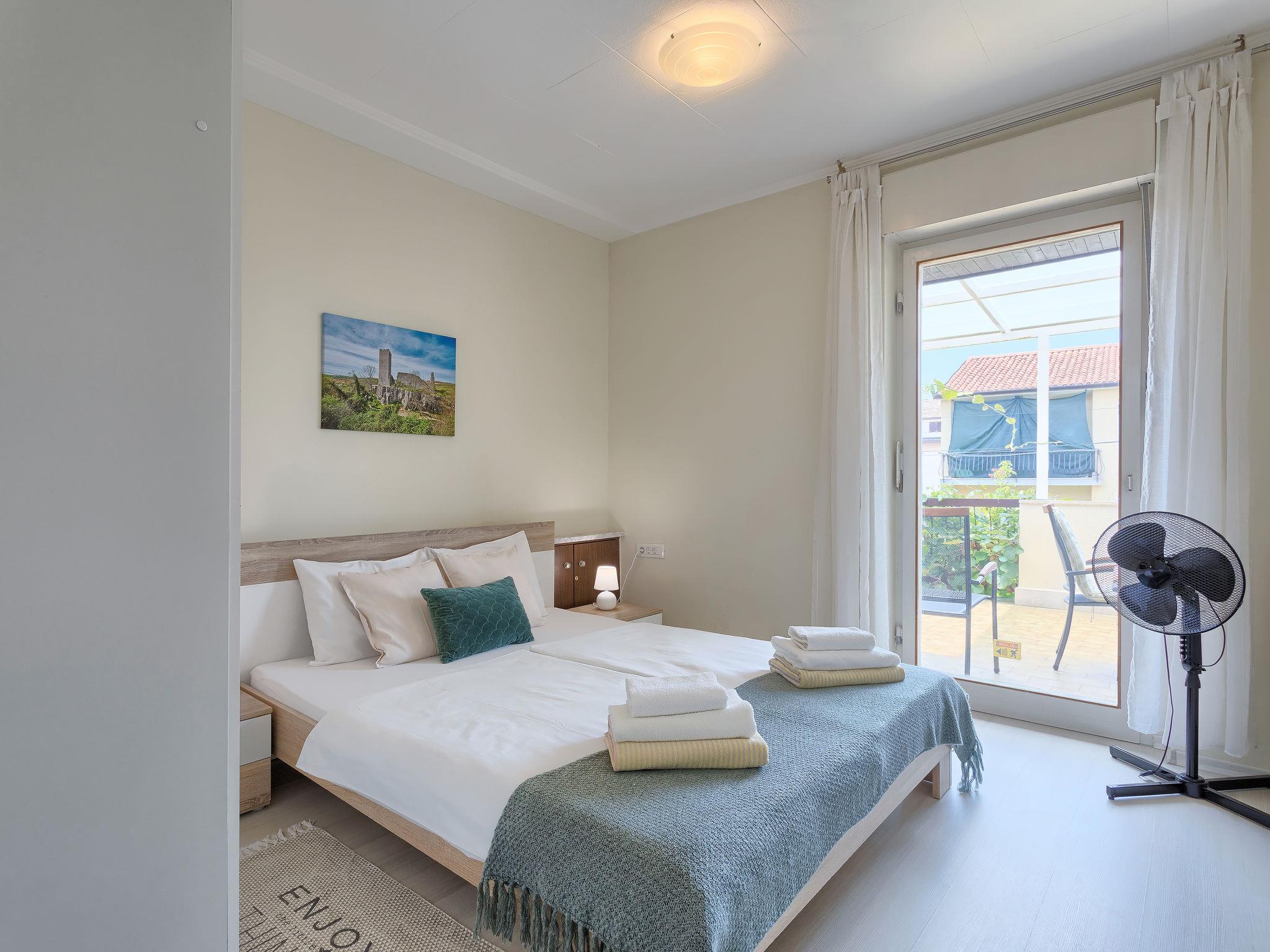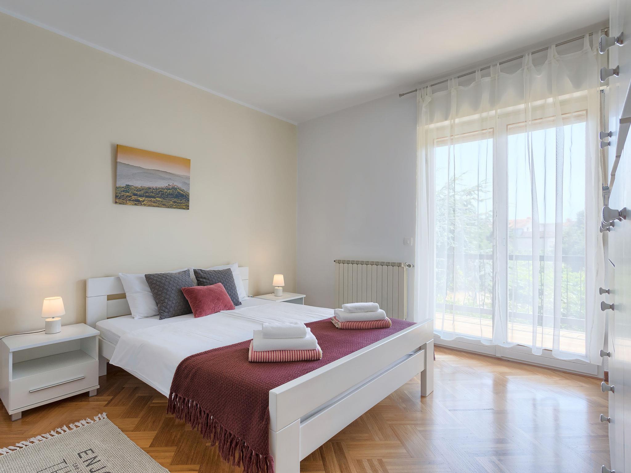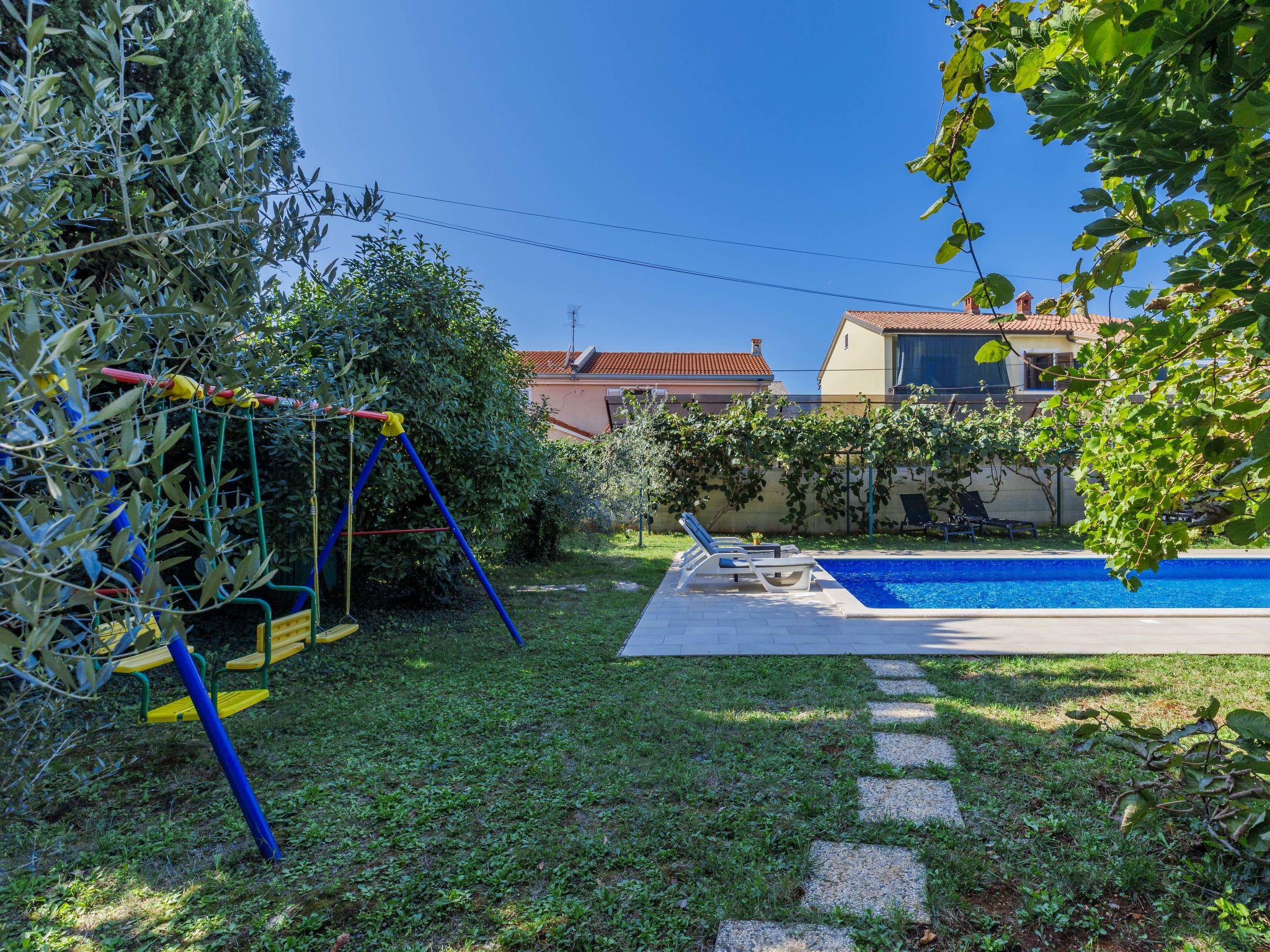 Beautiful single-family house "Villa Toni", 3 storeys. 500 m from the centre of Umag, in a quiet, sunny position, 800 m from the sea, 800 m from the beach. Private: property 1'200 m2 (fenced), beautiful garden with lawn and wildlife garden, swimming pool angular (10 x 4 m, depth 140 cm, seasonal availability: 27.Apr. - 12.Oct.) with internal staircase and salt-electrolysis pool-cleaning system. WC in the pool area, outdoor shower, terrace (30 m2), garden furniture, barbecue. In the house: internet access, table tennis, storage room for bicycles, washing machine. Parking (for 3 cars) at the house on the premises. Shop, restaurant 200 m, bus stop 1.4 km, sandy beach, pebble beach 800 m. Golf course (18 hole) 10 km, tennis 1 km, walking paths from the house 100 m, cycle lane 150 m. The owner does not accept any youth groups. Neighbourhood highly sensitive to noise. Quietness and good behaviour expected. Outdoor kitchen (4 ceramic glass hob hotplates). Organizing a party is not allowed.
