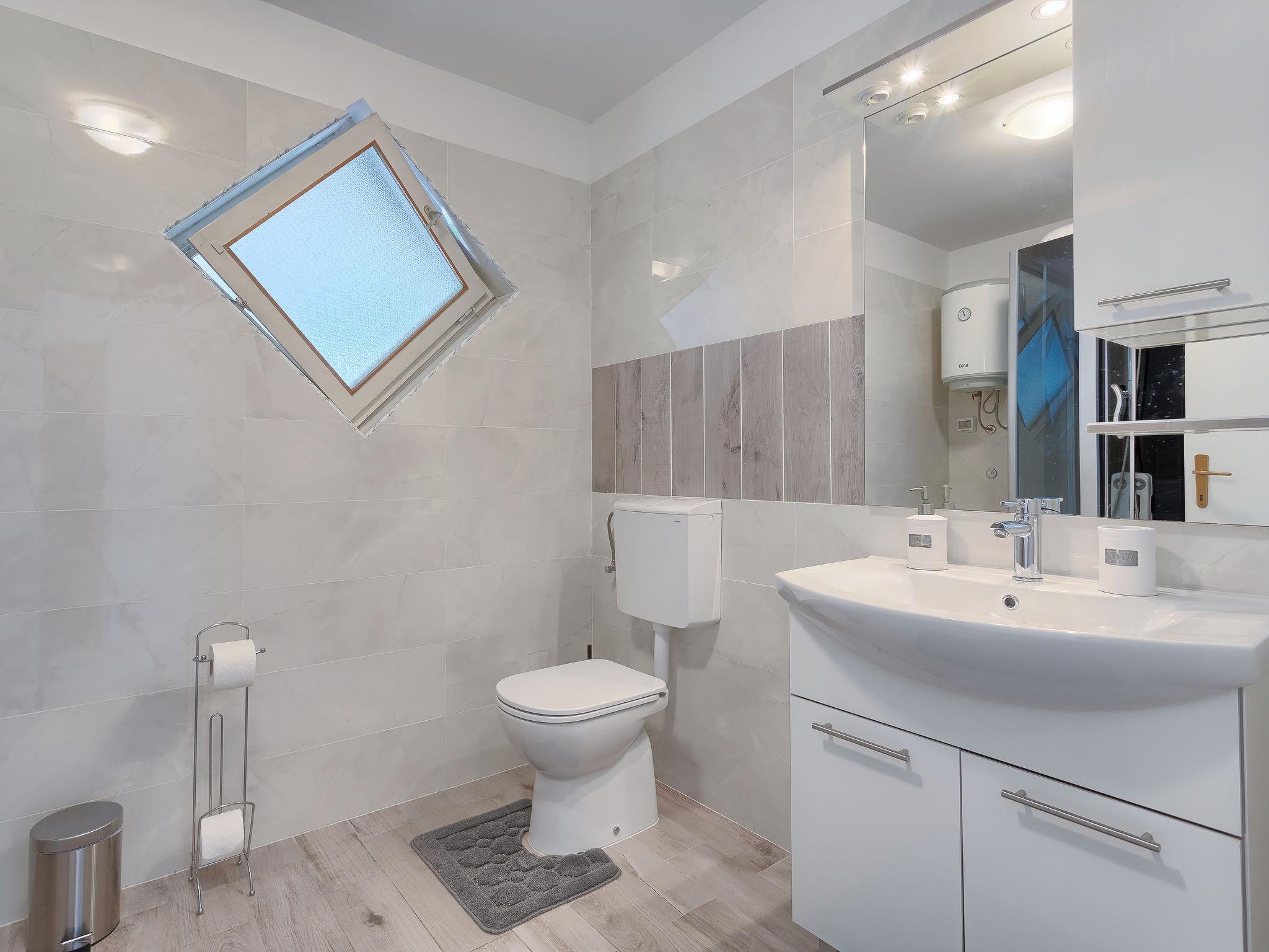 Beautiful single-family house "Villa Toni", 2 storeys. 500 m from the centre of Umag, in a quiet, sunny position, 800 m from the sea, from the beach. Private: property 1'200 m2 (fenced), beautiful garden with lawn and wildlife garden, swimming pool angular (10 x 4 m, depth 140 cm, seasonal availability: 27.Apr. - 12.Oct.) with internal staircase and salt-electrolysis pool-cleaning system. WC in the pool area, outdoor shower, terrace (30 m2), garden furniture, barbecue. In the house: internet access, table tennis, storage room for bicycles, washing machine. Parking (for 3 cars) at the house on the premises. Shop, restaurant 200 m, bus stop 1.4 km, sandy beach, pebble beach 800 m. Golf course (18 hole) 10 km, tennis 1 km, walking paths from the house 100 m, cycle lane 150 m. The owner does not accept any youth groups. Neighbourhood highly sensitive to noise. Quietness and good behaviour expected. Ground floor is closed and not occupied. Outdoor kitchen (4 ceramic glass hob hotplates). Organizing a party is not allowed.