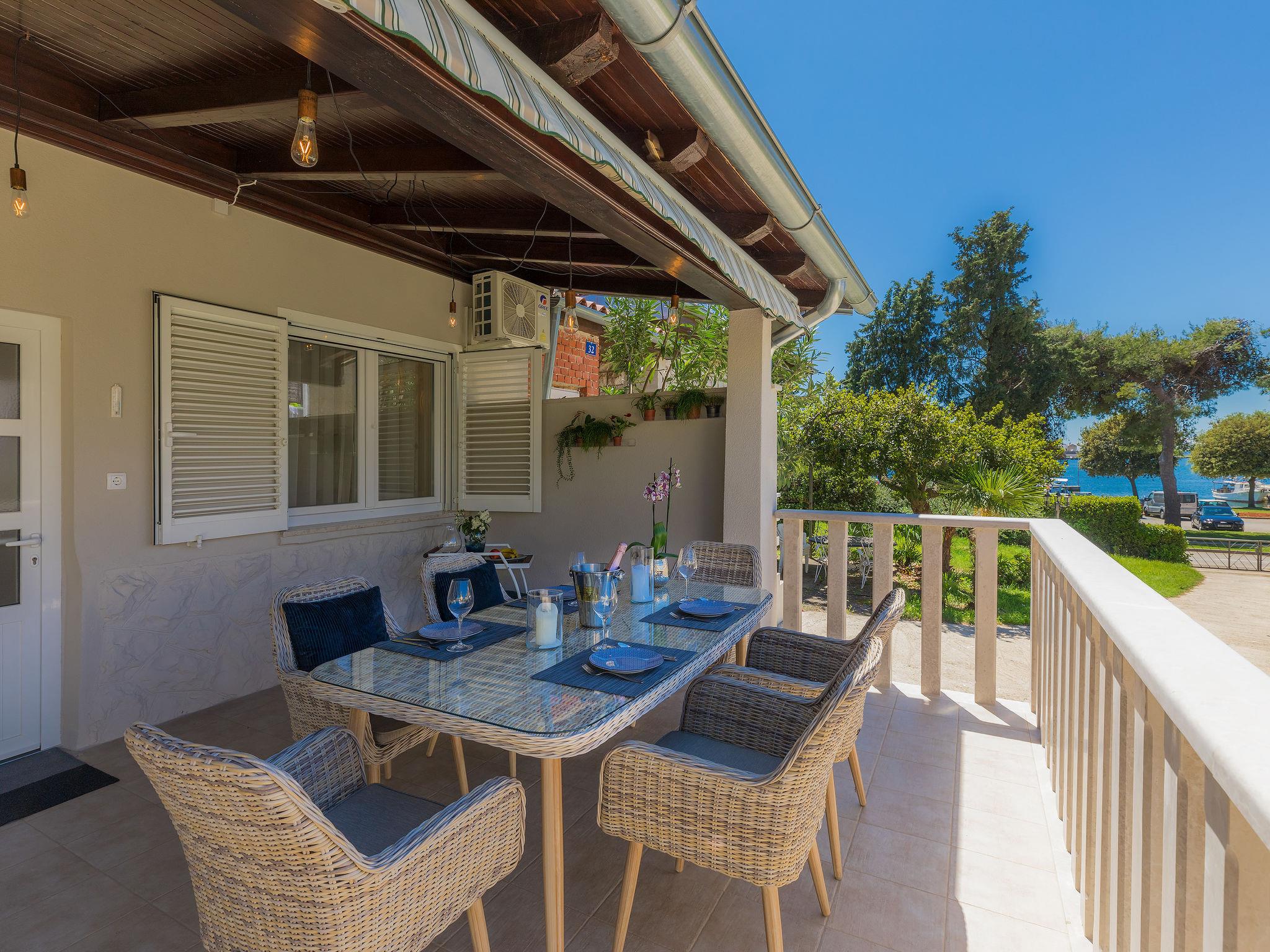 Beautiful semi-detached house "Punta 2", renovated in 2021. In the district of Punta 600 m from the centre of Umag, in a quiet, sunny position, 70 m from the sea, 300 m from the beach, in a cul-de-sac. Private: property 350 m2 (fenced), garden with lawn. Outdoor shower, garden furniture, barbecue. In the house: internet access, storage room for bicycles, washing machine. Parking at the house on the premises. Shop 200 m, restaurant 50 m, bus stop 2 km, railway station 33 km, pebble beach, rocky beach, public bathing area 300 m. Golf course (18 hole) 9 km, tennis 500 m, sports centre 800 m. Groups of teenagers on request only.