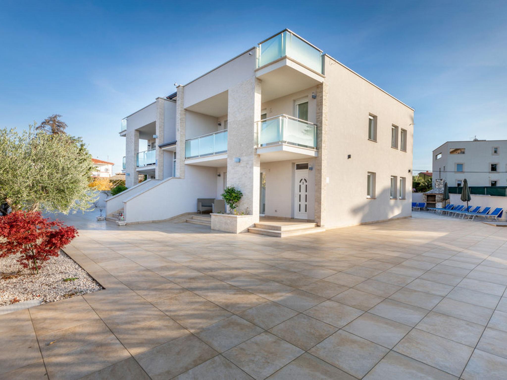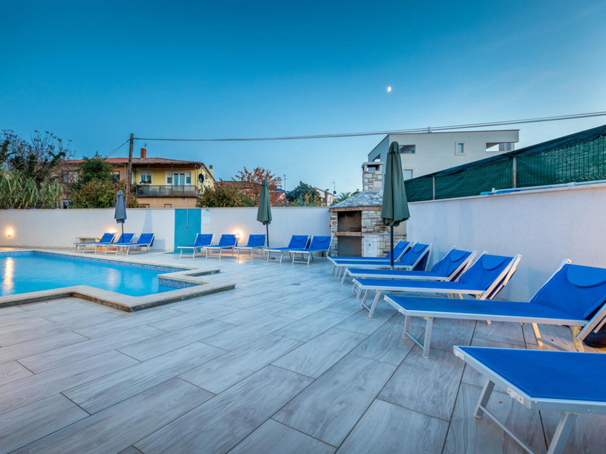 Single-family house "Villa Ricardo", 2 storeys. 500 m from the centre of Umag, in a sunny position, 50 m from the sea, 1 km from the beach, in a cul-de-sac. Private: property 463 m2 with wildlife garden and trees, swimming pool angular (5 x 10 m, depth 150 cm, seasonal availability: 01.May. - 15.Oct.) with internal staircase. Outdoor shower, garden furniture, barbecue. In the house: internet access, washing machine. Parking (for 2 cars) at the house on the premises. Shop, supermarket, restaurant 300 m, bus stop 200 m, sandy beach 1 km pebble beach 1 km, rocky beach 1 km, public bathing area 1 km, concrete beach 1 km. Marina 200 m, tennis 800 m, walking paths from the house 20 m. Groups of teenagers on request only. The house consists of 4 apartments rented as one unit.