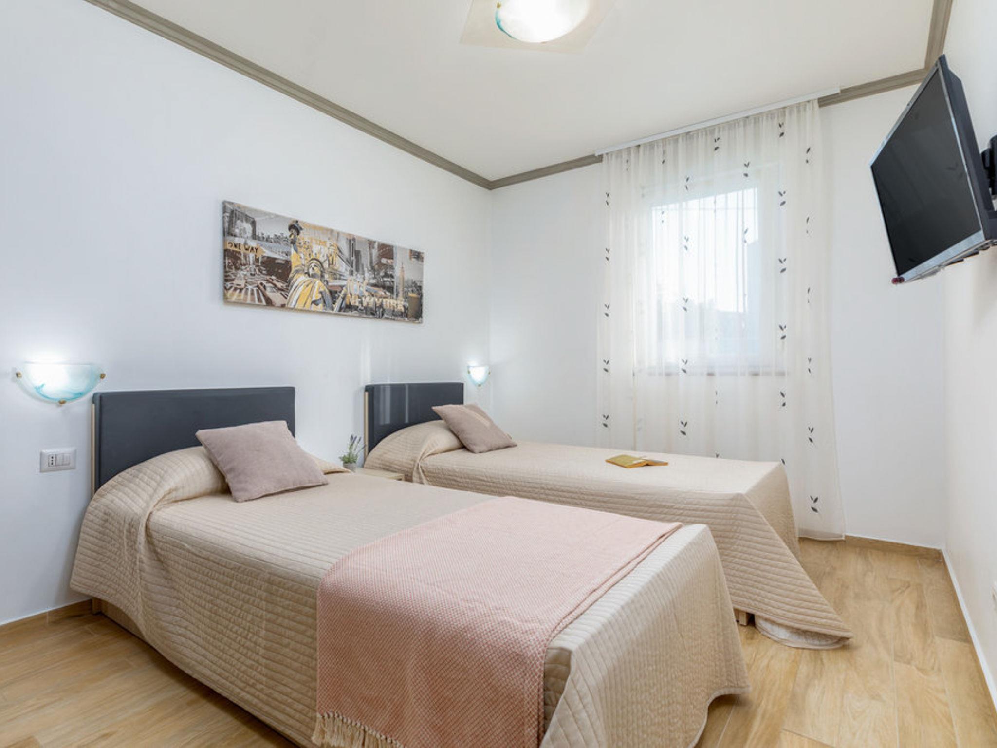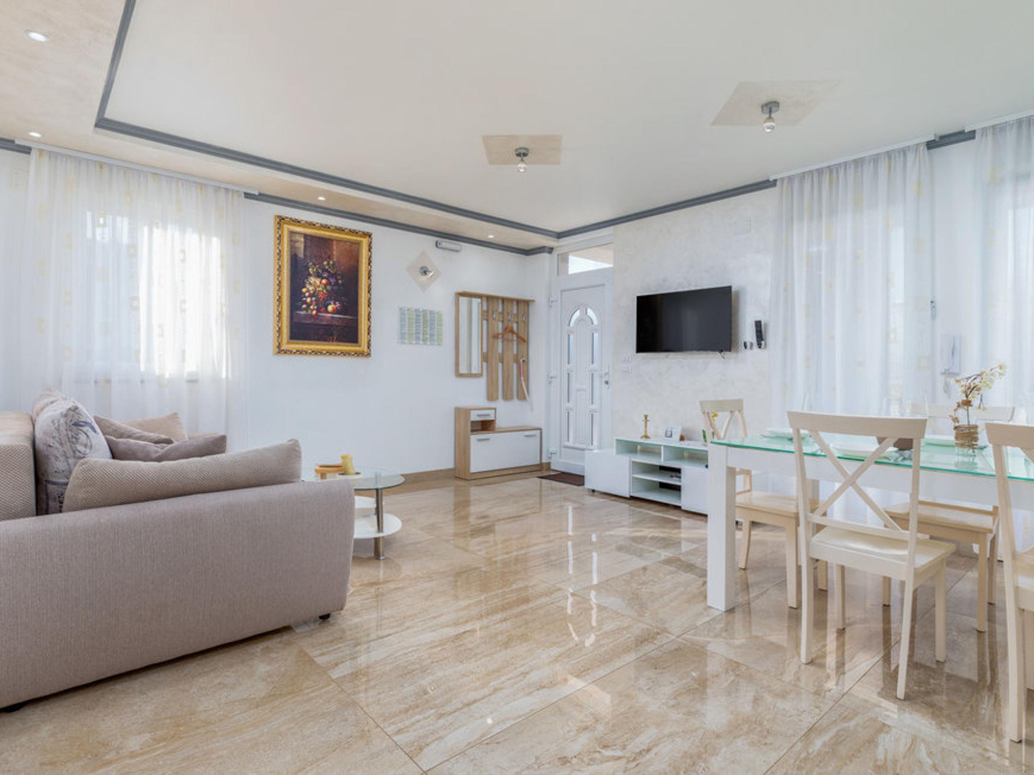 8-room house 300 m2 on 2 levels. Living/dining room with kitchen corner, satellite TV and air conditioning. Exit to the terrace. 2 rooms, each room with 1 double bed (2 x 90 cm, length 200 cm), TV and air conditioning. Living/dining room with TV and air conditioning. Exit to the terrace. 2 rooms, each room with 1 double bed (2 x 90 cm, length 200 cm), TV and air conditioning. Open kitchen (1 hot plate, oven, 3 gas rings, toaster, kettle, microwave). 2 showers/WC. Upper floor: living/dining room with kitchen corner, TV and air conditioning. Exit to the terrace. 2 rooms, each room with 1 double bed (2 x 90 cm, length 200 cm), TV and air conditioning. Living/dining room with TV and air conditioning. Exit to the terrace. 2 rooms, each room with 1 double bed (2 x 90 cm, length 200 cm), TV and air conditioning. Open kitchen (1 hot plate, oven, 3 gas rings, toaster, kettle, microwave, electric coffee machine). 2 showers/WC. 4 terraces 15 m2, covered. Deck chairs. View of the sea. Facilities: Internet (WiFi, free). Suitable for families. 2 apartments on the ground floor, each with living/dining room, kitchen and 2 bedrooms. 2 apartments on the first floor, each with living/dining room, kitchen and 2 bedrooms.