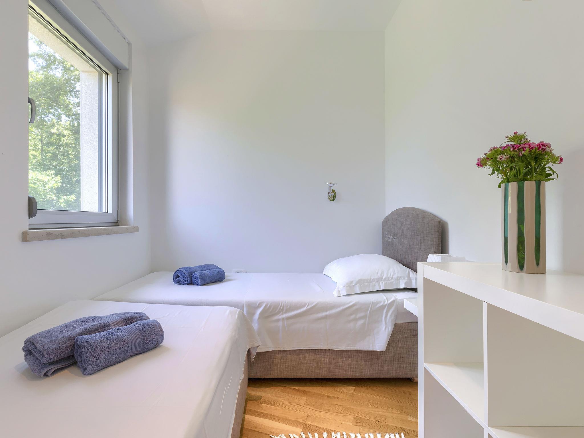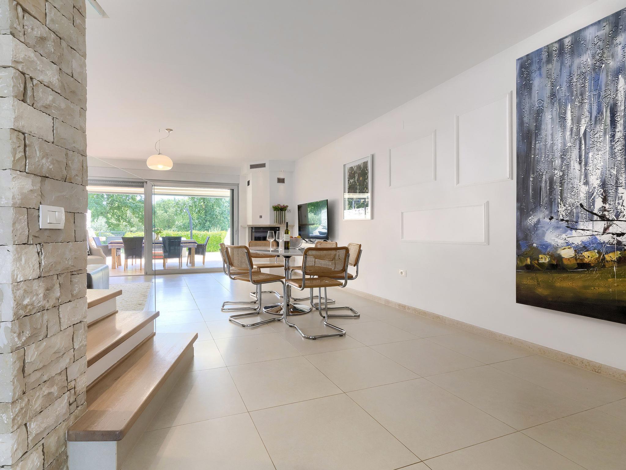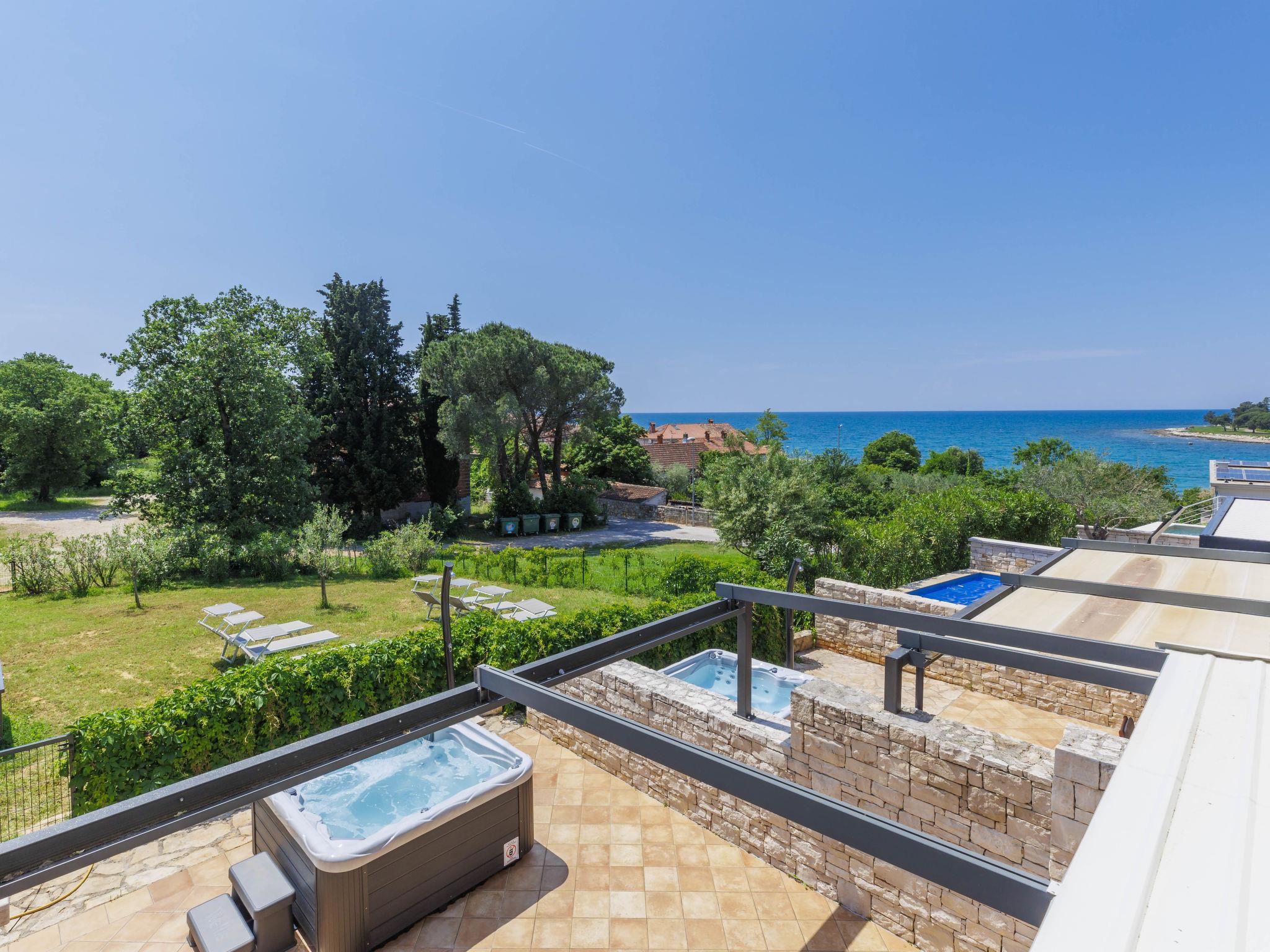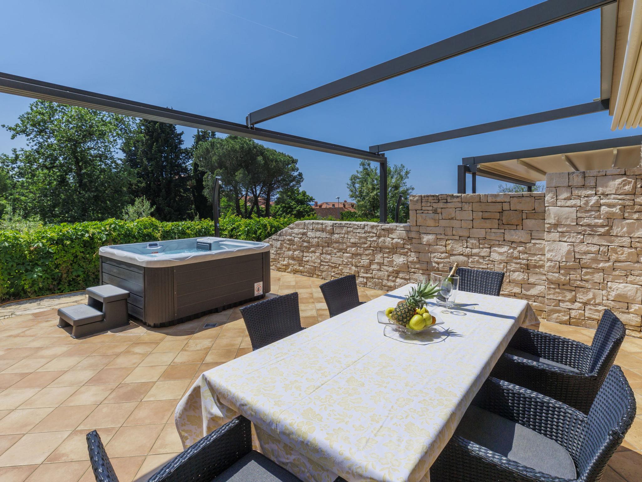 Modern, beautiful terraced house "Sv. Ivan 2", 2 storeys. In the hamlet Sv. Ivan 4 km from the centre of Umag, in a quiet, sunny position, from the sea, 100 m from the beach. For shared use: property 500 m2 (fenced) with lawn. Private: swimming pool (above ground) heated (2 x 2 m, depth 50 cm, seasonal availability: 13.Apr. - 12.Oct.). Barbecue. In the house: internet access. Parking. Shop 200 m, restaurant 100 m, bus stop 4 km, railway station 35 km, rocky beach 100 m. Golf course (18 hole) 15 km, tennis, cycle lane 100 m. Groups of teenagers on request only. Swimming pool for private use is a hot tub for 4 persons. Additional change of water in the hot tub (extra). In the same terraced house there is house ref. HR2200.450.1 for rent.