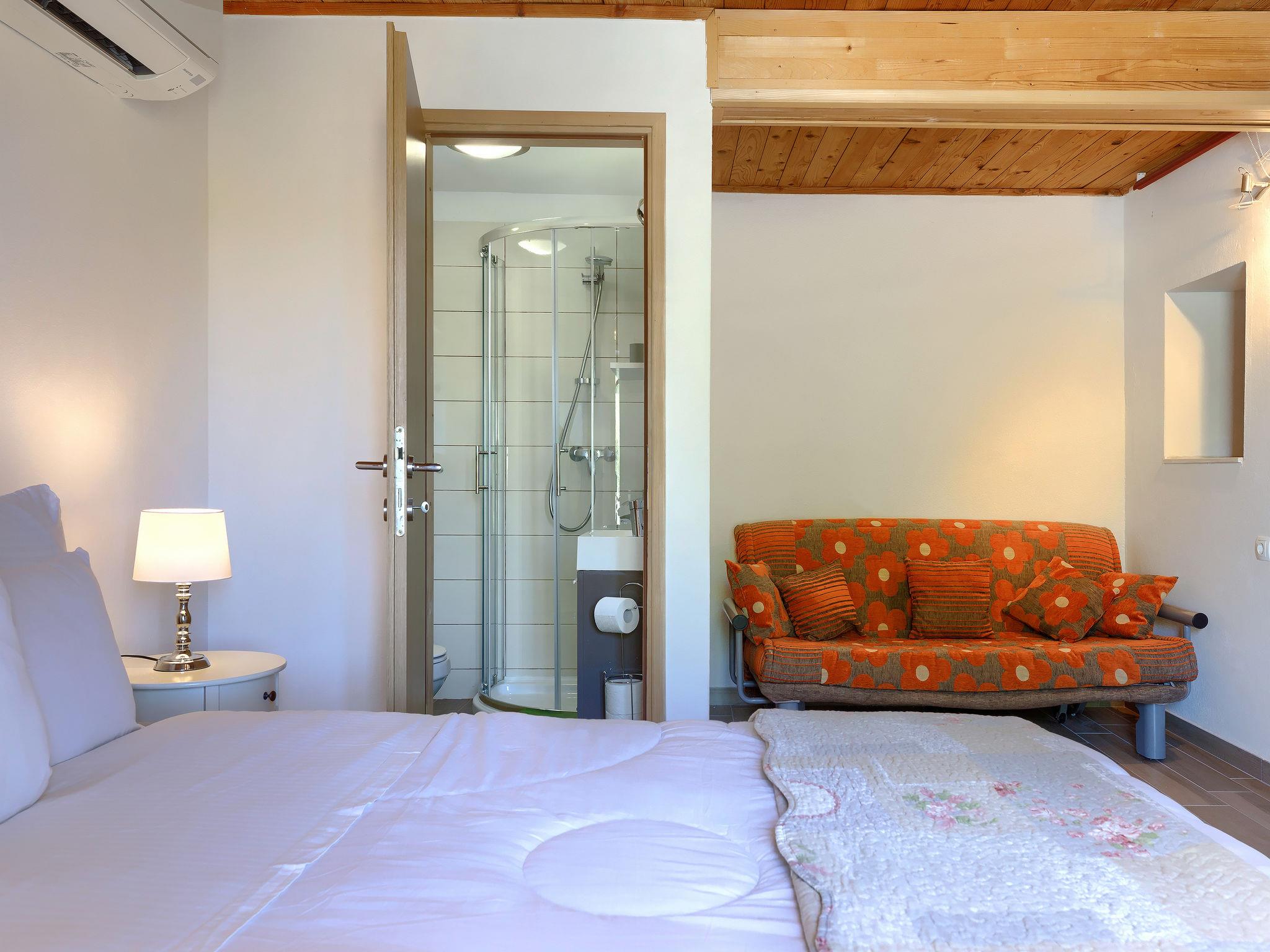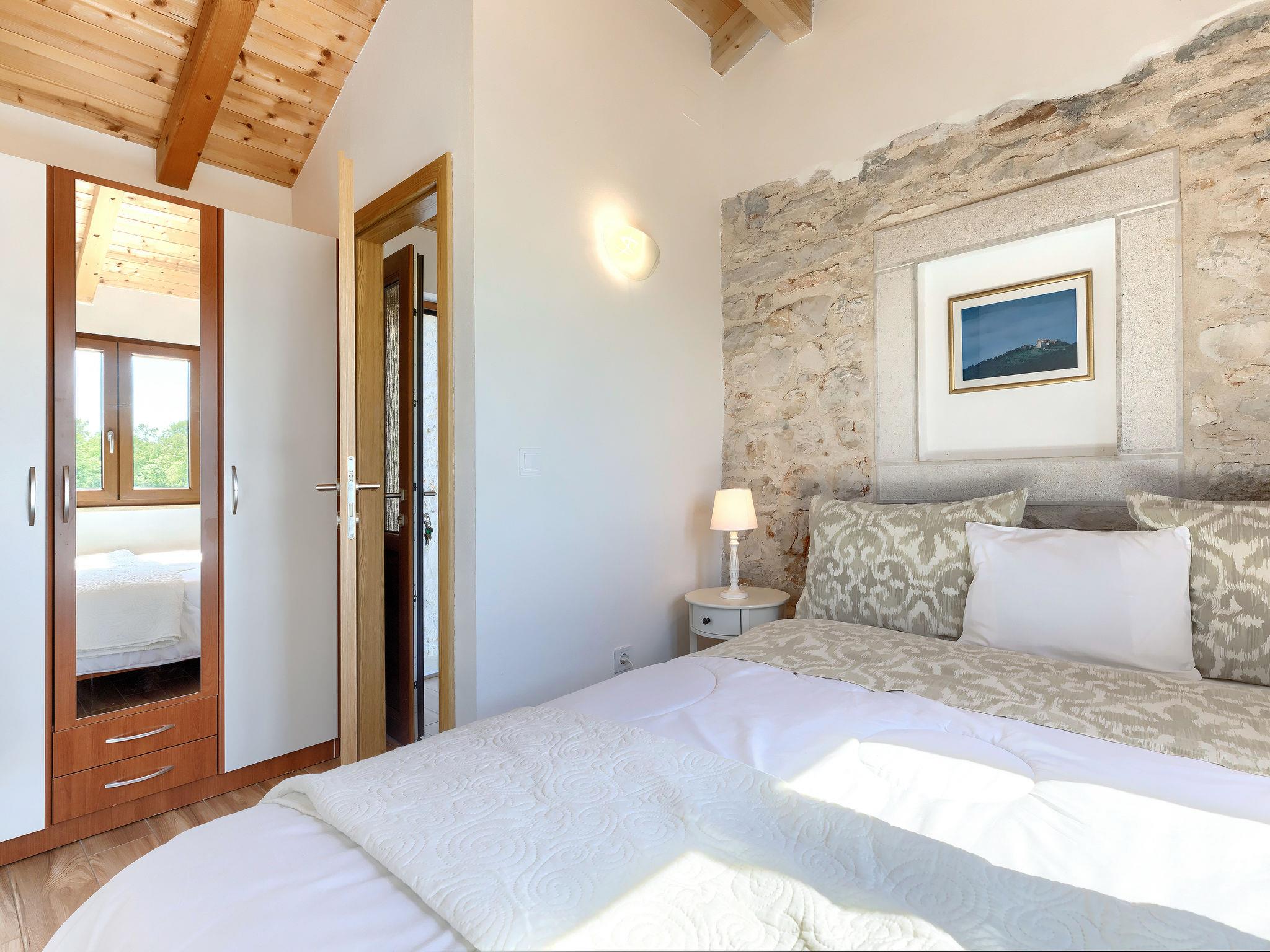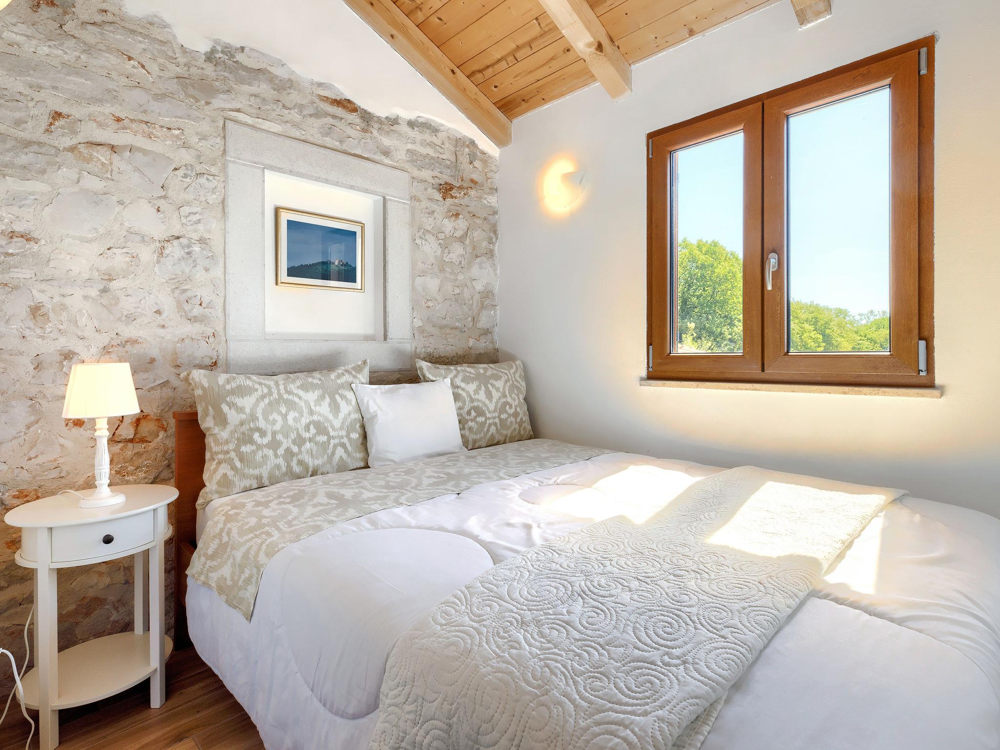 Old, child friendly country house "Marinko", 2 storeys, surrounded by trees. In the hamlet Kušci 6 km from the centre of Umag, outside the resort, in a quiet position, 1.5 km from the sea, 1.5 km from the beach, in the countryside. Private: property 800 m2 (fenced) with lawn, swimming pool angular (7 x 3 m, depth 140 cm, seasonal availability: 15.Apr. - 01.Oct.) with internal staircase. Terrace (30 m2), garden furniture, barbecue (swing). In the house: washing machine. Motor access to the house (250 m via unmade road). Parking at the house on the premises. Shop 1.5 km, restaurant 1.5 km, bus stop 2.2 km, pebble beach 1.5 km, rocky beach 1.5 km.