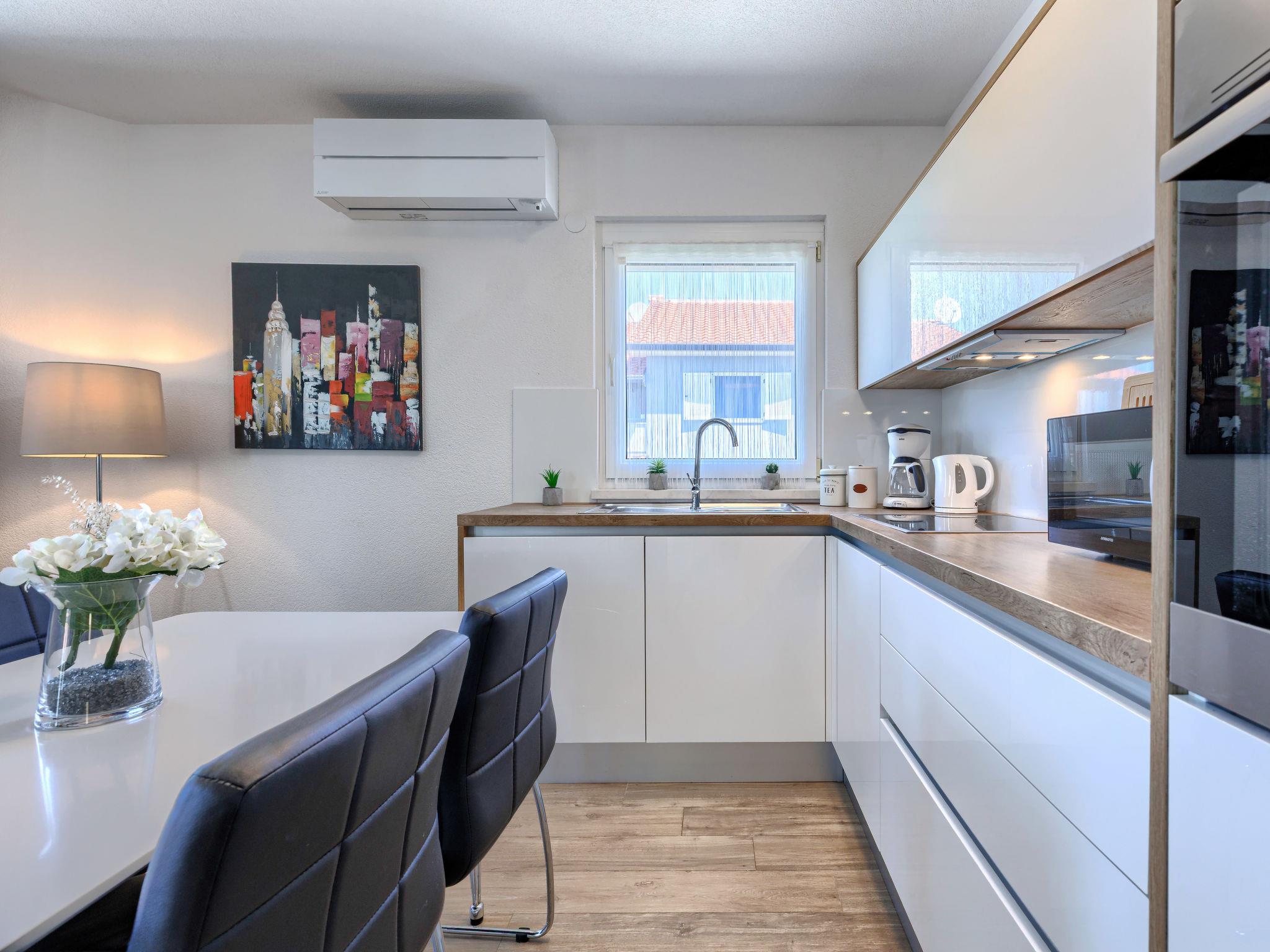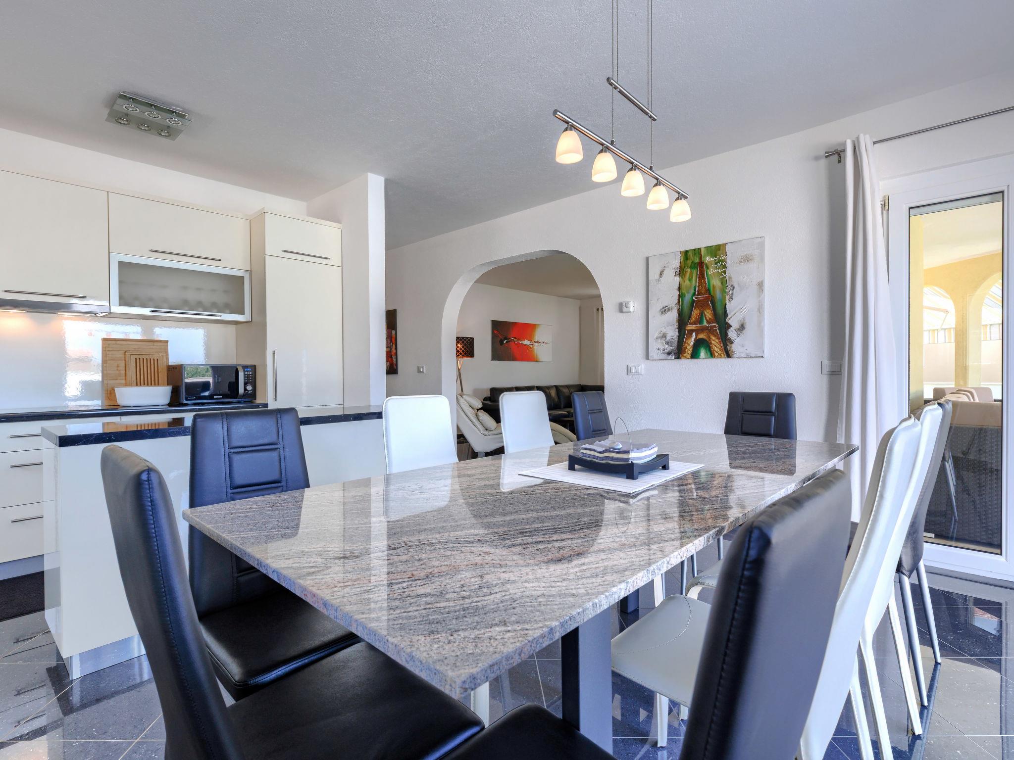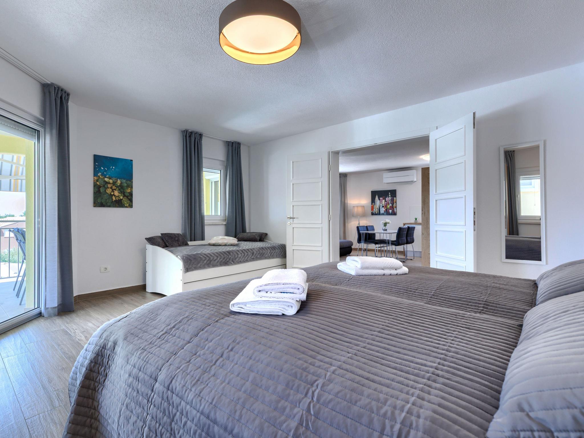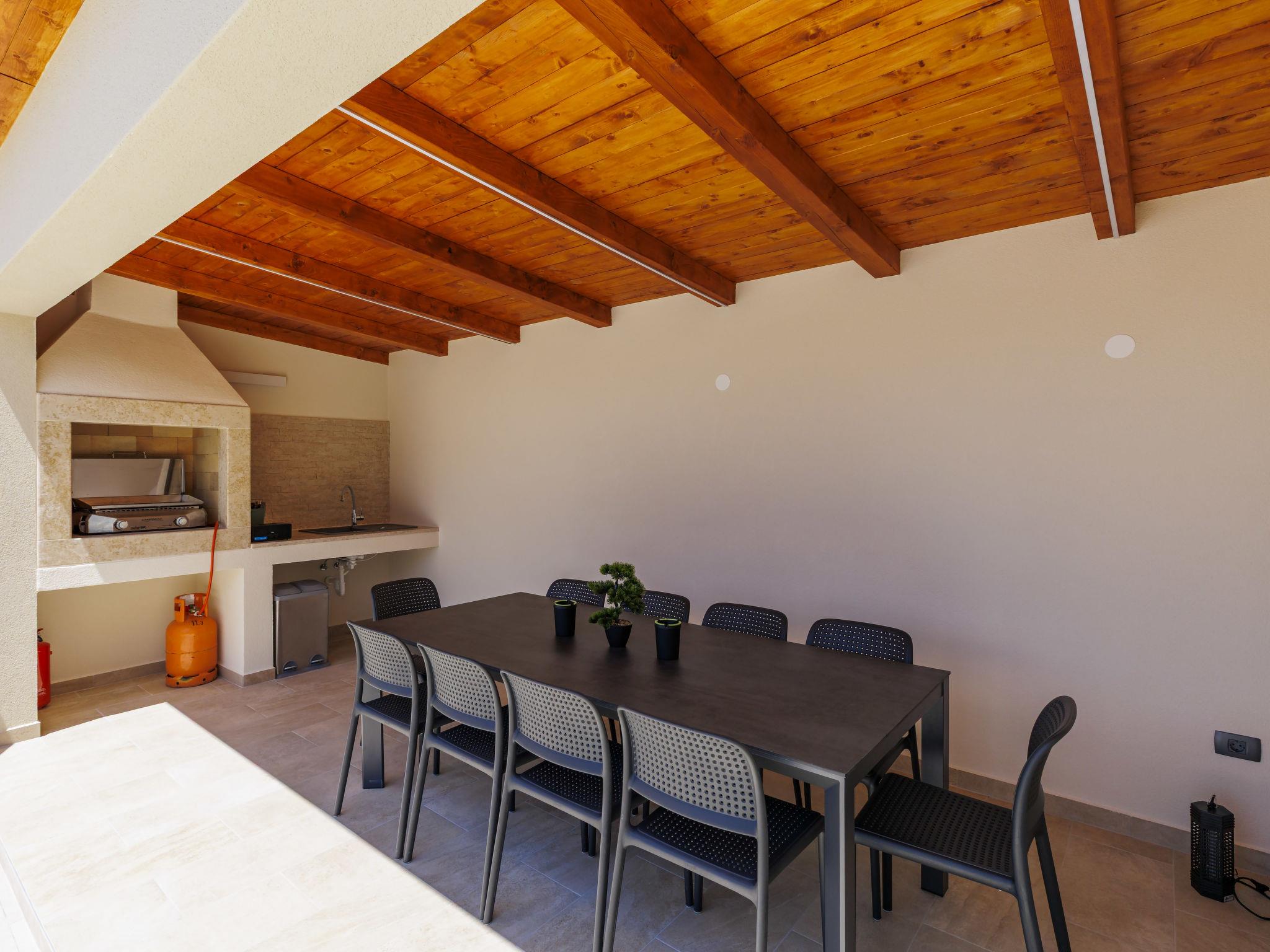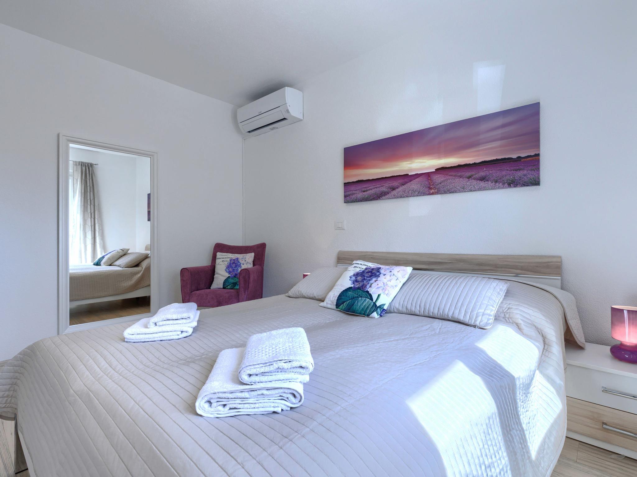 8-room house 210 m2. Beautiful and tasteful furnishings: living/dining room 60 m2 with satellite TV (flat screen), air conditioning. Exit to the terrace. 1 room with 1 french bed (160 cm, length 200 cm). 1 room with 1 french bed (180 cm, length 200 cm). 1 room with 1 french bed (160 cm, length 200 cm), air conditioning. Open kitchen (oven, dishwasher, 4 ceramic glass hob hotplates, toaster, microwave, freezer, electric coffee machine). Shower/WC, sep. WC. Upper floor: living/dining room with kitchen corner and satellite TV (flat screen), air conditioning. Exit to the terrace. 1 room with 1 bed (90 cm, length 200 cm), 1 french bed (180 cm, length 200 cm). Exit to the terrace. Living/dining room with satellite TV (flat screen), air conditioning. 1 room with 1 french bed (160 cm, length 200 cm). Open kitchen (oven, dishwasher, 4 ceramic glass hob hotplates, kettle, microwave, electric coffee machine). 2 showers/WC. No heating option. Terrace 11 m2, roofed, terrace 30 m2. Terrace furniture, deck chairs. View of the swimming pool and the garden. Facilities: hair dryer. Internet (WiFi, free).