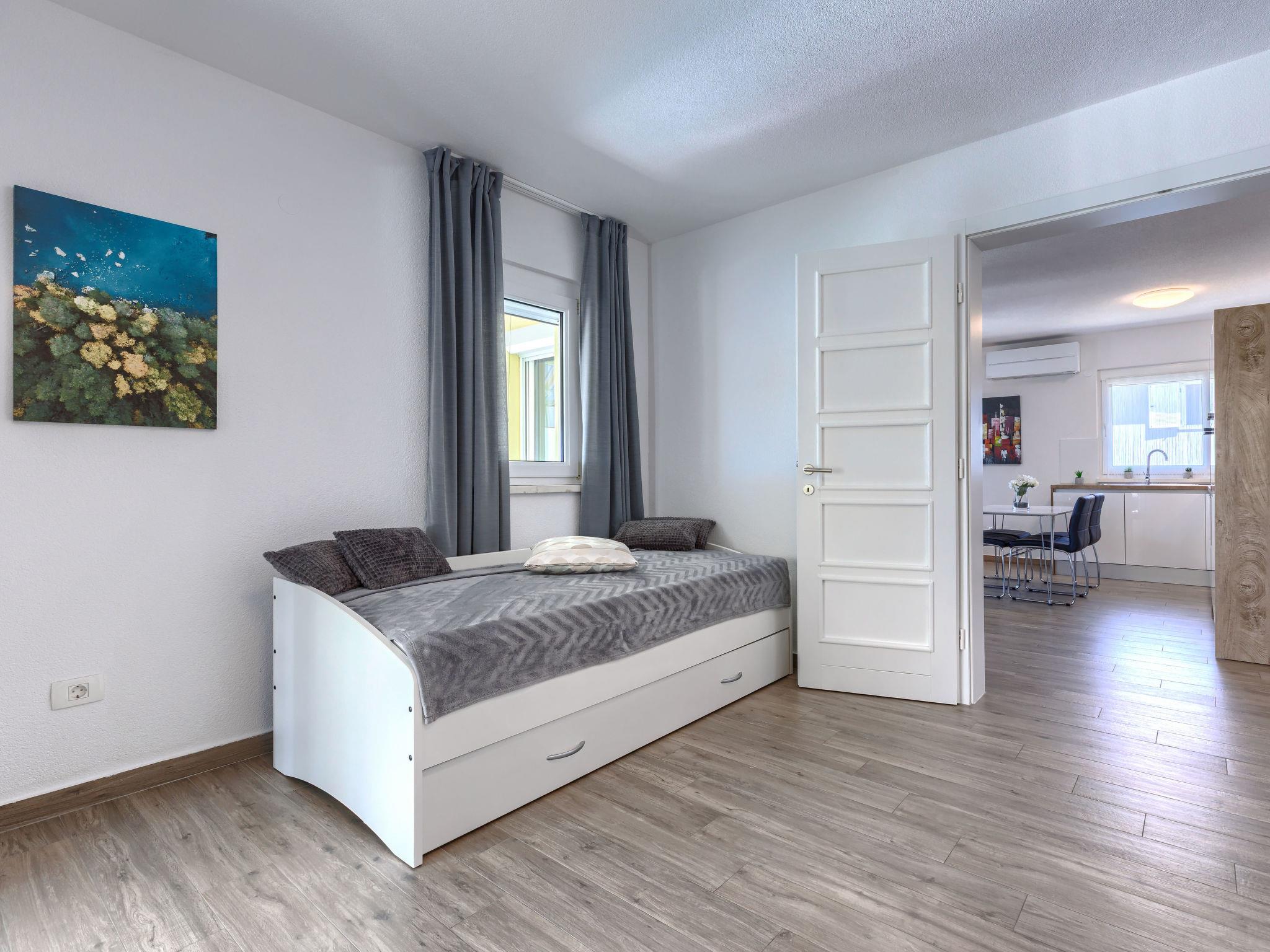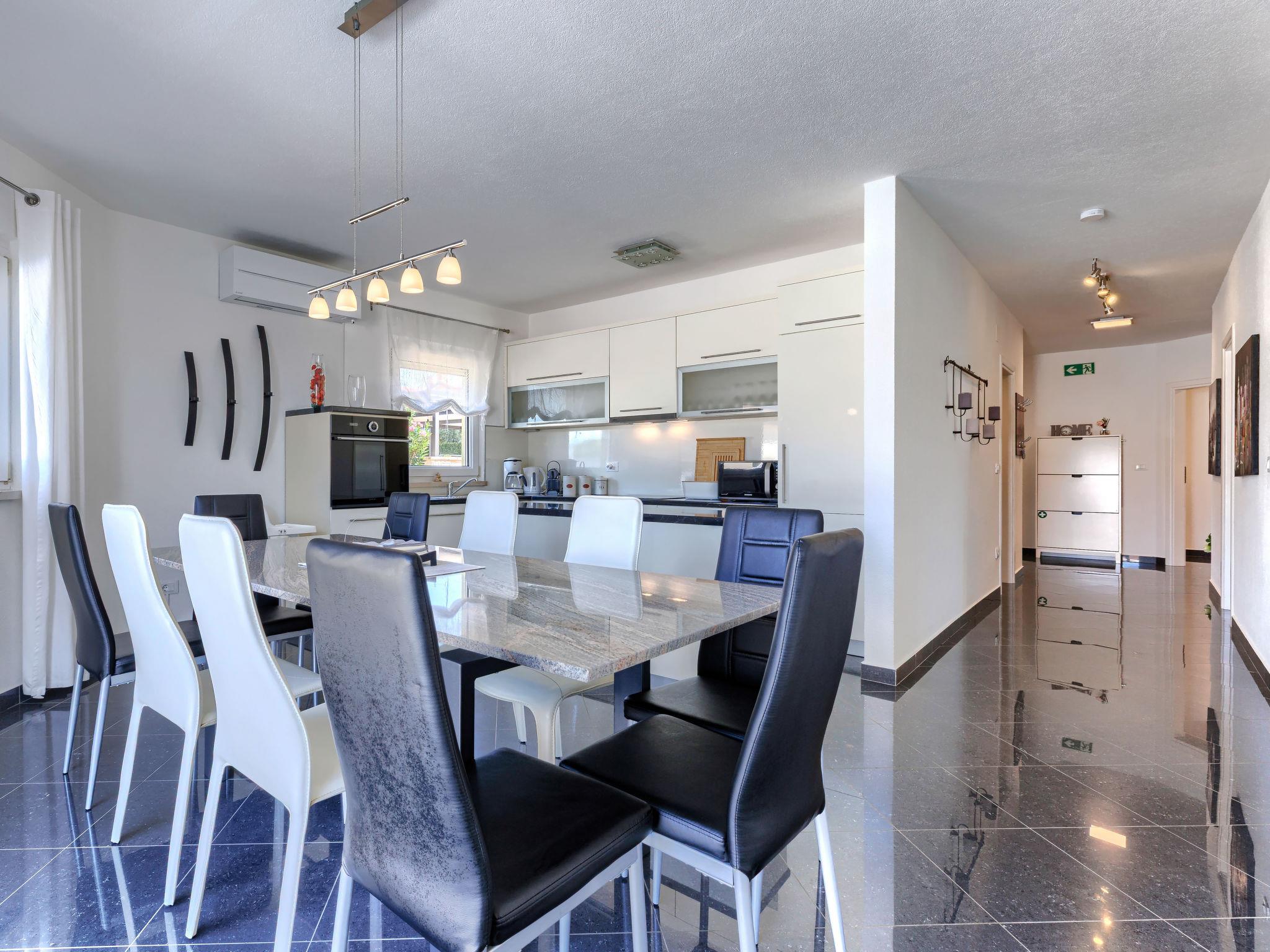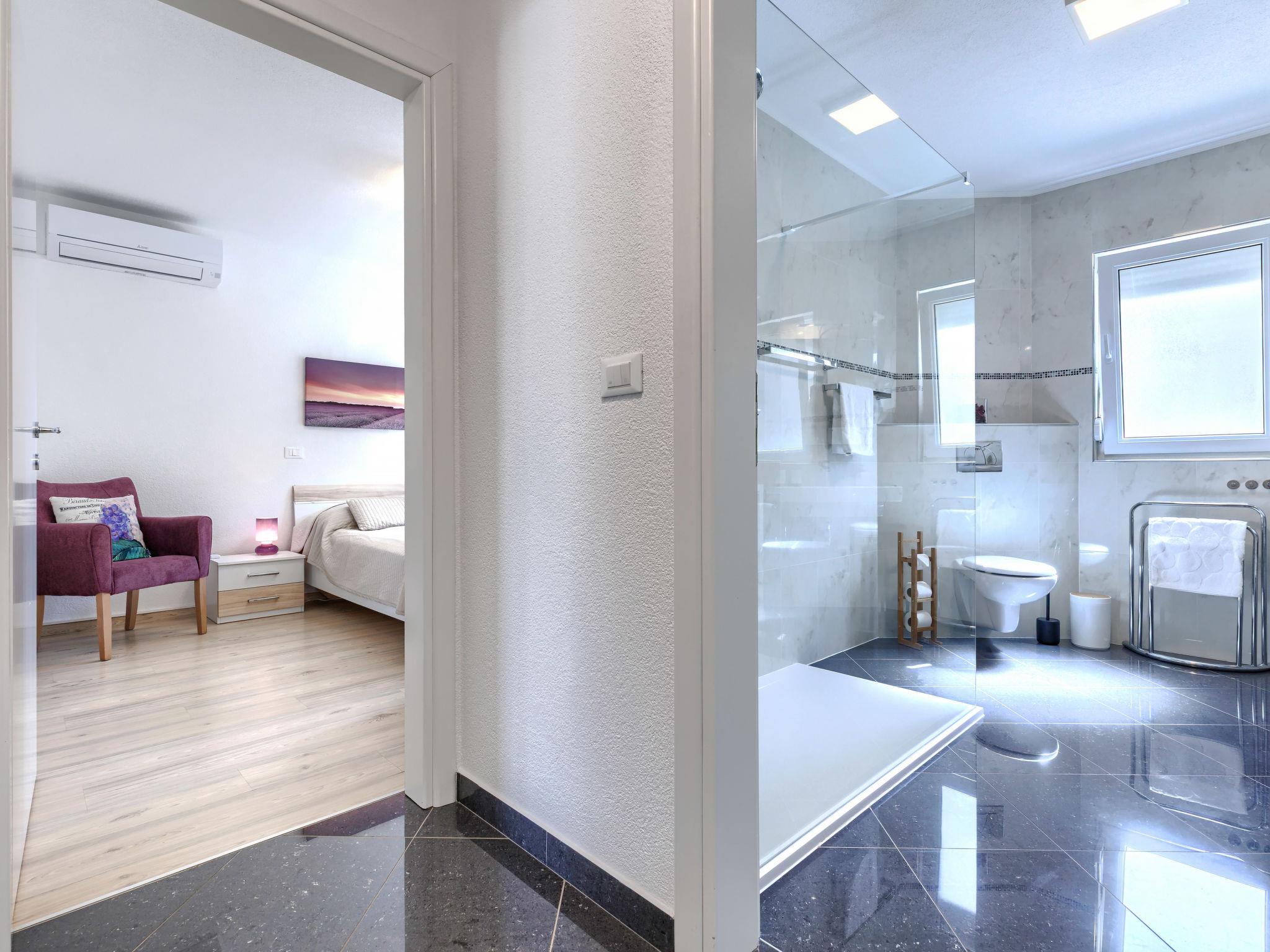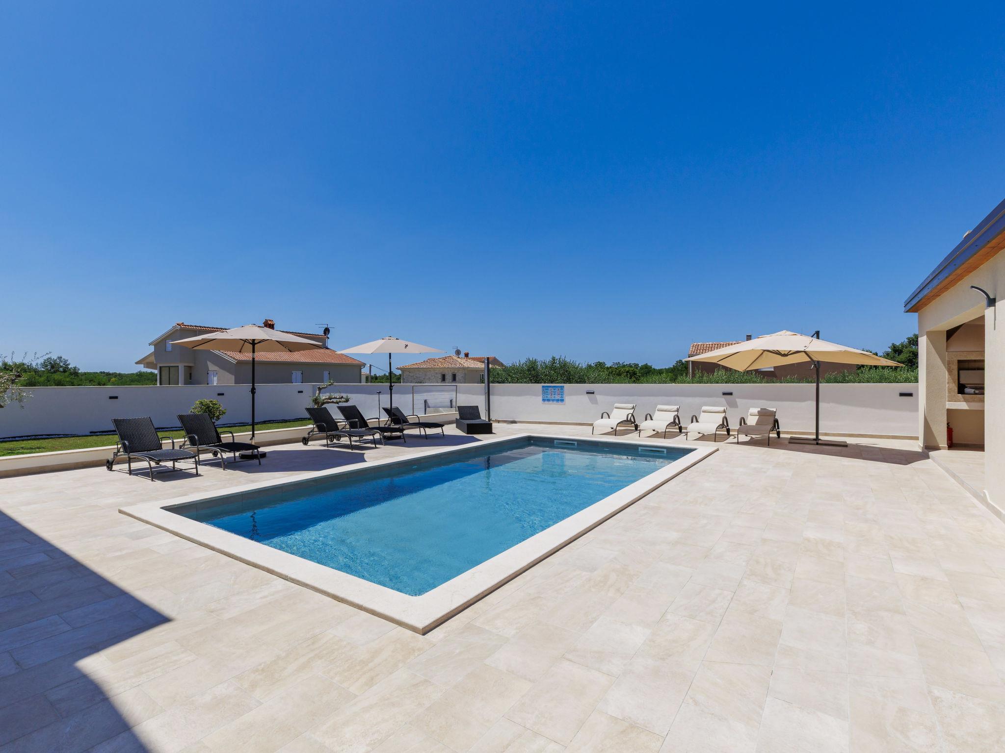 Beautiful single-family house "Villa Lucia", 2 storeys. In the hamlet Srbarica 3 km from the centre of Umag, in a sunny position, 2.5 km from the sea, 2.5 km from the beach, in a cul-de-sac. Private: property 850 m2 (fenced), garden with lawn, swimming pool angular (9 x 4 m, depth 145 cm, seasonal availability: 01.May. - 15.Oct.) with internal staircase. Outdoor shower, barbecue. In the house: internet access, washing machine. Parking (for 3 cars) at the house on the premises. Shop 1 km, supermarket 2 km, restaurant 500 m, bus stop 4.4 km, pebble beach 2.5 km, rocky beach 2.5 km, public bathing area 2.5 km. Golf course (18 hole) 10 km, tennis 3 km, walking paths from the house 500 m, cycle lane 550 m. Nearby attractions: aquapark 18 km, cave Mramornica 15 km. Please note: suitable for families. The owner does not accept any youth groups. Airfield 60 km from the property. The photograph shows a typical example. The house consists of 3 apartments rented as one unit: one apartment on the ground floor and two apartments on the first floor. The allowed number of people in and around the property / pool, grill and yard is 10 persons, outside visits prohibited.