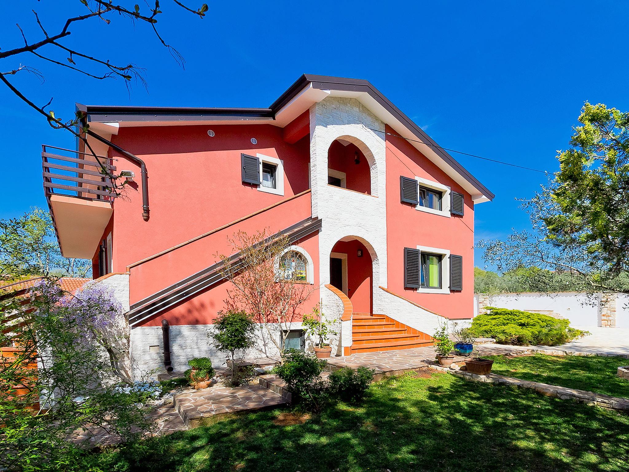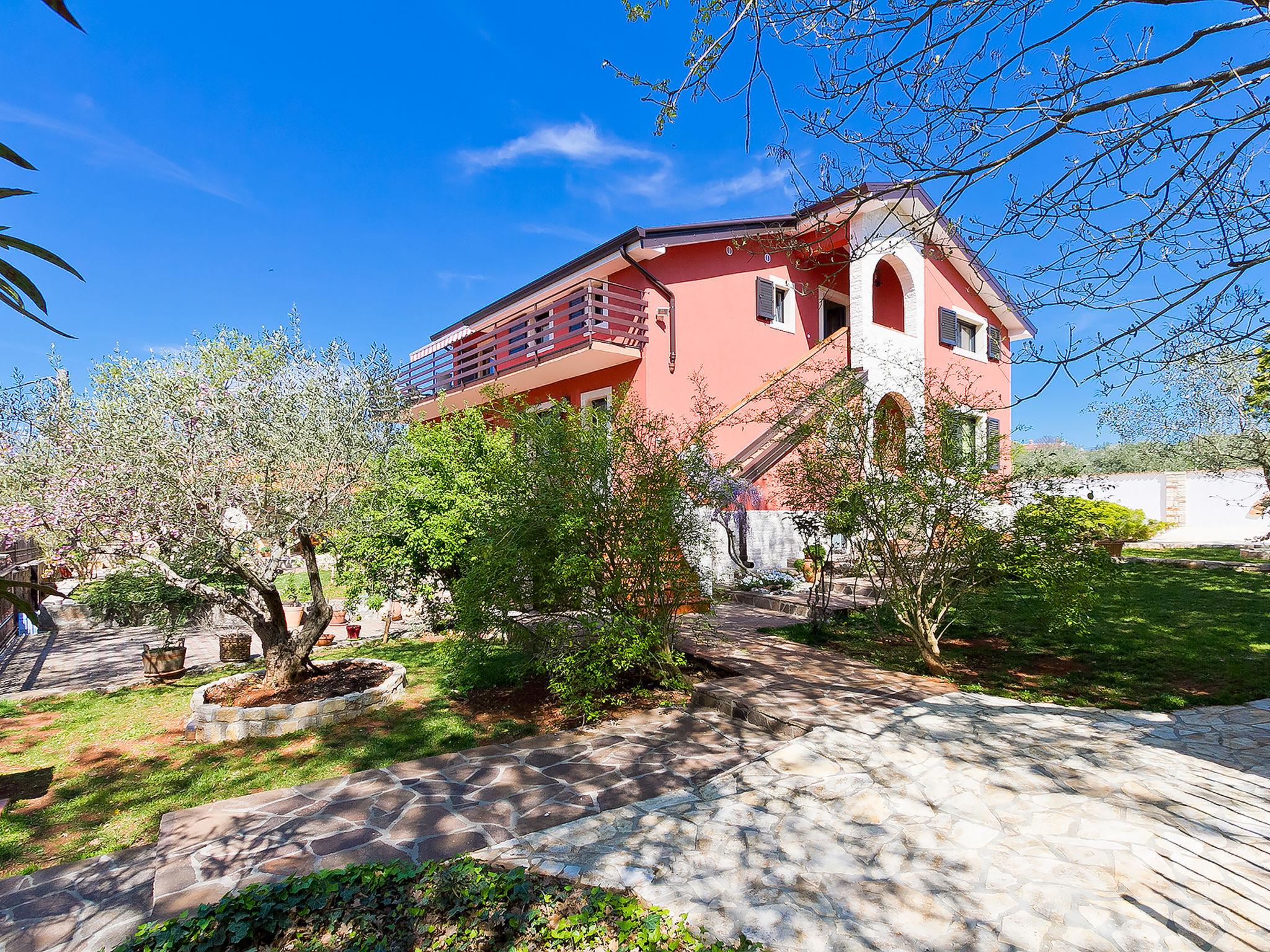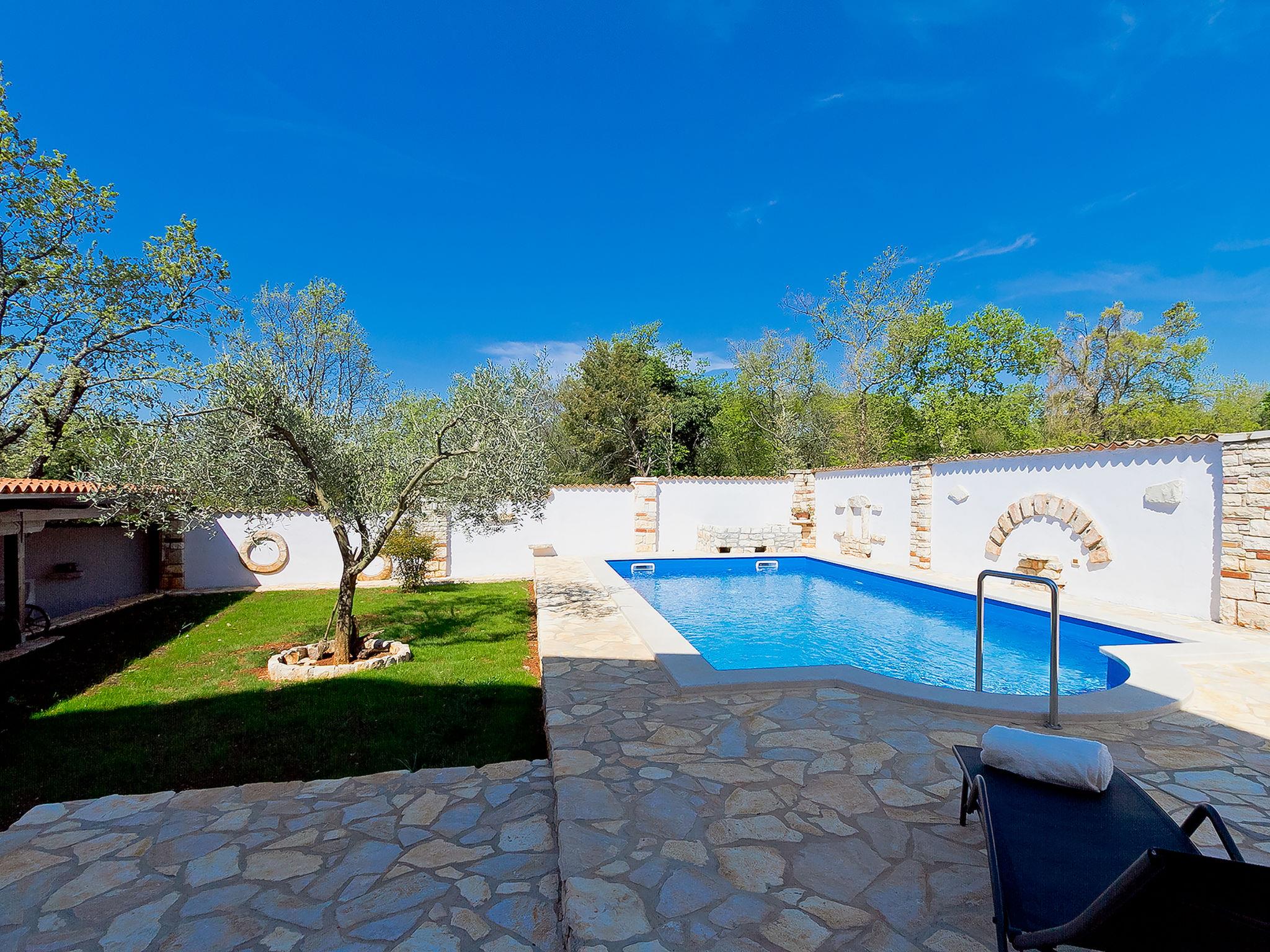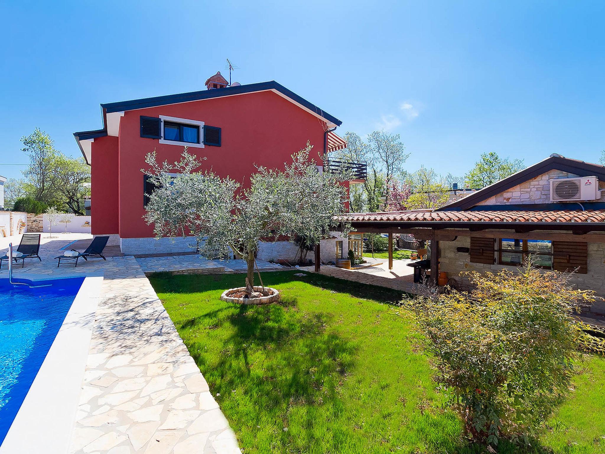 2-family house "Majda". In the hamlet Barboj 5 km from the centre of Umag, in a quiet, sunny position, 1.5 km from the sea, 1.5 km from the beach, in a cul-de-sac. For shared use: property 1'000 m2 (fenced), beautiful garden with lawn. Private: swimming pool angular (8 x 4 m, depth 140 cm, seasonal availability: 15.May. - 28.Sep.) with internal staircase. WC in the pool area, outdoor shower, terrace (40 m2), garden furniture, barbecue. In the house: internet access. Parking at the house on the premises. Shop 1 km, supermarket 5 km, restaurant 1 km, bus stop 6 km, railway station 33 km, pebble beach 1.5 km, rocky beach 1.5 km, public bathing area 1.5 km. Golf course (18 hole) 3 km, tennis 1.5 km, walking paths from the house 150 m, cycle lane 200 m. Please note: the owner lives in the same residence. Youth groups are not allowed.