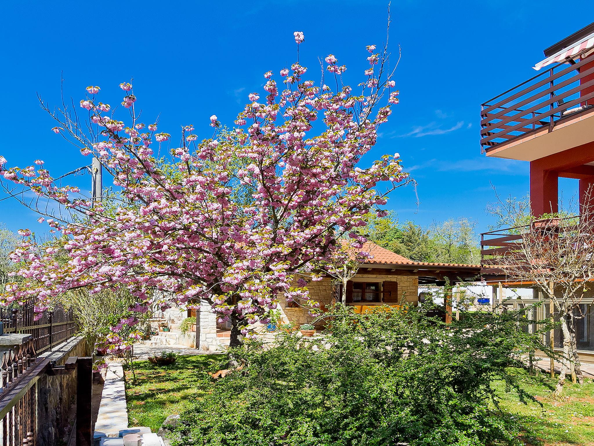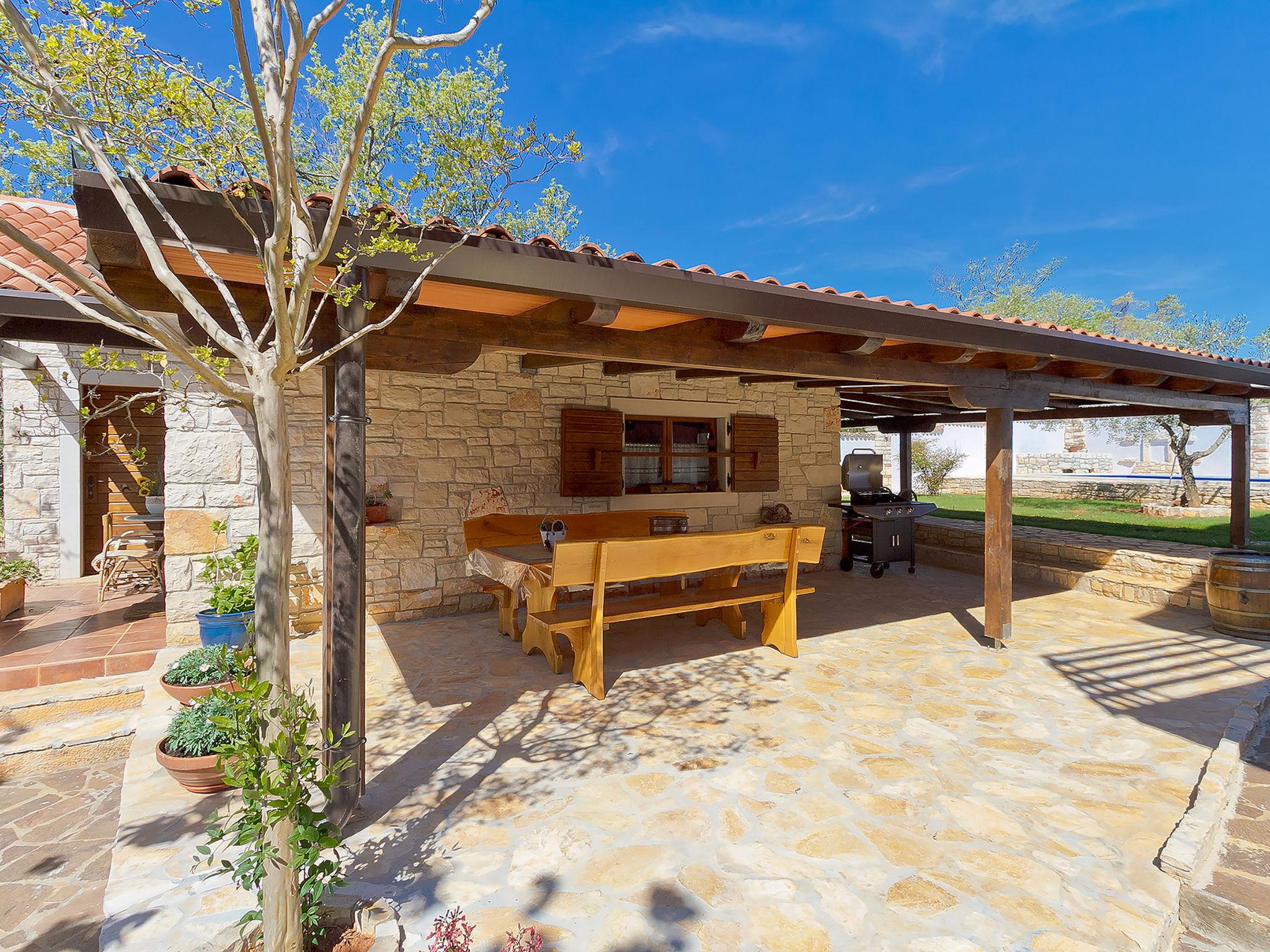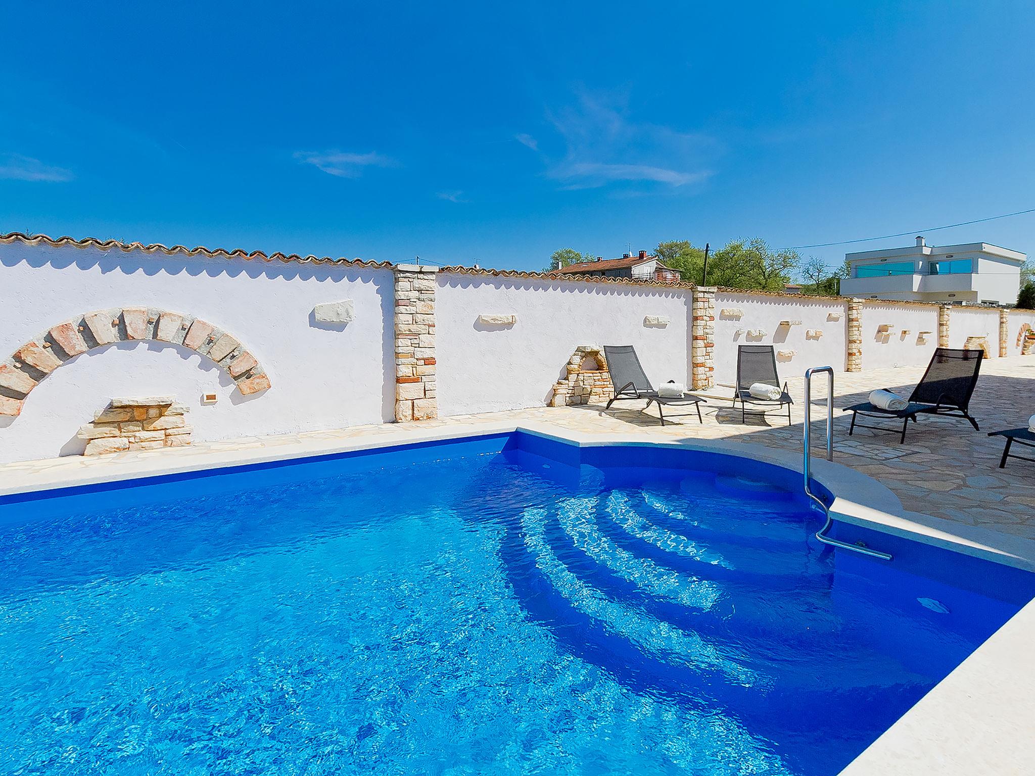2-family house "Majda". In the hamlet Barboj 5 km from the centre of Umag, in a quiet, sunny position, 1.5 km from the sea, 1.5 km from the beach, in a cul-de-sac. For shared use: property 1'000 m2 (fenced), beautiful garden with lawn. Private: swimming pool angular (8 x 4 m, depth 140 cm, seasonal availability: 15.May. - 28.Sep.) with internal staircase. WC in the pool area, outdoor shower, terrace (40 m2), garden furniture, barbecue. In the house: internet access. Parking at the house on the premises. Shop 1 km, supermarket 5 km, restaurant 1 km, bus stop 6 km, railway station 33 km, pebble beach 1.5 km, rocky beach 1.5 km, public bathing area 1.5 km. Golf course (18 hole) 3 km, tennis 1.5 km, walking paths from the house 150 m, cycle lane 200 m. Please note: the owner lives in the same residence. Youth groups are not allowed.