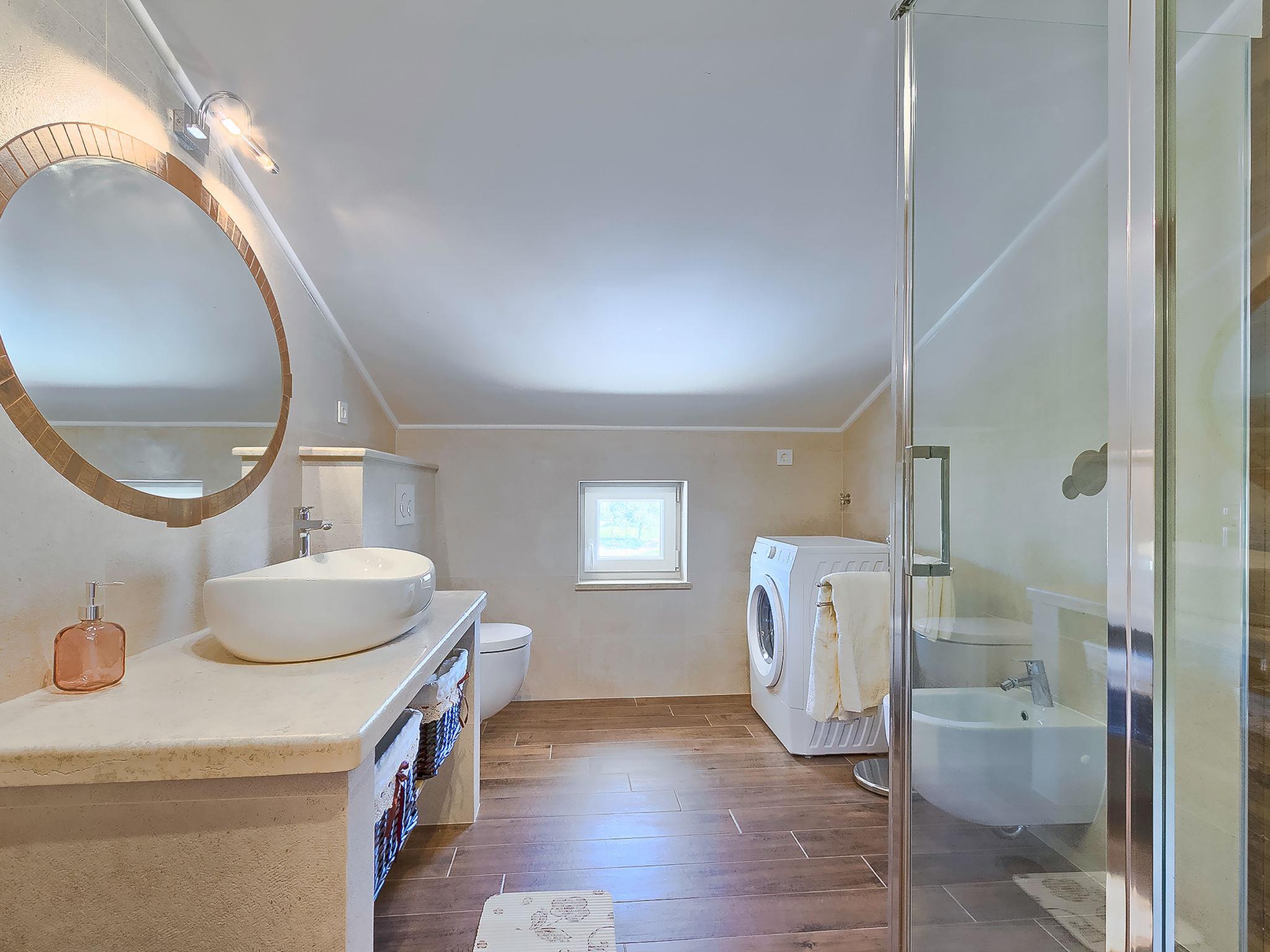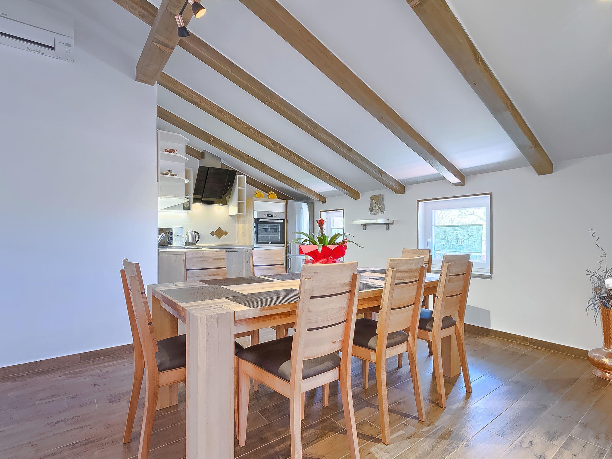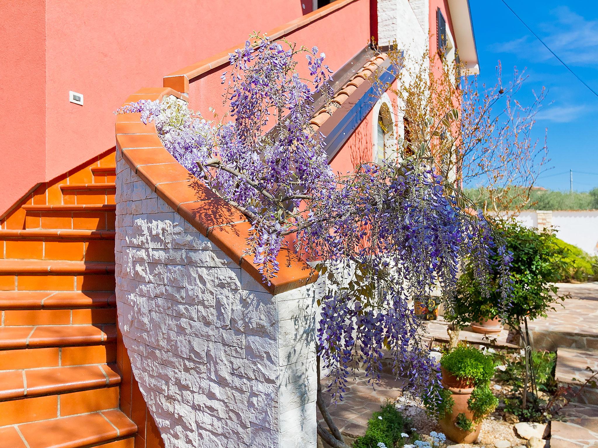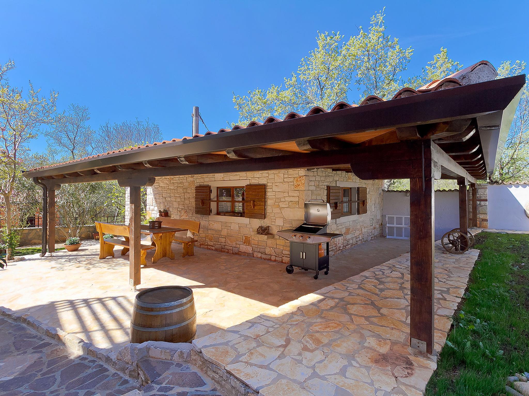 2-family house "Majda". In the hamlet Barboj 5 km from the centre of Umag, in a quiet, sunny position, 1.5 km from the sea, 1.5 km from the beach, in a cul-de-sac. For shared use: property 1'000 m2 (fenced), beautiful garden with lawn. Private: swimming pool angular (8 x 4 m, depth 140 cm, seasonal availability: 15.May. - 28.Sep.) with internal staircase. WC in the pool area, outdoor shower, terrace (40 m2), garden furniture, barbecue. In the house: internet access. Parking at the house on the premises. Shop 1 km, supermarket 5 km, restaurant 1 km, bus stop 6 km, railway station 33 km, pebble beach 1.5 km, rocky beach 1.5 km, public bathing area 1.5 km. Golf course (18 hole) 3 km, tennis 1.5 km, walking paths from the house 150 m, cycle lane 200 m. Please note: the owner lives in the same residence. Youth groups are not allowed.