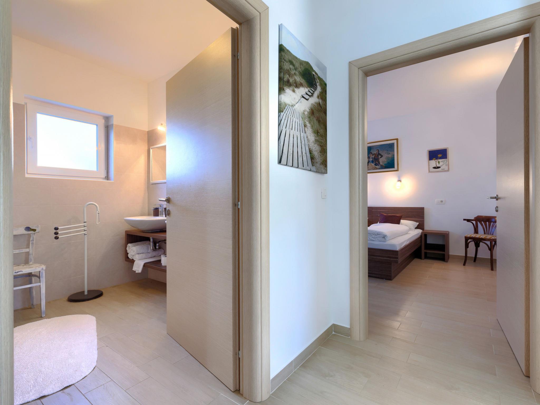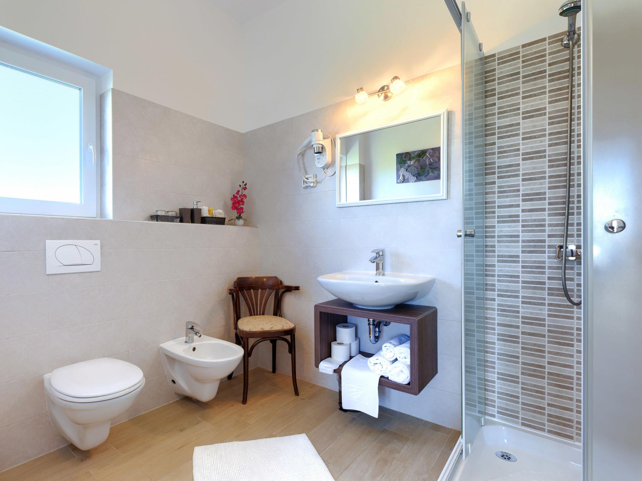 Beautiful house "Villa Soši", 2 storeys. In the hamlet Soši 3.5 km from the centre of Umag, in a quiet position, 3 km from the sea, 3 km from the beach. Private: property 500 m2 (fenced), garden, swimming pool angular (8 x 4 m, depth 150 cm, seasonal availability: 15.Apr. - 15.Oct.) with internal staircase. Outdoor shower, terrace (30 m2), garden furniture, barbecue, pool maintenance by the owner/gardener. In the house: internet access, washing machine. Breakfast on request. Parking (for 2 cars) at the house on the premises. Shop 3.5 km, supermarket 3.5 km, restaurant 800 m, bus stop "Umag" 4 km, railway station 33 km, pebble beach 3 km. Golf course (18 hole) 7 km. Nearby attractions: Aquapark 10 km. The owner does not accept any youth groups.