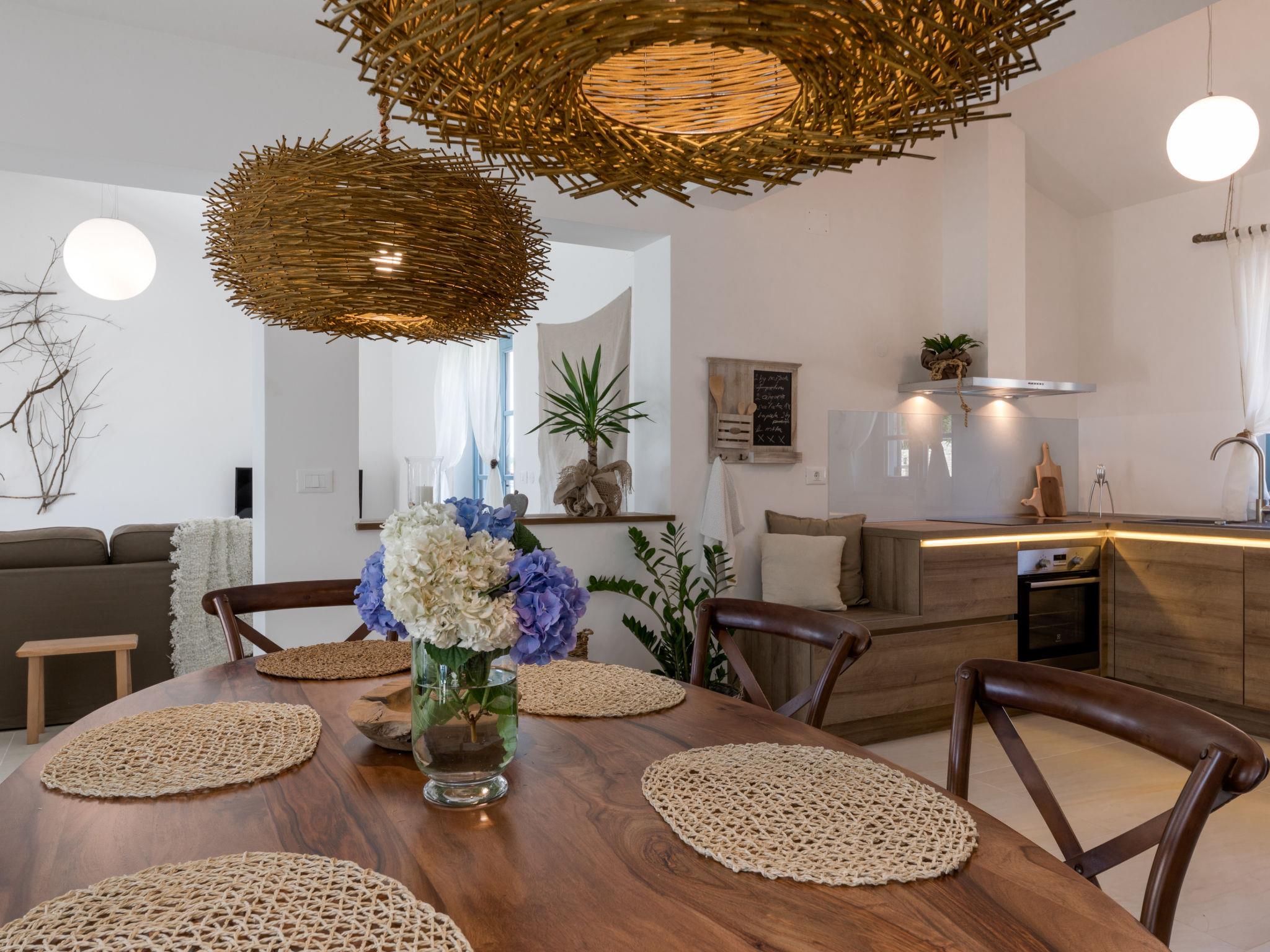 3-room house 150 m2 on 2 levels. Comfortable furnishings: living/dining room 40 m2 with 1 sofabed (90 cm, length 200 cm), satellite TV (flat screen), air conditioning. Exit to the garden, to the terrace, to the swimming pool. 1 room with 2 beds (90 cm, length 200 cm), air conditioning. Open kitchen (oven, dishwasher, 4 ceramic glass hob hotplates, freezer, electric coffee machine). Shower/bidet/WC. Upper floor: entrance hall with 1 sofabed (90 cm, length 200 cm). 1 room with 1 french bed (160 cm, length 200 cm), shower/bidet/WC and air conditioning. Exit to the terrace. Heating (extra). Terrace 15 m2, roofed, terrace 5 m2, roofed. Terrace furniture, deck chairs. Distant view of the sea. Facilities: hair dryer. Internet (WiFi, free). Please note: non-smoking house. 1 small pet/ dog allowed.