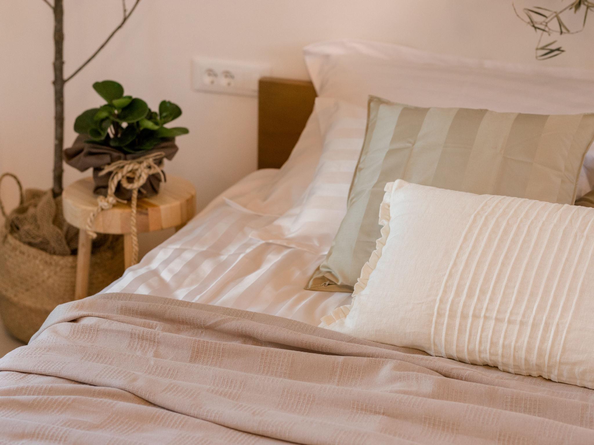 3-room house 150 m2 on 2 levels. Comfortable furnishings: living/dining room 40 m2 with 1 sofabed (90 cm, length 200 cm), satellite TV (flat screen), air conditioning. Exit to the garden, to the terrace, to the swimming pool. 1 room with 2 beds (90 cm, length 200 cm), air conditioning. Open kitchen (oven, dishwasher, 4 ceramic glass hob hotplates, freezer, electric coffee machine). Shower/bidet/WC. Upper floor: entrance hall with 1 sofabed (90 cm, length 200 cm). 1 room with 1 french bed (160 cm, length 200 cm), shower/bidet/WC and air conditioning. Exit to the terrace. Heating (extra). Terrace 15 m2, roofed, terrace 5 m2, roofed. Terrace furniture, deck chairs. Distant view of the sea. Facilities: hair dryer. Internet (WiFi, free). Please note: non-smoking house. 1 small pet/ dog allowed.
