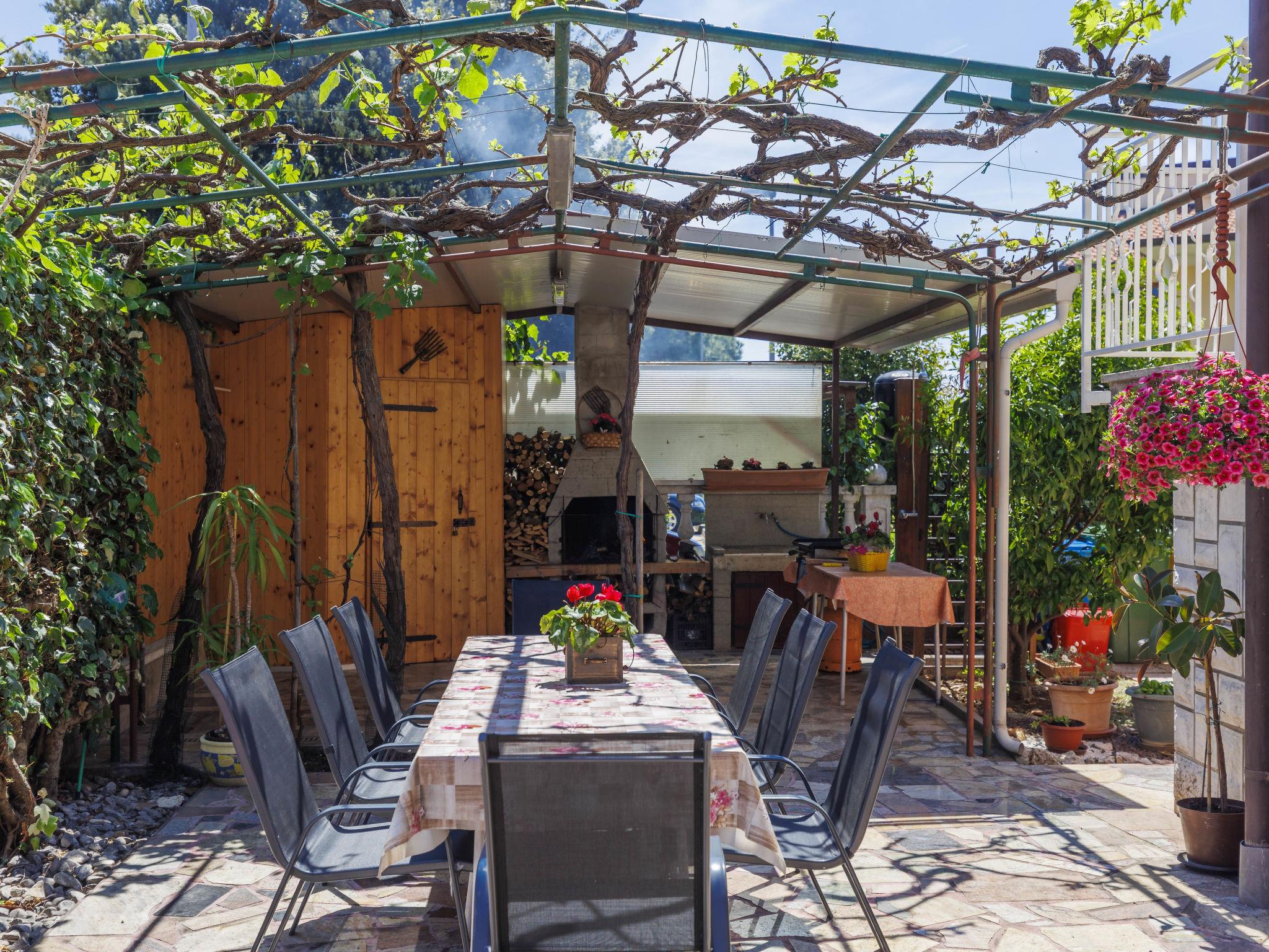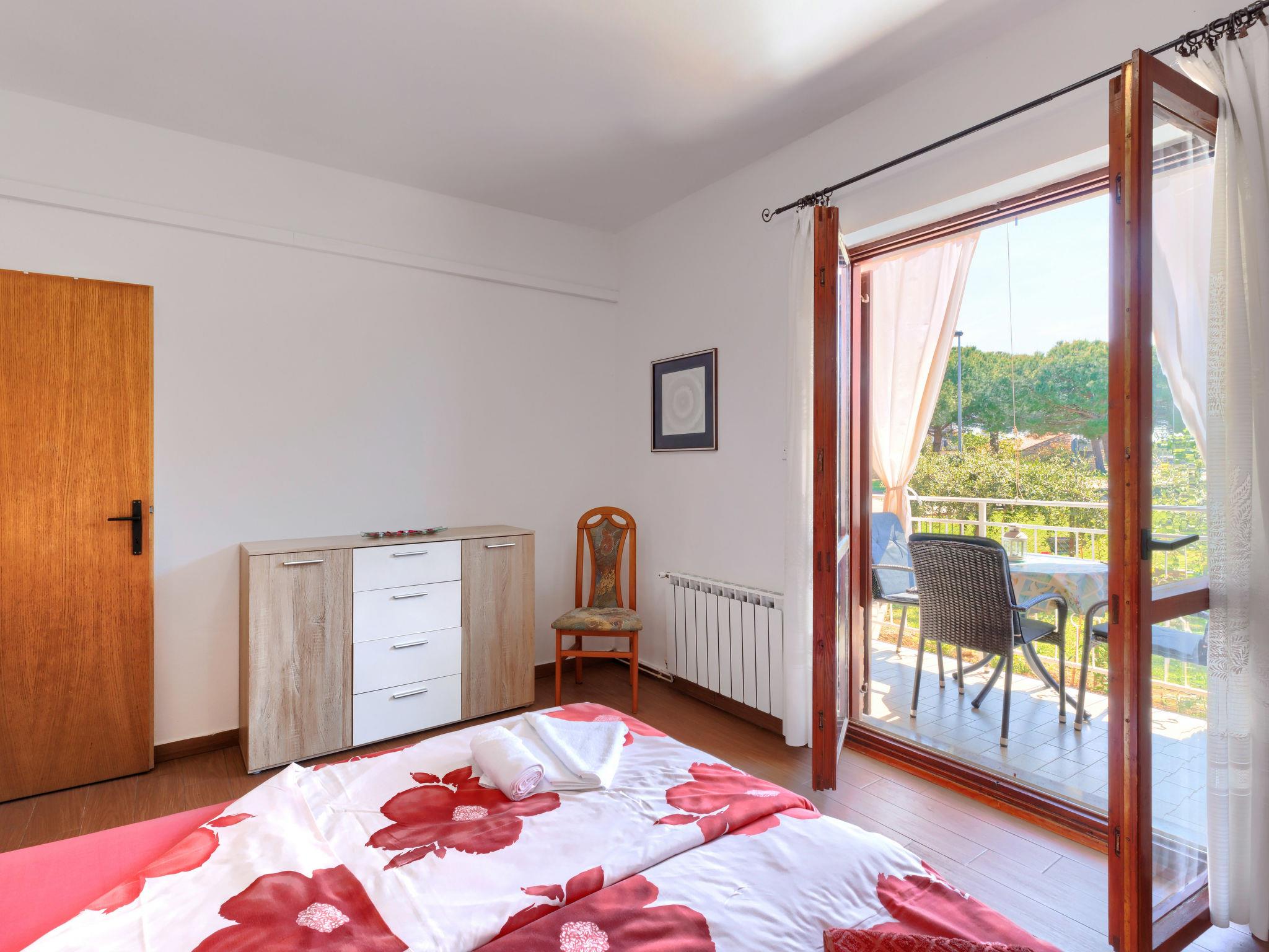 "Elvi", 2-room apartment 45 m2, on the ground floor. Living/sleeping room with 1 bed, dining table, satellite TV and air conditioning. Exit to the balcony. 1 room with 1 double bed (2 x 90 cm, length 200 cm). Exit to the balcony. Open kitchen (4 hot plates, toaster, kettle, microwave, electric coffee machine). Shower/WC. No heating option. Balcony, terrace. Terrace furniture, balcony furniture. Facilities: Internet (WiFi, free). Please note: non-smoking house. Maximum 1 small pet/ dog allowed. Private entrance.