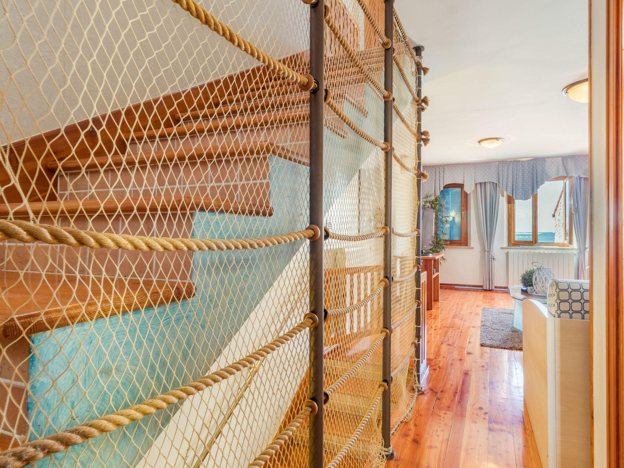 4-room apartment 110 m2 on 3 levels. Open kitchen (oven, dishwasher, electric coffee machine) with dining table, satellite TV. Exit to the terrace. Shower/WC. 2nd upper floor: living room with 1 double sofabed (160 cm, length 200 cm), satellite TV and air conditioning. Bath/WC. 3nd upper floor: 1 room with 1 french bed (140 cm, length 200 cm). 1 room with 1 french bed (180 cm, length 200 cm). Terrace 30 m2. Terrace furniture. View of the sea and the city. Facilities: washing machine, iron, baby cot, hair dryer. Internet (WiFi, free). Please note: non-smokers only. Maximum 1 pet/ dog allowed.
