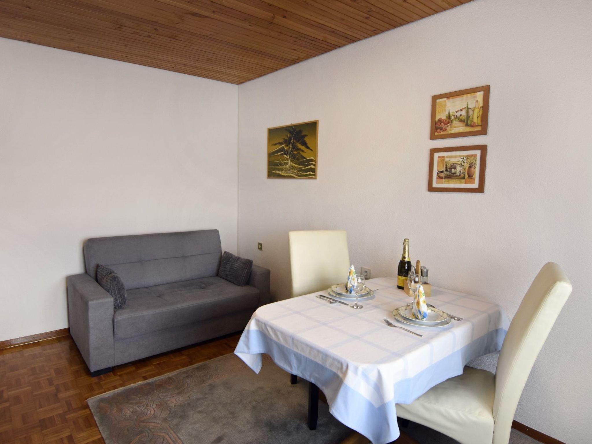 Inside, the flat invites you to linger with its modern furnished bedroom, a cosy dining area with kitchen, an inviting bathroom and a balcony. The kitchen is fully equipped with everything you need for self-catering: Fridge, ceramic hobs, microwave, kettle, toaster, coffee machine and more. The dining area has a table and 2 chairs, a flat-screen satellite TV and a comfortable sofa. The bathroom is equipped with a shower, WC and washbasin including a hairdryer, while the bedroom not only promises a restful night's sleep, but also offers direct access to the balcony.