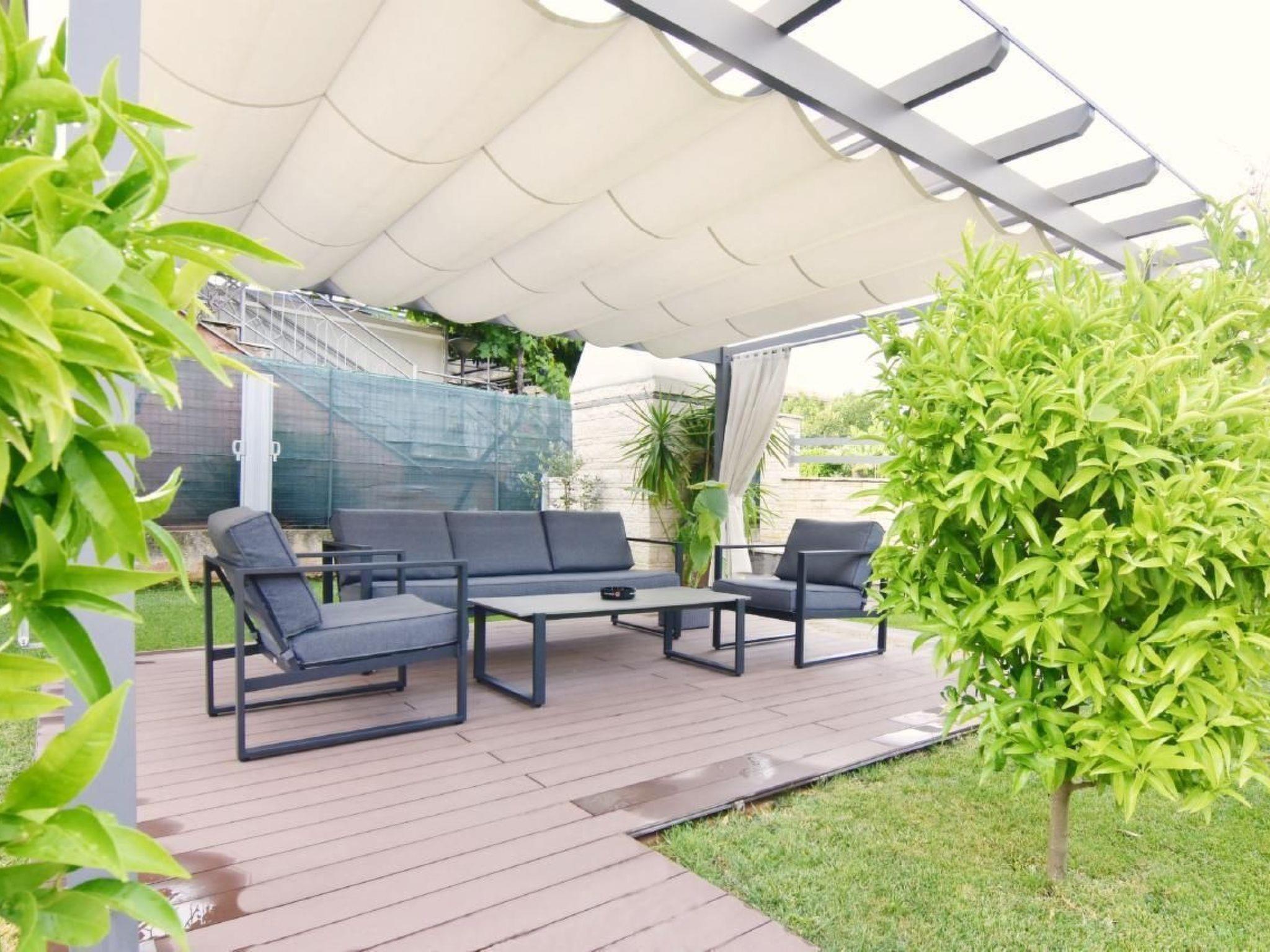 The accommodation consists of a bedroom with double bed 160x200, two bedside tables with night lamps, wardrobe, chest of drawers, a second bedroom with two single beds 80x200 that can be joined, wardrobe, a bedside table and night lamp and cabinet, linen bed provided (changed weekly), the furniture of the house in solid wood reinvigorates the quality of the house. The fully equipped eat-in kitchen has a microwave oven, kettle, oven, refrigerator with freezer area, stove with two gas and two electric burners, extractor hood, coffee machine, dishes and cutlery, pots, dining area with dining table. dining room and 4 chairs. The bathroom with box shower, toilet, sink with cabinet and mirror, bidet, washing machine, hairdryer, bathroom towels two per person provided (changed weekly), the service bathroom with toilet, sink with cabinet and mirror. At the entrance is the magnificent veranda with sofa and armchairs with coffee table and flat-screen satellite TV. Free Wi-Fi internet access is available. The strong point is also the possibility to park your car safely inside the fenced structure that will make you feel safer and more peaceful. In our holiday home, you can spend days of rest and relaxation relaxing in the wonderful garden or on the veranda. Ideal for families with children or two couples of friends.
