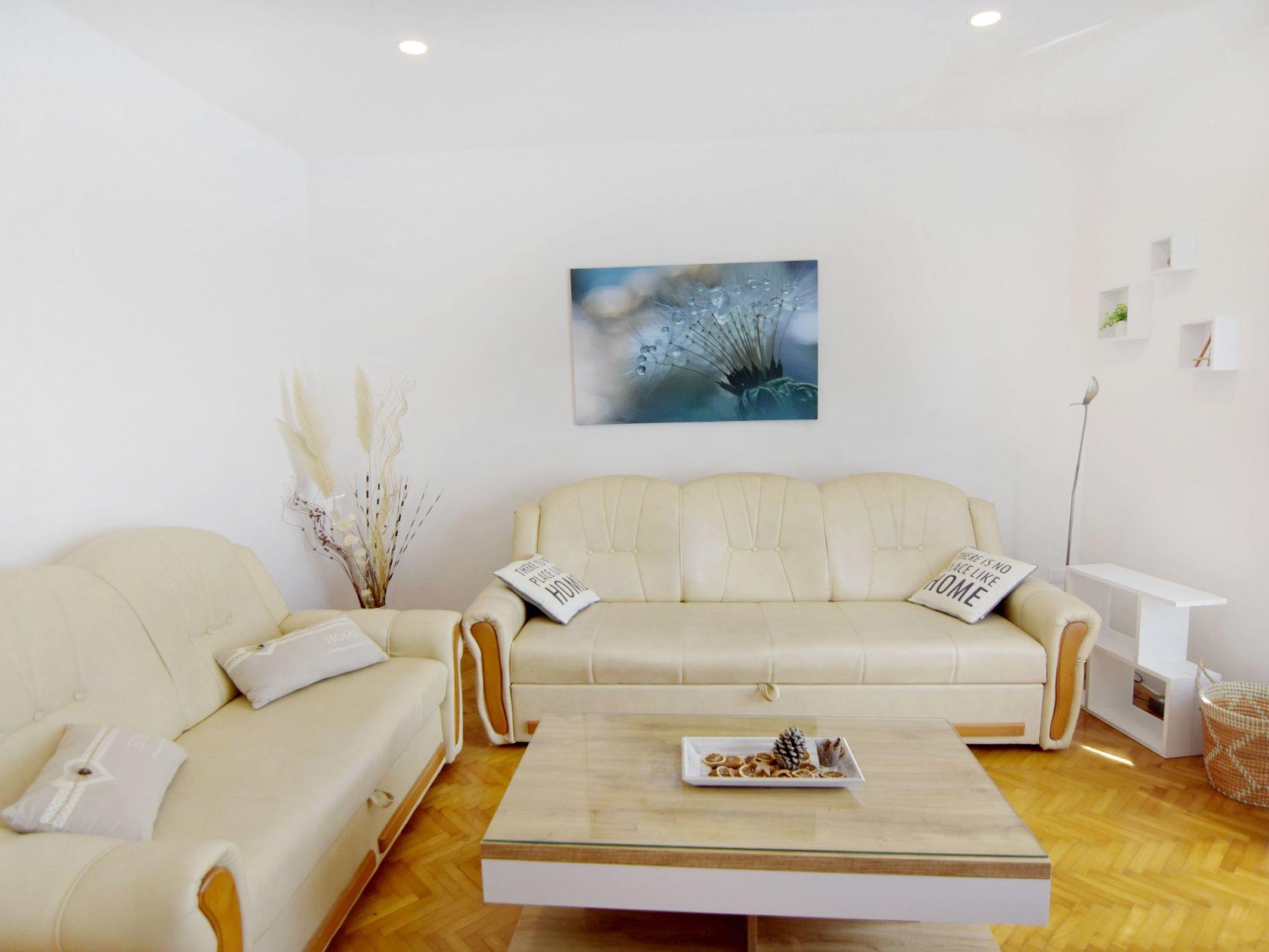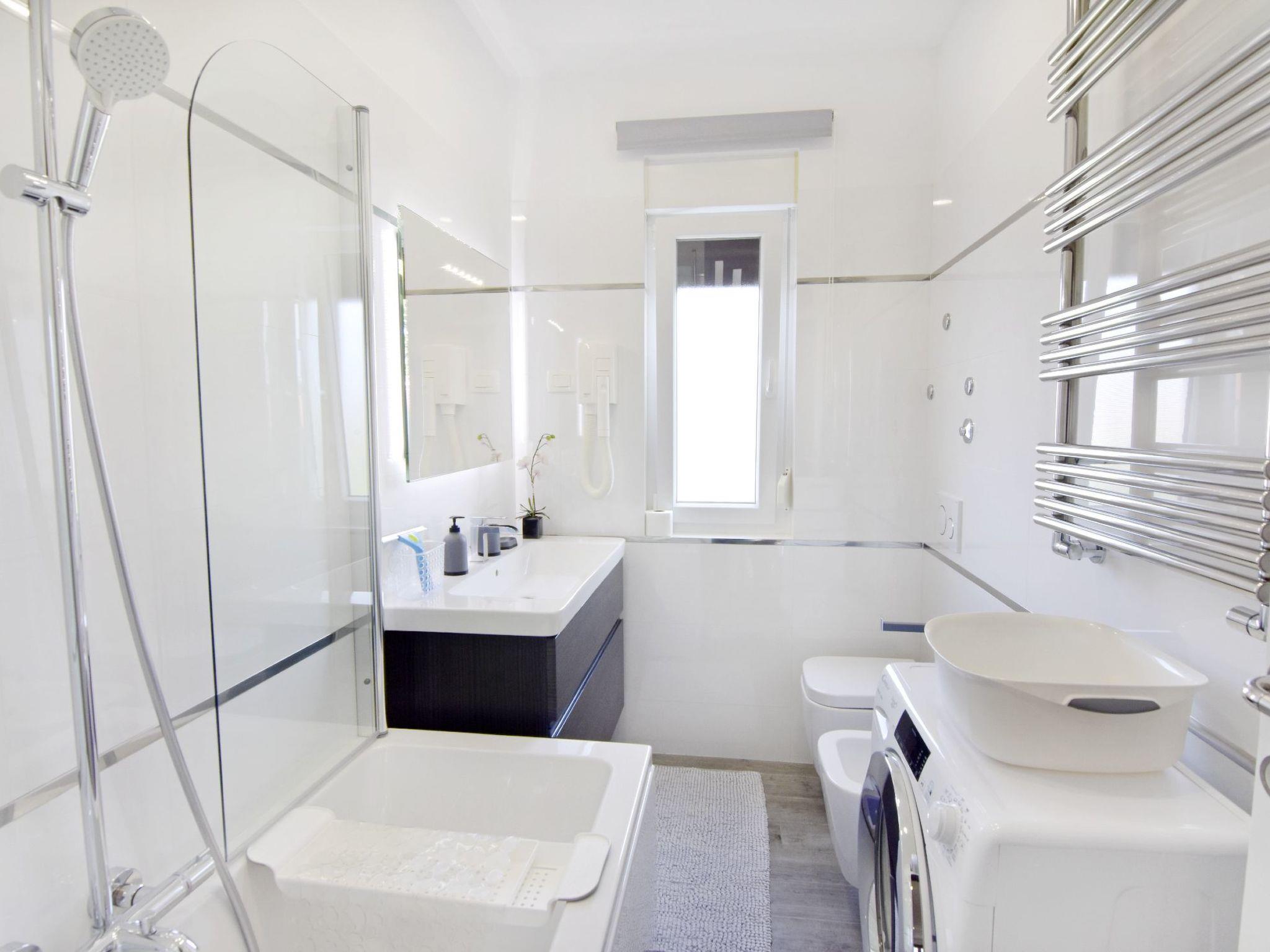 The 128 m² flat on the first floor impresses with a fully equipped kitchen that leaves nothing to be desired, including 3 gas burners, an electric hob, oven and many other appliances. It also offers a cosy living room with Smart TV, two bathrooms and several bedrooms, including one with access to a lovely terrace. The interior design is functional and modern, so that guests can immediately feel at home.