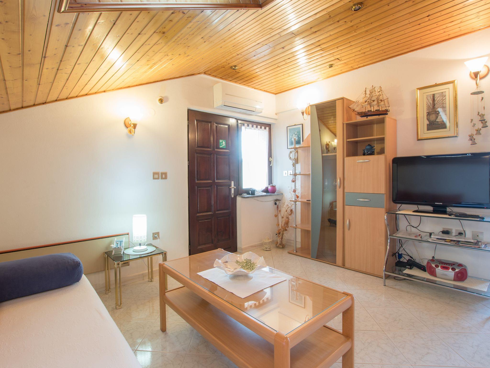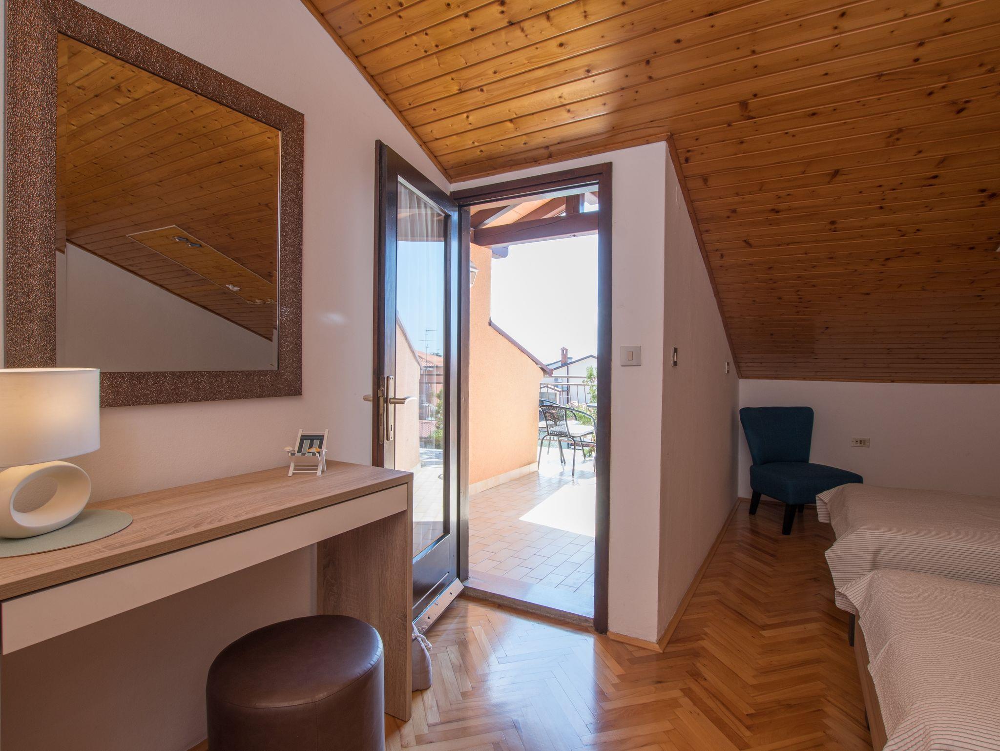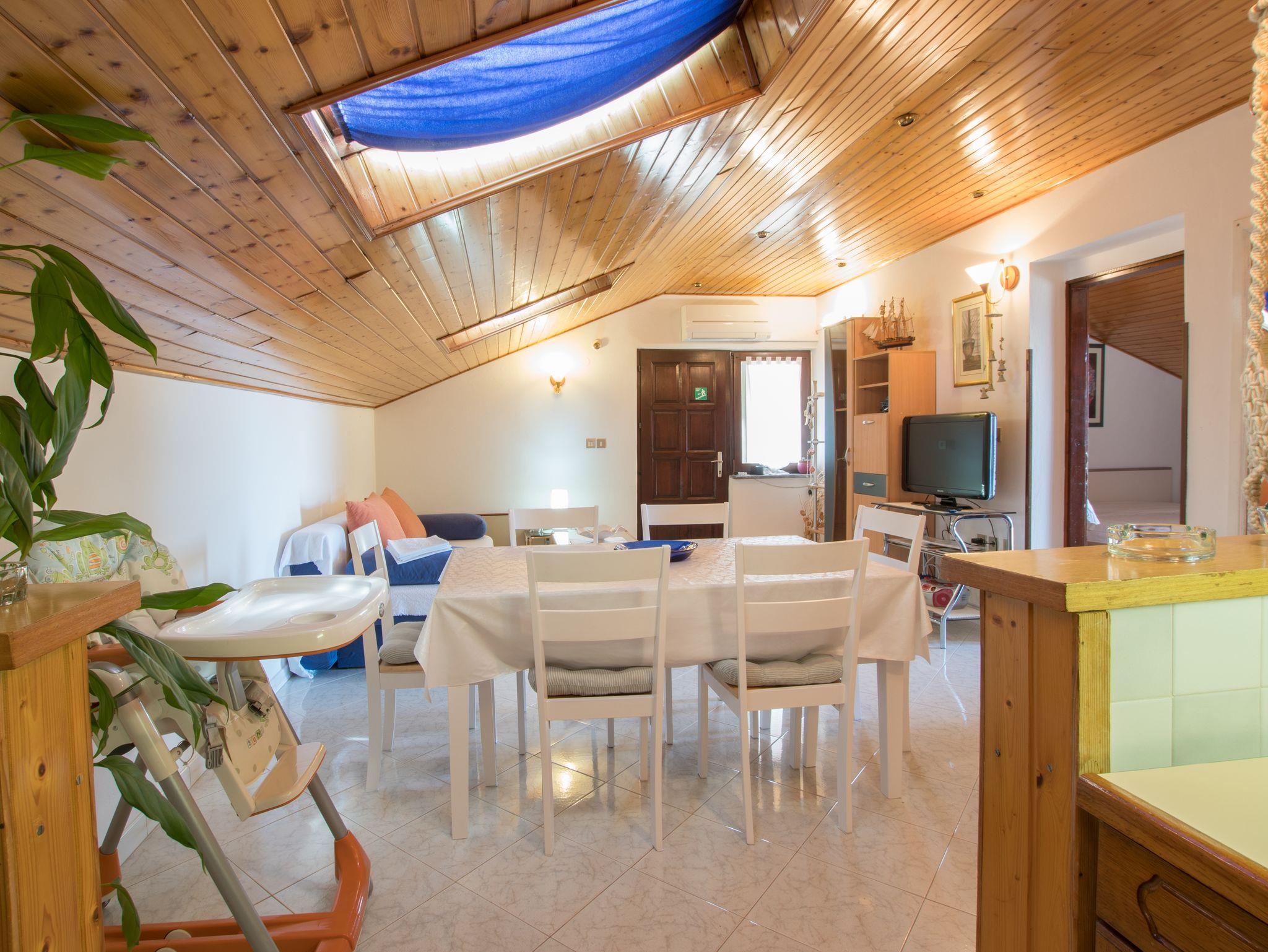 Ferienwohnung bietet Platz für 4 Gäste. Die Betten sind in Schlafzimmern, die es 2 gibt, innerhalb einer Gesamtfläche von 63m2, angeordnet. Die Gäste haben einen eigenen Balkon zur Verfügung, auf der sie in warmen Sommernächten genießen können. Das Apartment bietet Meerblick. Es ist erlaubt, Speisen auf dem Gemeinschafts-Grill vorzubereiten. In der Unterkunftseinheit besteht die Möglichkeit des Mitbringens von Haustieren gegen Aufpreis. IM PREIS INBEGRIFFEN: Kurtaxe, Endreinigung, Klimatisierung, Parkplatz, Internet, Kinderbett, Föhn, tragbarer Grill. VERBINDLICHE ZUSÄTZLICHE KOSTEN: Aufzahlung für Kurzaufenthalte (prozentualer Zuschlag pro Nächtigungsanzahl: 30% - 1, 20% - 2, 10% - 3). UNVERBINDLICHE ZUSÄTZLICHE KOSTEN: Wäschewaschen (10,00 € Waschen), Haustiere (7,00 € pro Nacht). Die Verfügbarkeit zusätzlicher Dienstleistungen in Ihrem reservierten Termin und die Preise derselben (falls nicht aufgeführt) müssen im Voraus überprüft werden. Zusätzliche Dienstleistungen die in der Zahlungsaufforderung nicht aufgeführt sind werden direkt beim Vermieter bezahlt, angenommen der Gast nutzt auch diese. Ermäßigung auf den Grundpreis: Gratistag 14=13 (bei einem Aufenthalt von 14 Tagen oder mehr erhalten Sie einen Gratistag für den Aufenthalt bis 31.12.26).