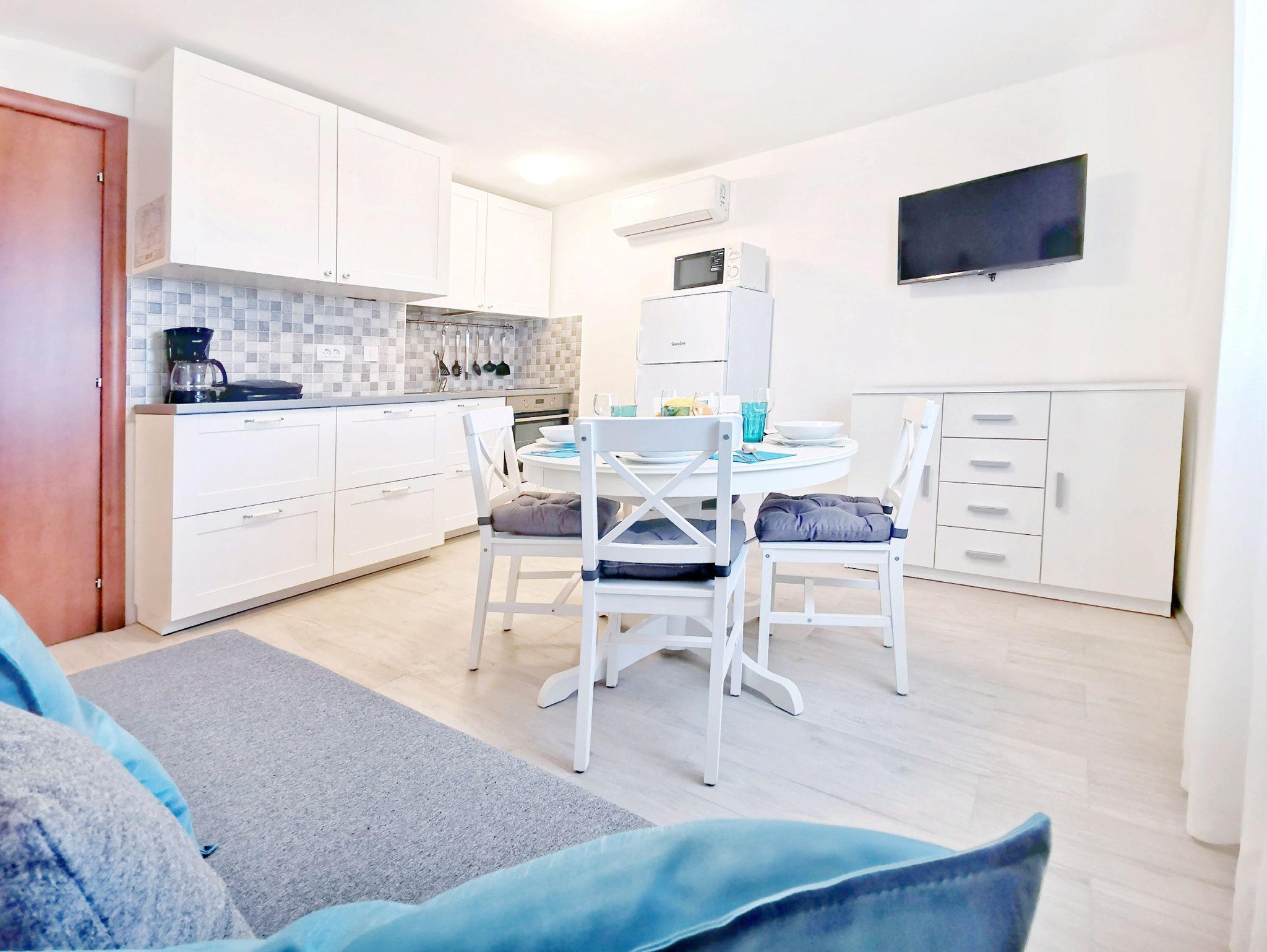 Ferienwohnung bietet Platz für 6 Gäste. Die Betten sind in Schlafzimmern, die es 3 gibt, innerhalb einer Gesamtfläche von 62m2, angeordnet. Die Gäste haben eine eigene Terrasse zur Verfügung, auf der sie in warmen Sommernächten genießen können. Es ist erlaubt, Speisen auf dem Gemeinschafts-Grill vorzubereiten. IM PREIS INBEGRIFFEN: Kurtaxe, Endreinigung, Klimatisierung, Parkplatz, Föhn. Die Verfügbarkeit zusätzlicher Dienstleistungen in Ihrem reservierten Termin und die Preise derselben (falls nicht aufgeführt) müssen im Voraus überprüft werden. Zusätzliche Dienstleistungen die in der Zahlungsaufforderung nicht aufgeführt sind werden direkt beim Vermieter bezahlt, angenommen der Gast nutzt auch diese.