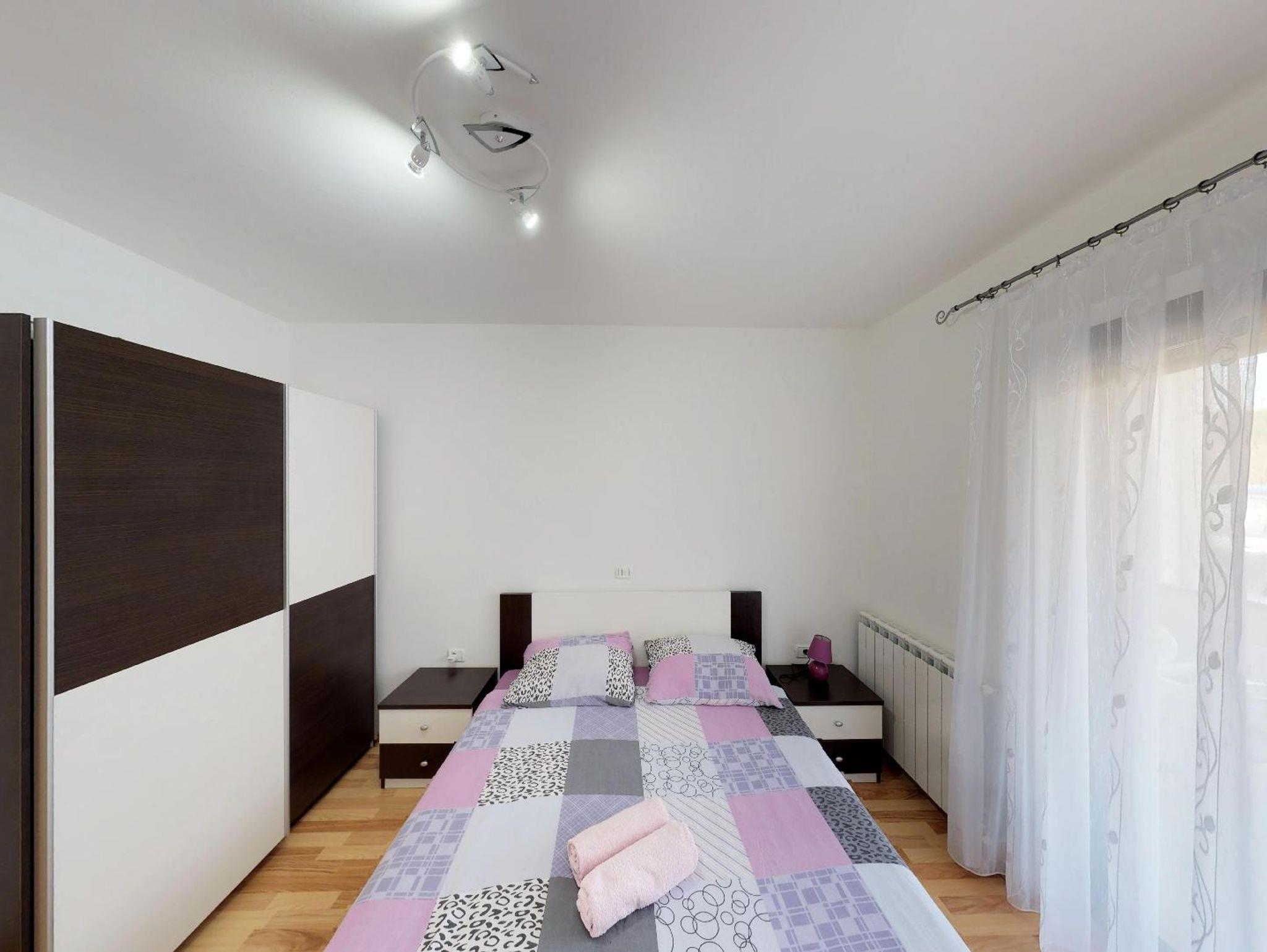 Ferienwohnung bietet Platz für 6 Gäste. Die Betten sind in Schlafzimmern, die es 2 gibt, und in Wohnzimmer, innerhalb einer Gesamtfläche von 59m2, angeordnet. Die Gäste haben eine eigene Terrasse zur Verfügung, auf der sie in warmen Sommernächten genießen können. Es ist erlaubt, Speisen auf dem Gemeinschafts-Grill vorzubereiten. IM PREIS INBEGRIFFEN: Kurtaxe, Endreinigung, Klimatisierung, Zentralheizung, Parkplatz, Internet, Bügeleisen, Föhn. Die Verfügbarkeit zusätzlicher Dienstleistungen in Ihrem reservierten Termin und die Preise derselben (falls nicht aufgeführt) müssen im Voraus überprüft werden. Zusätzliche Dienstleistungen die in der Zahlungsaufforderung nicht aufgeführt sind werden direkt beim Vermieter bezahlt, angenommen der Gast nutzt auch diese.