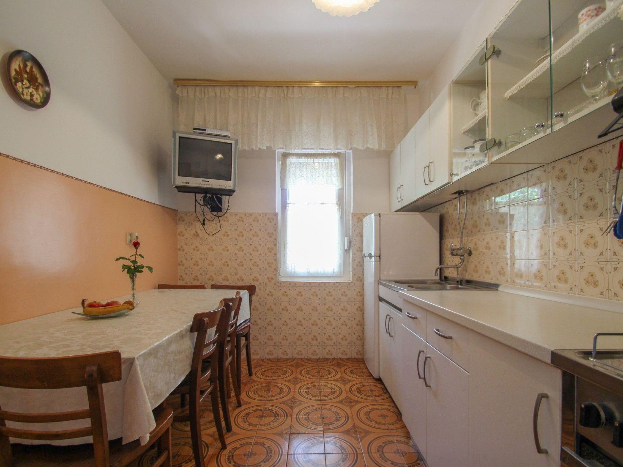 The apartment consists of three bedrooms, a kitchen with a dining room - equipped with basic amenities, a bathroom with a shower and toilet, an additional toilet, and a covered terrace with a table and chairs - ideal for outdoor gatherings.