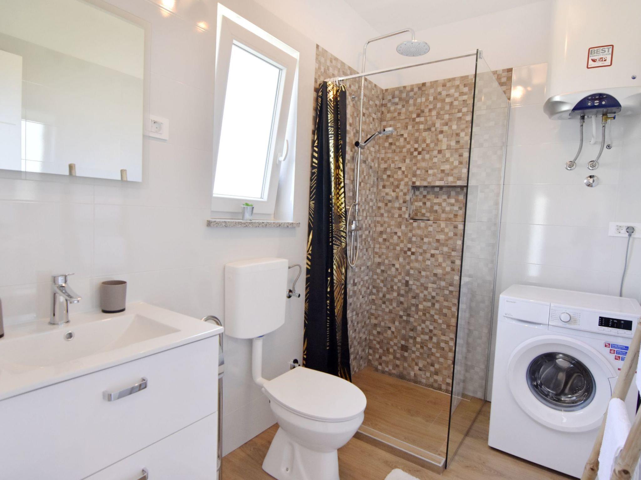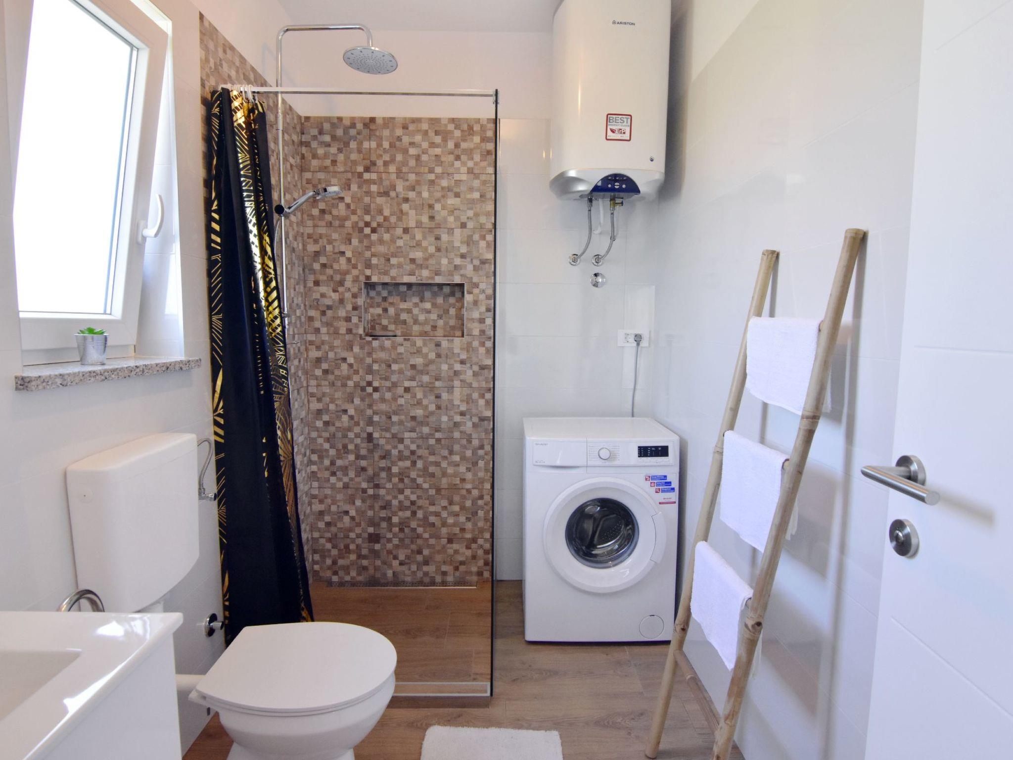 The modern bathroom has a spacious shower, washing machine, hairdryer and everything you need for your personal hygiene. Also enjoy the convenience of an outdoor shower, ideal for cooling off after a sunny day by the pool.