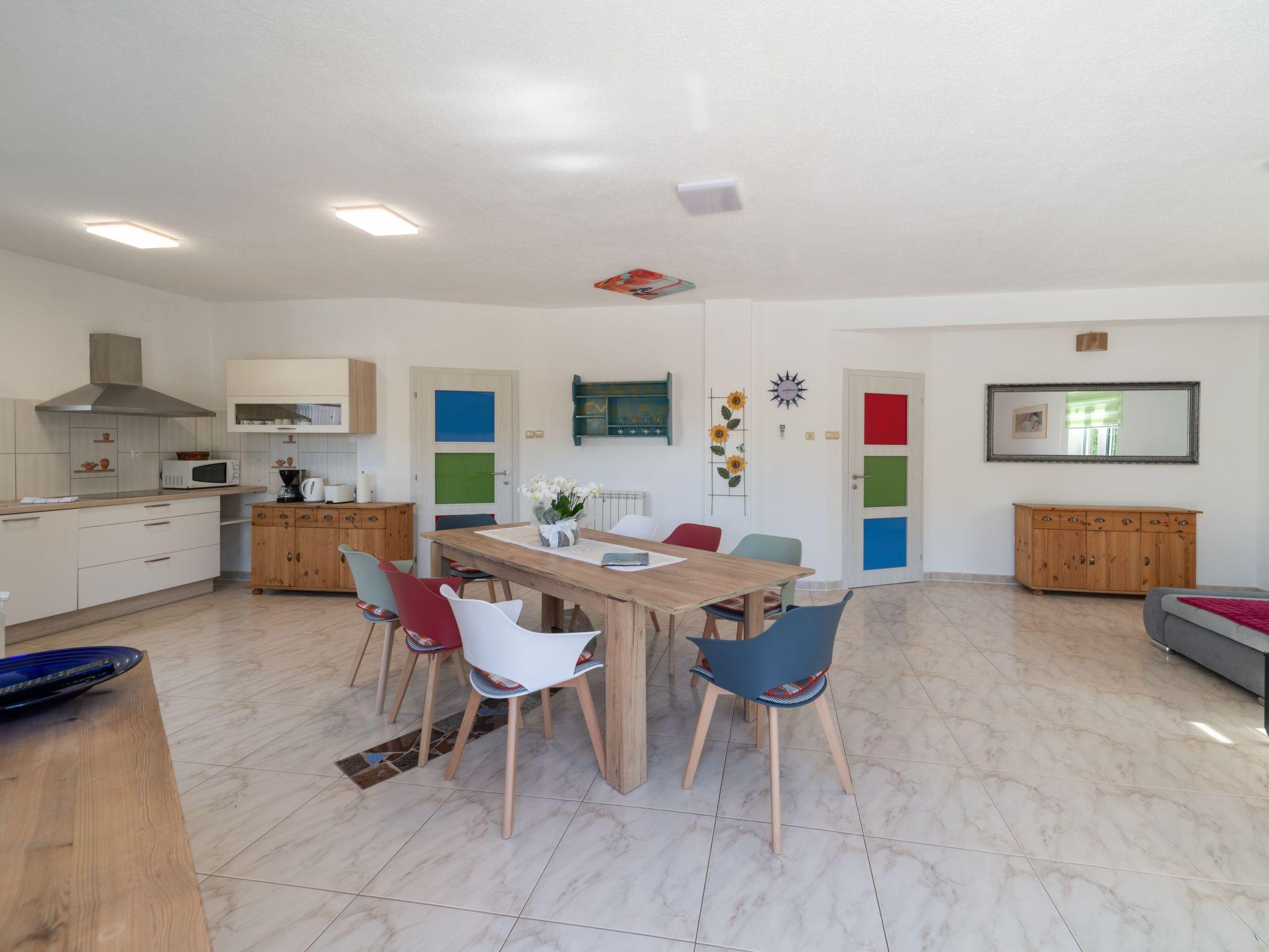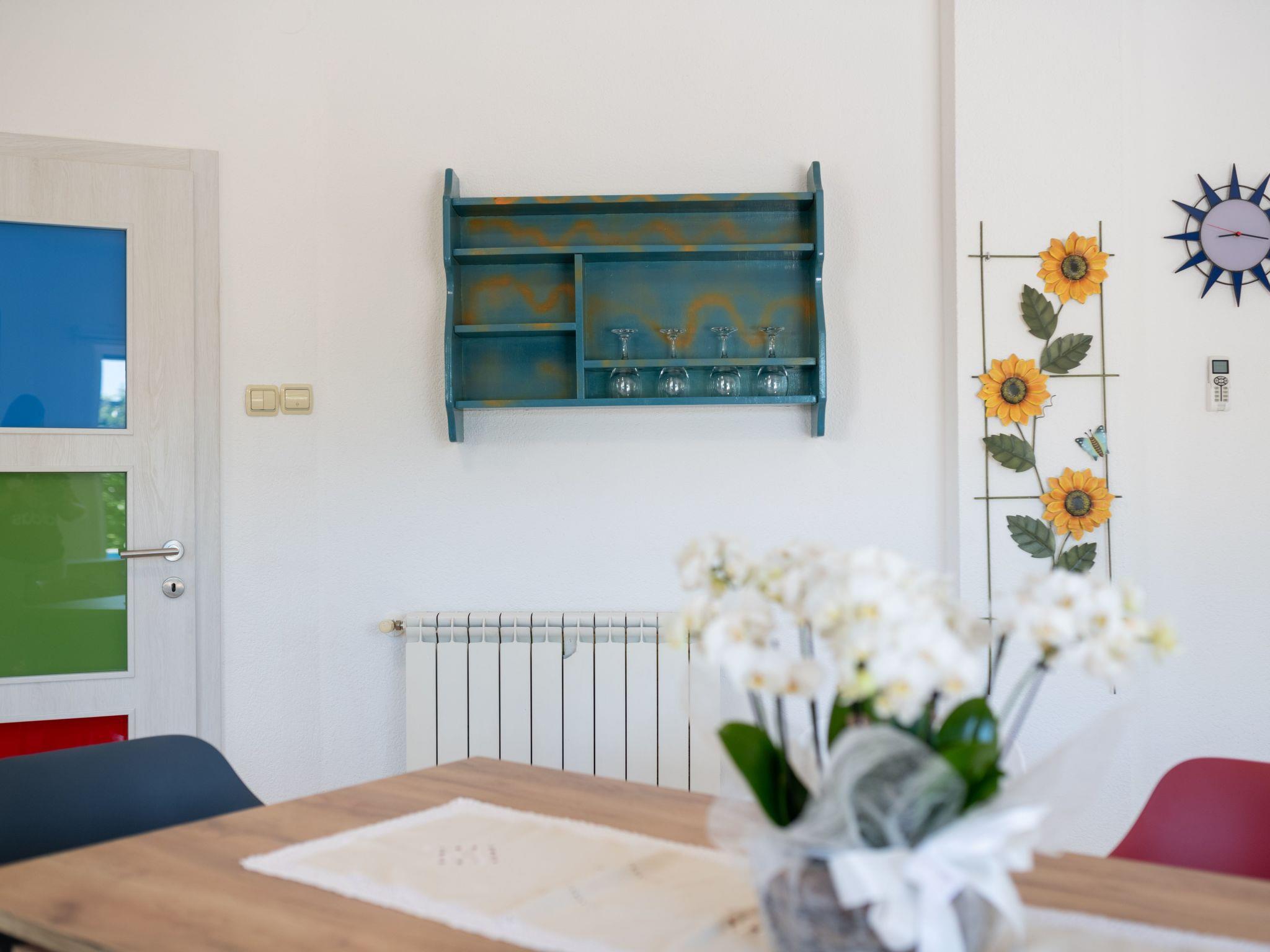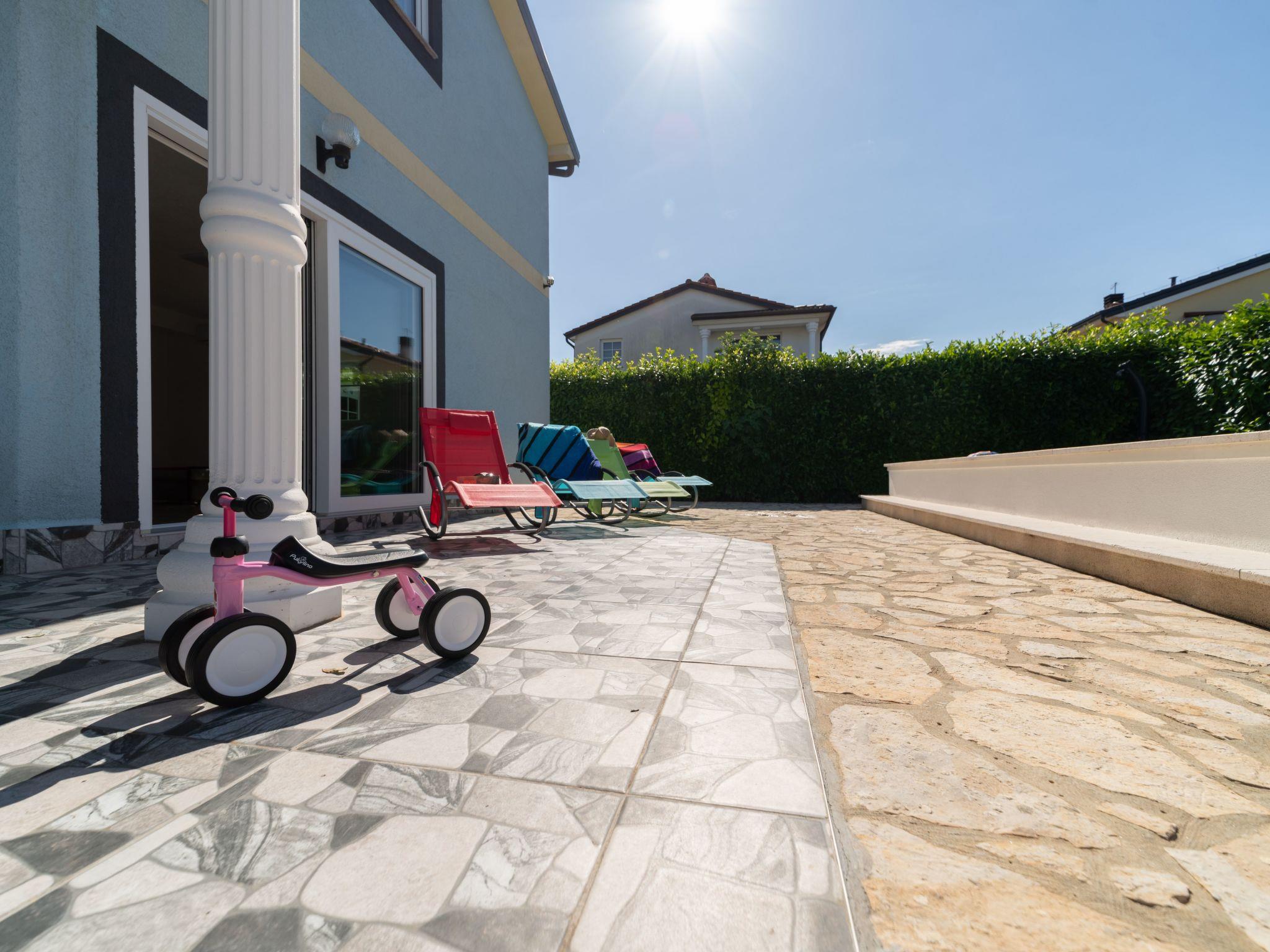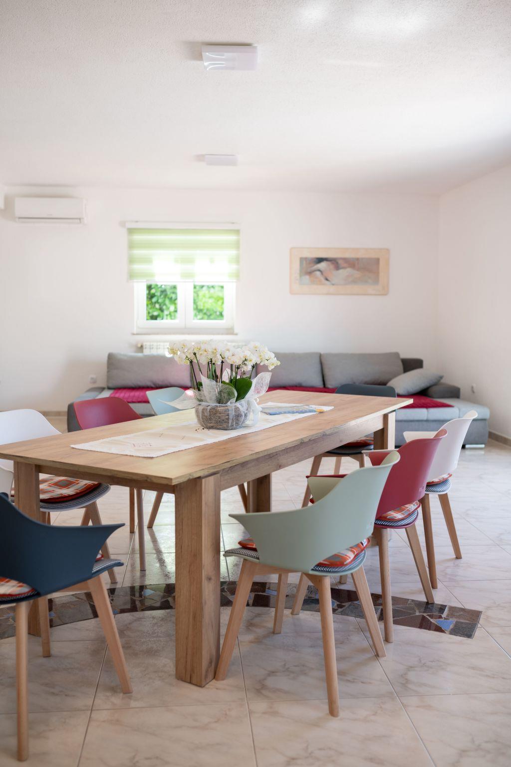 Inside, Villa Tara boasts a spacious interior with air-conditioning available throughout the property for your comfort during those warm Istrian days. The house comes equipped with 4 cozy bedrooms, ensuring a restful night's sleep for all guests. The 2 bathrooms, including a bath tub, cater to your preparation and relaxation needs. For your entertainment and convenience, a flat-screen TV is provided along with a washing machine for sole use. The kitchen is fully equipped, featuring a dishwasher, coffee machine, and an electric kettle, making meal preparation a breeze.