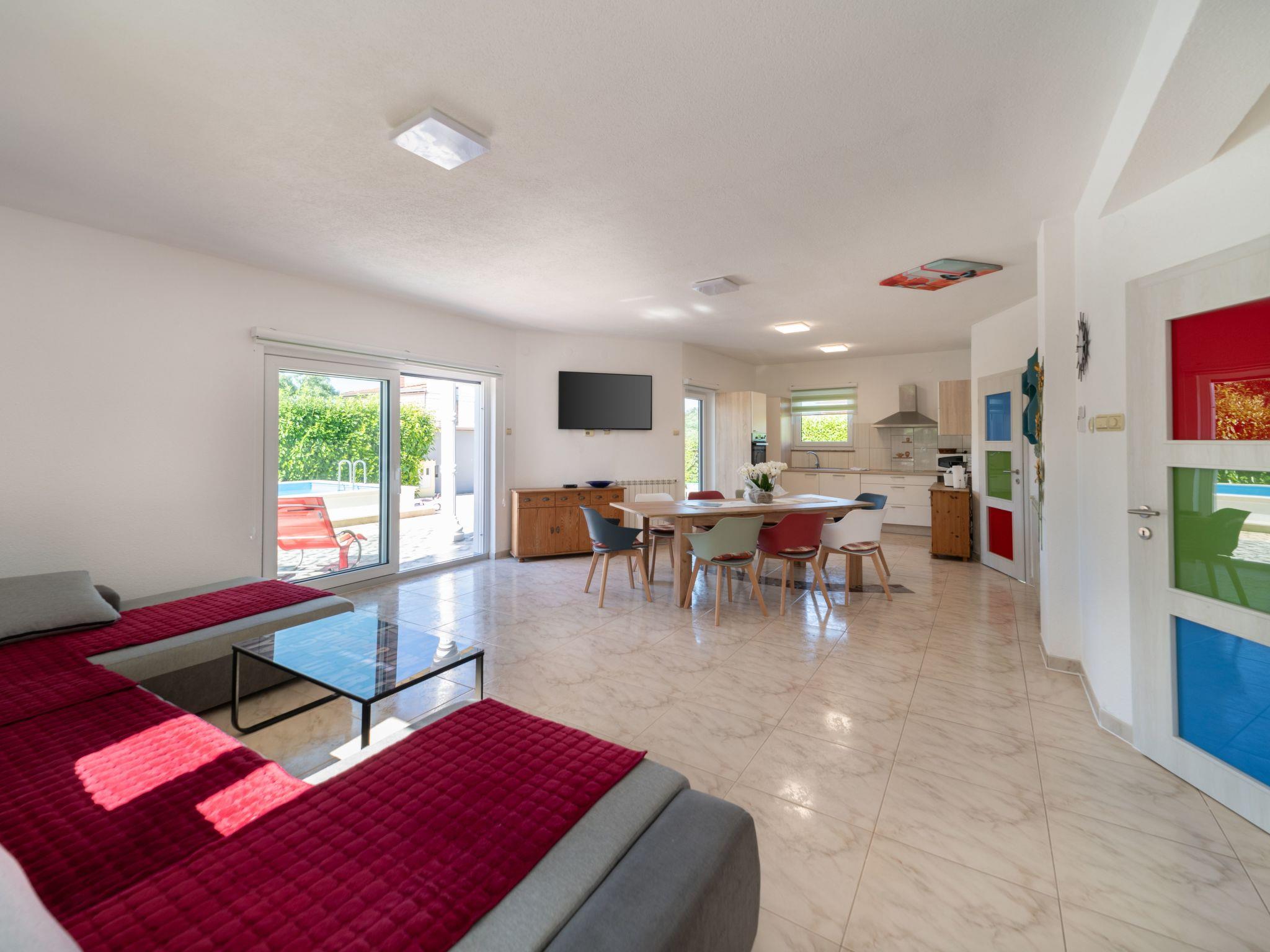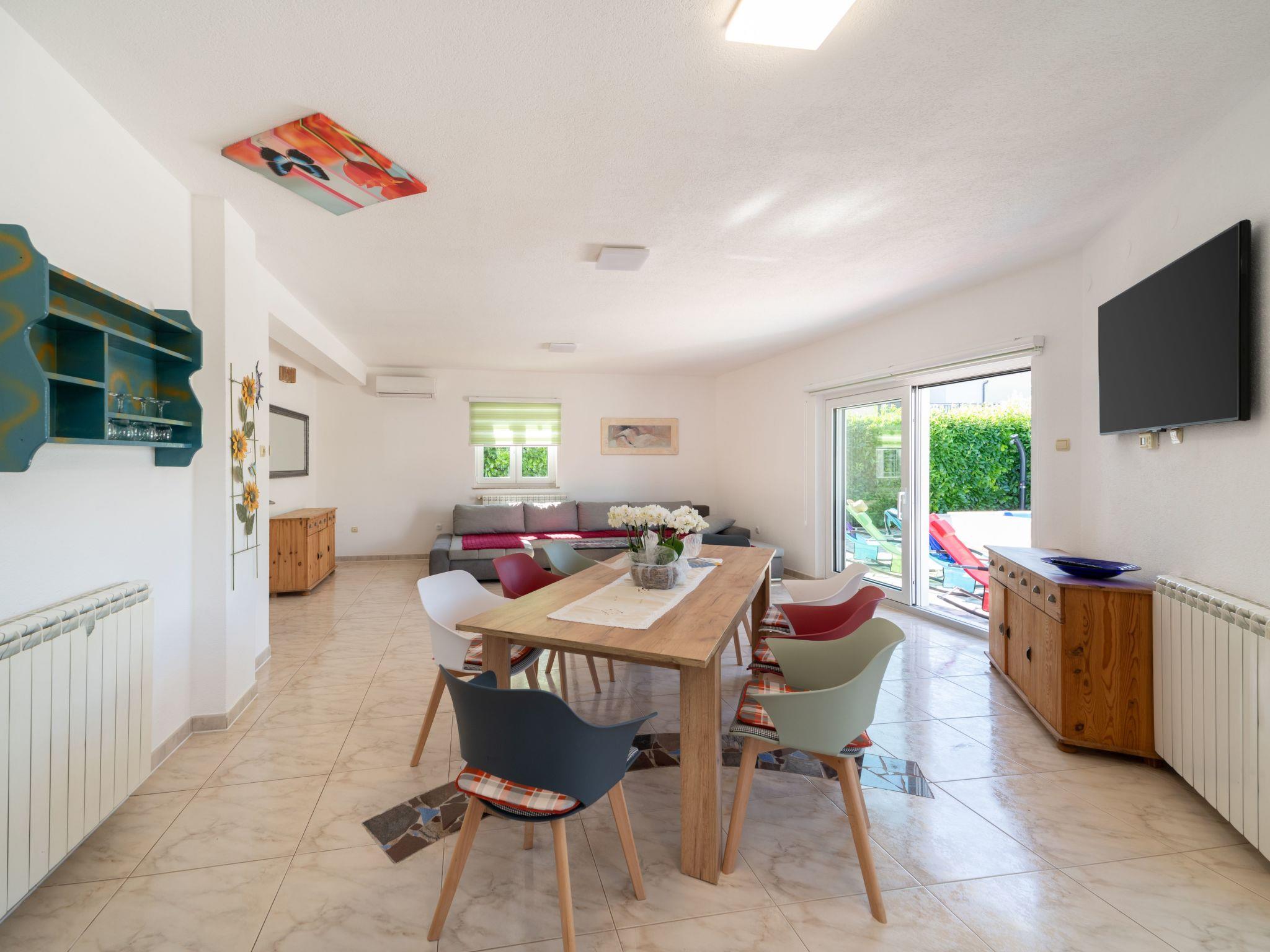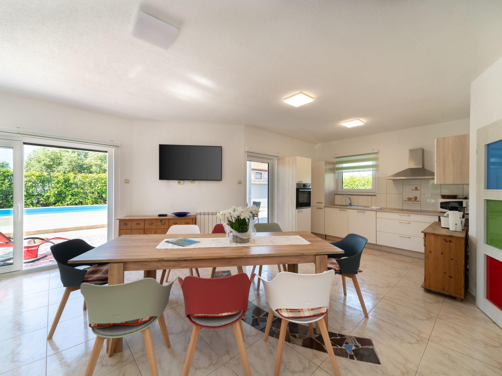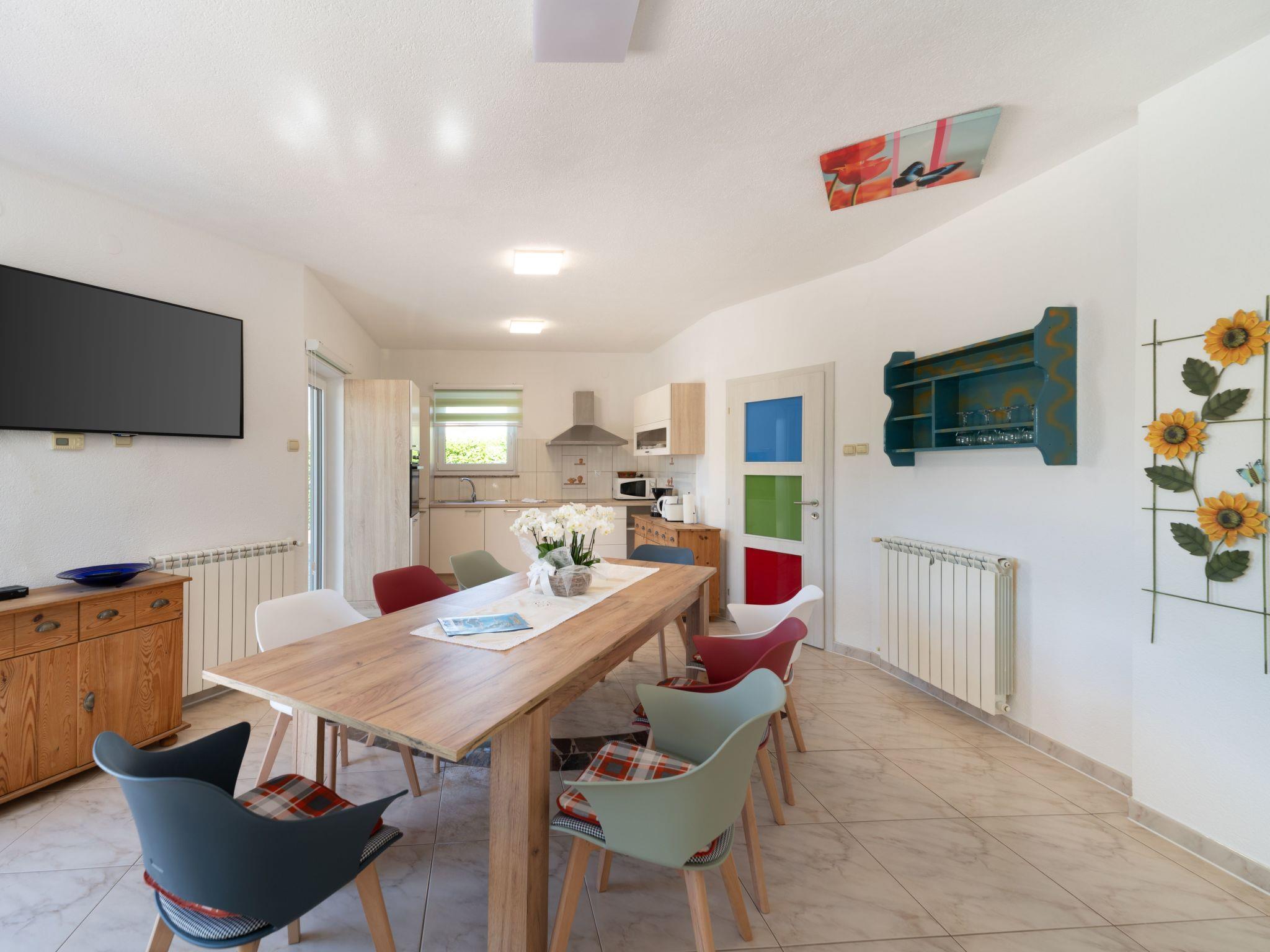 Inside, Villa Tara boasts a spacious interior with air-conditioning available throughout the property for your comfort during those warm Istrian days. The house comes equipped with 4 cozy bedrooms, ensuring a restful night's sleep for all guests. The 2 bathrooms, including a bath tub, cater to your preparation and relaxation needs. For your entertainment and convenience, a flat-screen TV is provided along with a washing machine for sole use. The kitchen is fully equipped, featuring a dishwasher, coffee machine, and an electric kettle, making meal preparation a breeze.