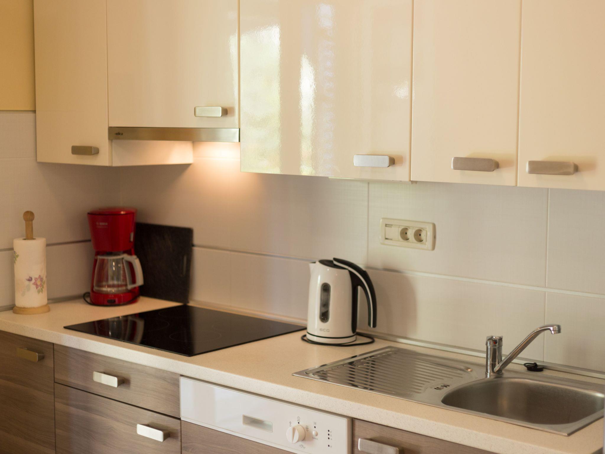 The apartment is modern and fully furnished. The holiday apartment is light. It is on the ground floor behind the house and receives ample daylight. It has a bedroom with a double bed and there is a sofa bed in the living room for children or teenagers. There is also a kitchen in a living room with satellite TV and free wireless Internet access. The bathroom has a shower and toilet. There is also an outdoor shower. A hairdryer and an iron are also available.