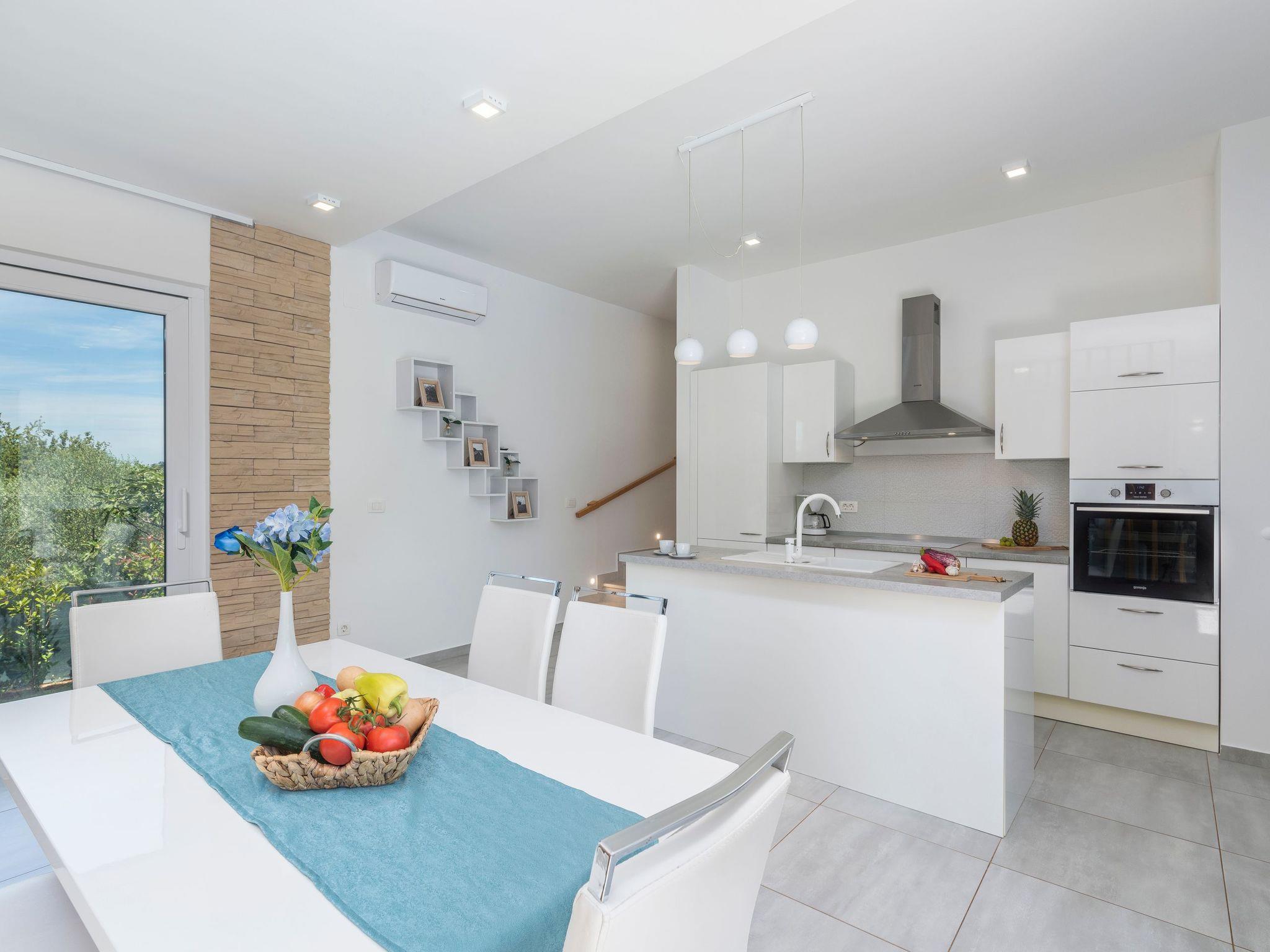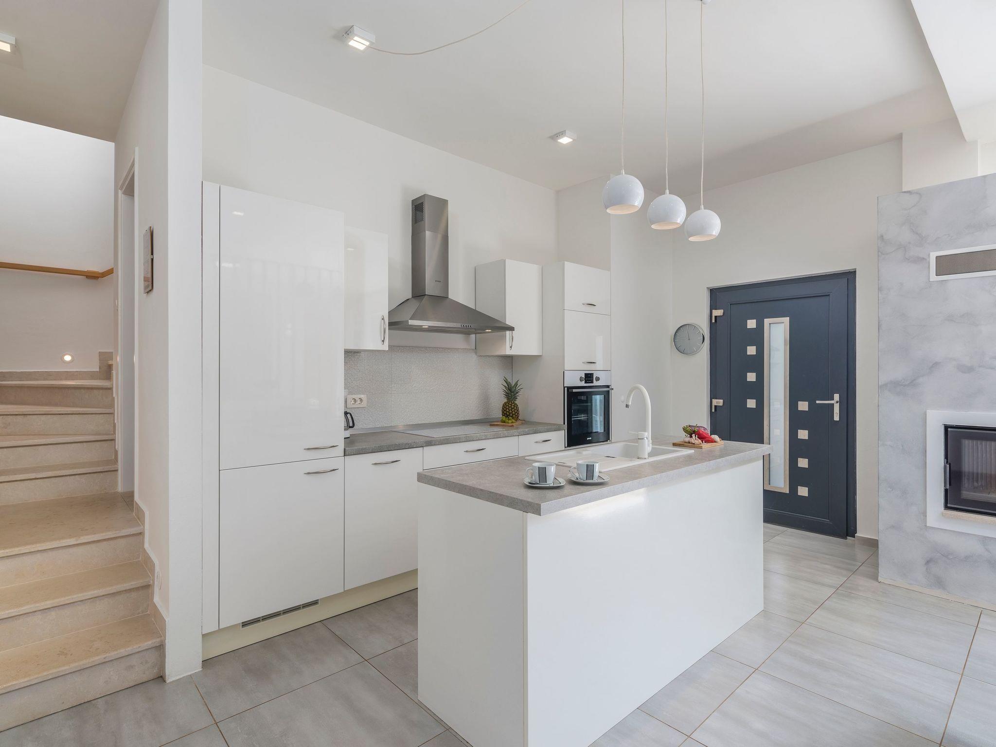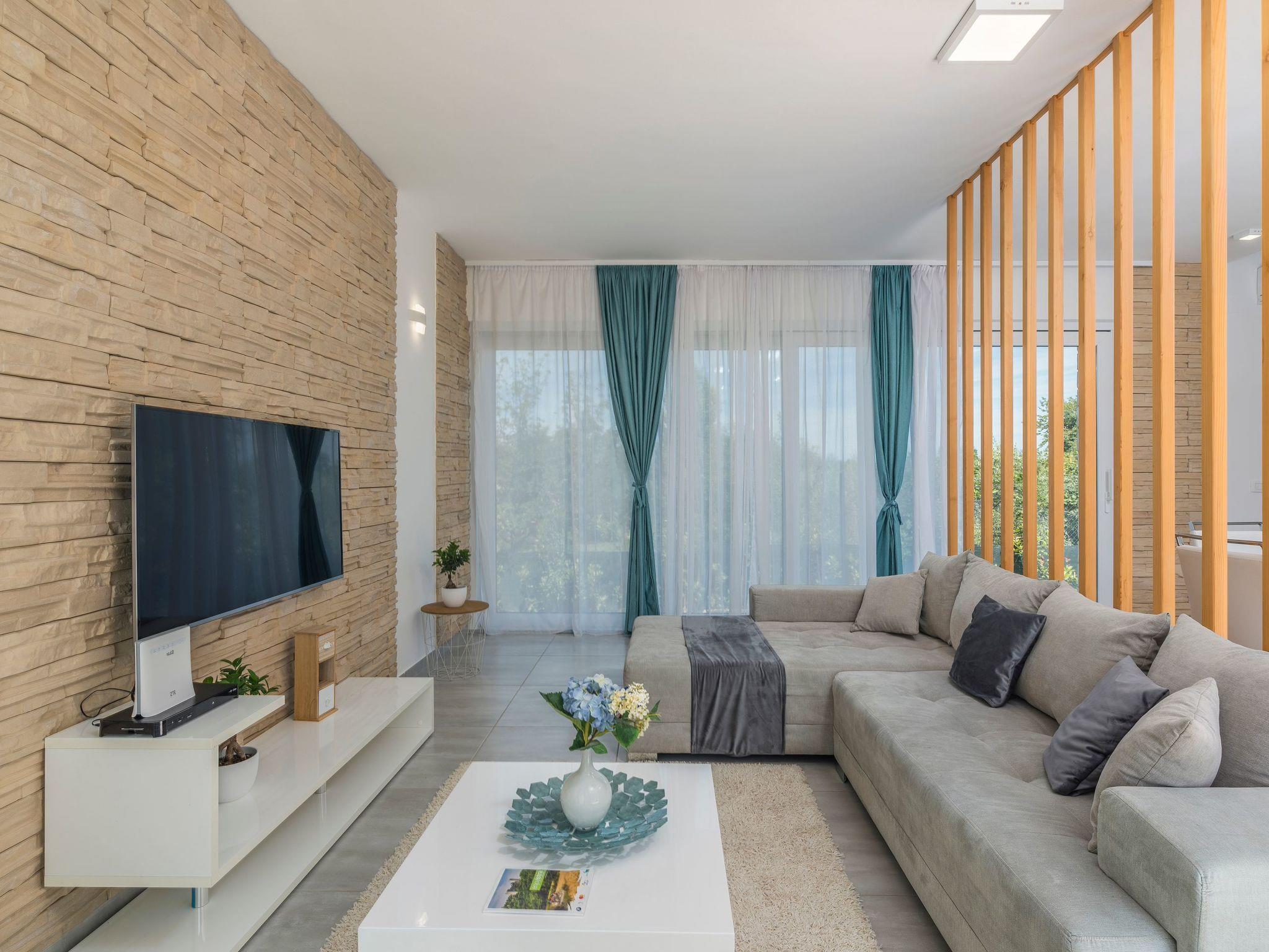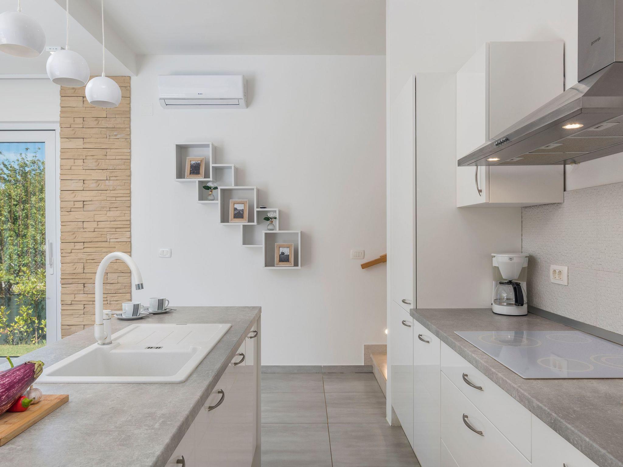 Staying in a modern luxury resort in the midst of a beautiful and peaceful Istrian landscape near the sea, dominated by vineyards and olive groves, is the guarantee of a holiday worth investing in. The villa itself imposes a modern appearance inside and out, and from every detail the enviable dose of luxury exudes. The combination of traditional and modern materials (stone, wood and glass) makes for the necessary warm and intimate atmosphere, and details such as the fireplace and summer kitchen with pool only add to the impression. The villa has a large, bright living room thanks to its large windows, two bedrooms, each with a television, and three bathrooms. All the rooms have air conditioning and underfloor heating that will ensure a pleasant stay whatever the weather, and it should be noted that there is a WI-FI signal and video surveillance in the property for added security.